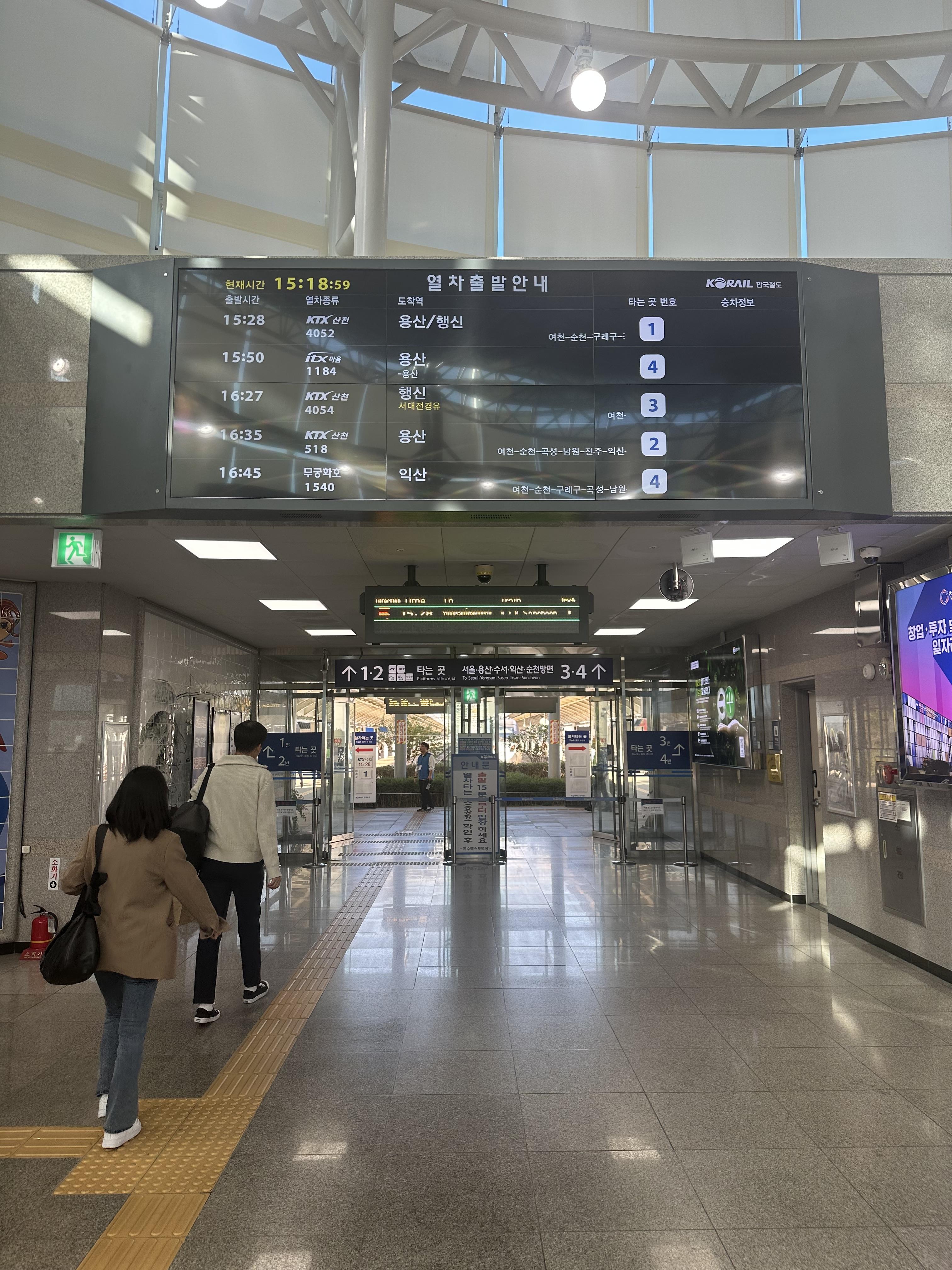 예약을 미리 했으면 아마 ITX 마음 열차로 여수까지 갈텐데, 여행을 늦게 해서 한번에 가지 못했습니다. 그래서 익산까지 ITX 마음열차를 타고, 익산 이후로는 기존 무궁화호로 환승해서 갔습니다.