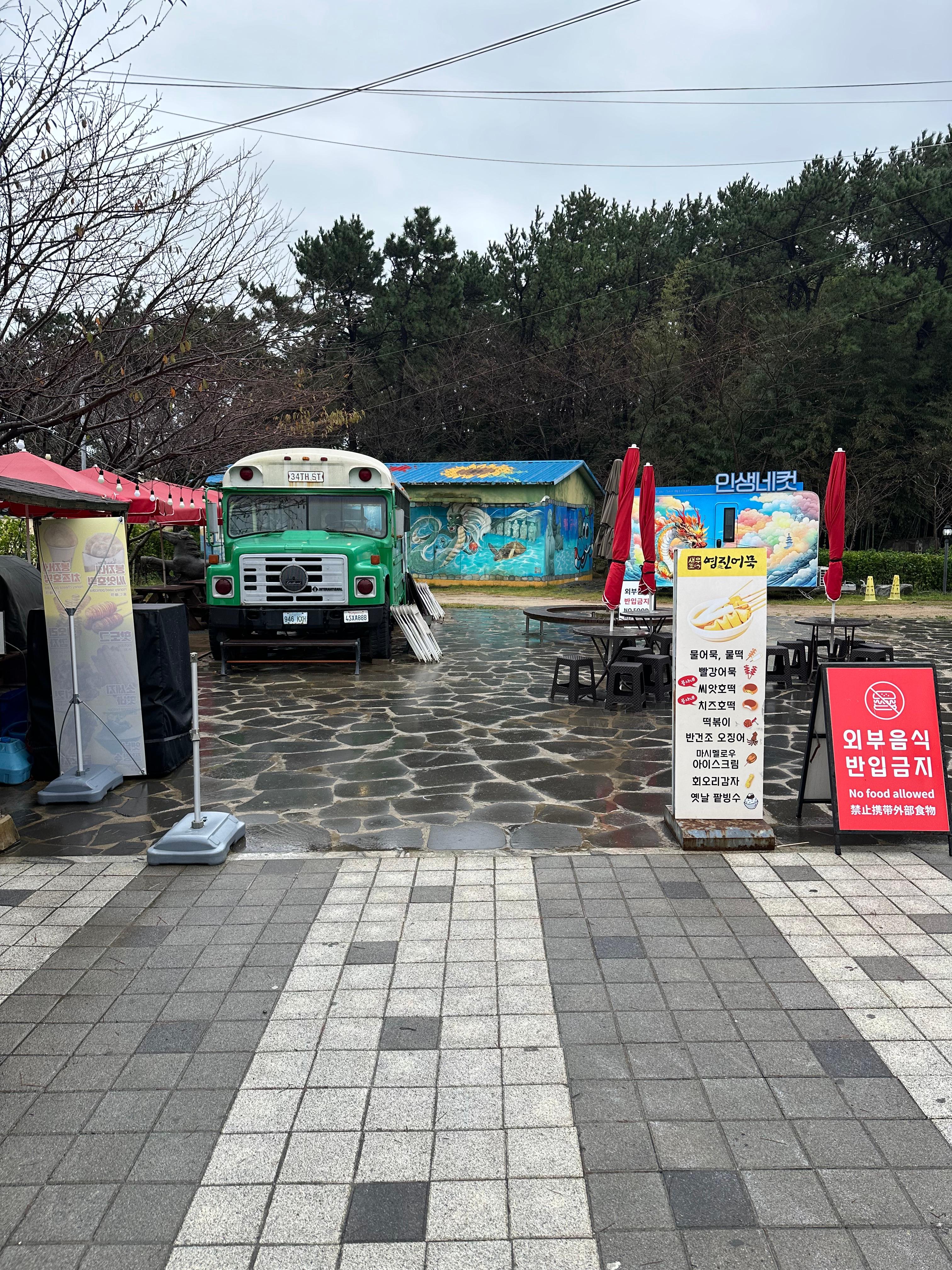 봉자호떡을 구매해서 가게와 좀 더 떨어진곳에서 호떡을 먹다보니 가게 옆으로 인생네컷과 우리나라 버스는 아니지만 미국 스쿨버스처럼 생긴 녹색의 이국적인 버스가 보였습니다. 어렸을 때 더심즈라는 게임을 했었는데요. 더심즈는 국내 게임은 아니고 외국게임이라 저렇게 생긴 버스를 볼 수 있었습니다. 스쿨버스는 보통 노란색인데 연두색인 것을 보면 스쿨버스는 아닌것 같습니다. 그렇게 잠시 해동용궁사를 열심히 보고 맛있는 호떡을 먹고 저는 또 발걸음을 옮겼습니다.