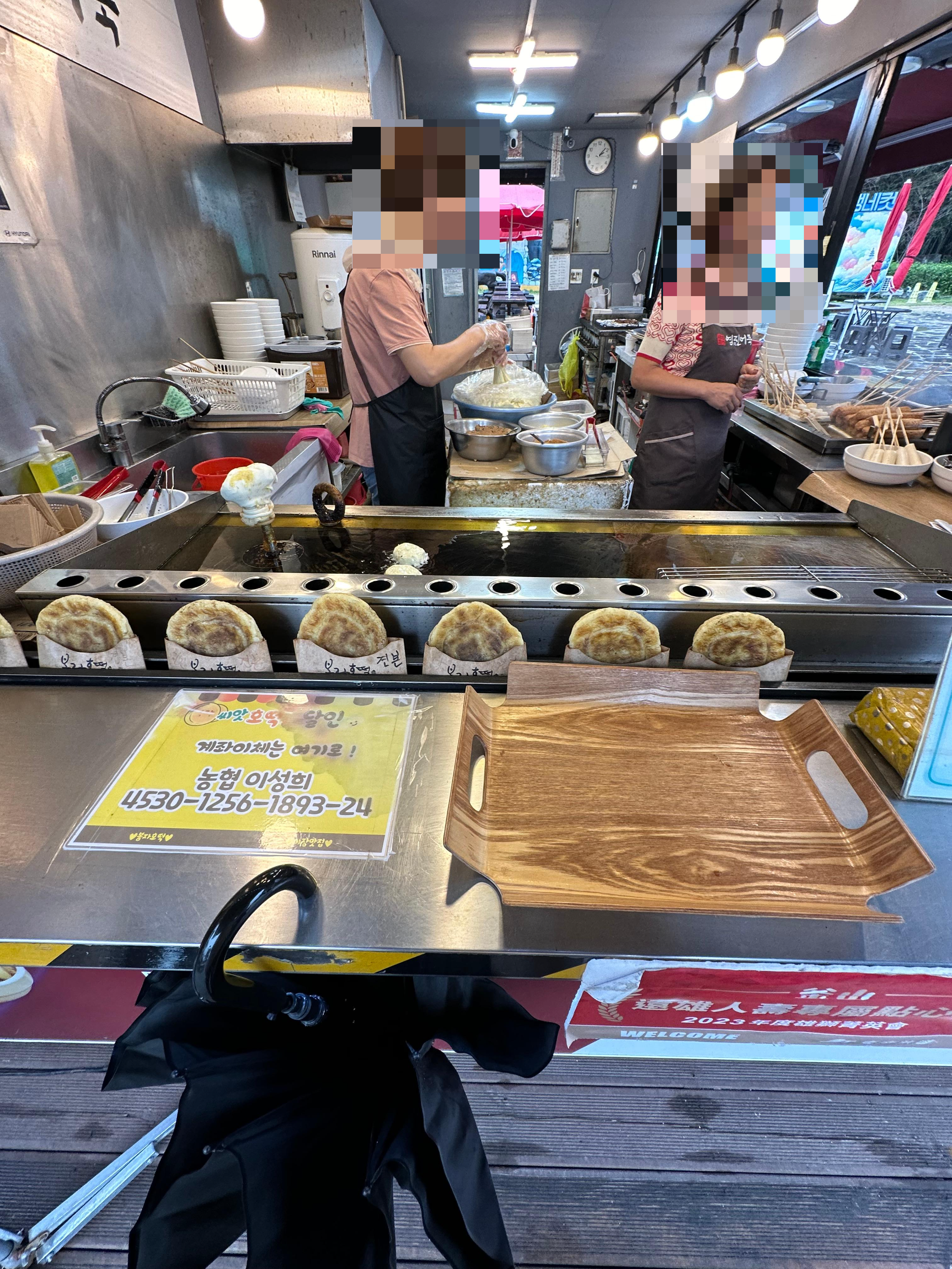 봉자호떡 앞에는 씨앗호떡과 꿀치즈 호떡이 어떻게 생겼는지 견본 모양이 앞에 있었습니다. 사실 씨앗호떡과 꿀치즈 호떡의 외형은 똑같이 생겼는데요. 호떡 안에 씨앗이 들어가냐 꿀치즈가 들어가냐 차이였습니다. 해동용궁사 올라오면서 꿀치즈 호떡이라는 이름이 봉자호떡에 오게 되었습니다. 호떡인데 꿀치즈라니 어떤맛일가 생각했습니다. 치즈만 들어갔다면 느끼해서 안먹었을텐데요. 꿀이라니 뭔가 색다른 맛이 기대되었습니다.