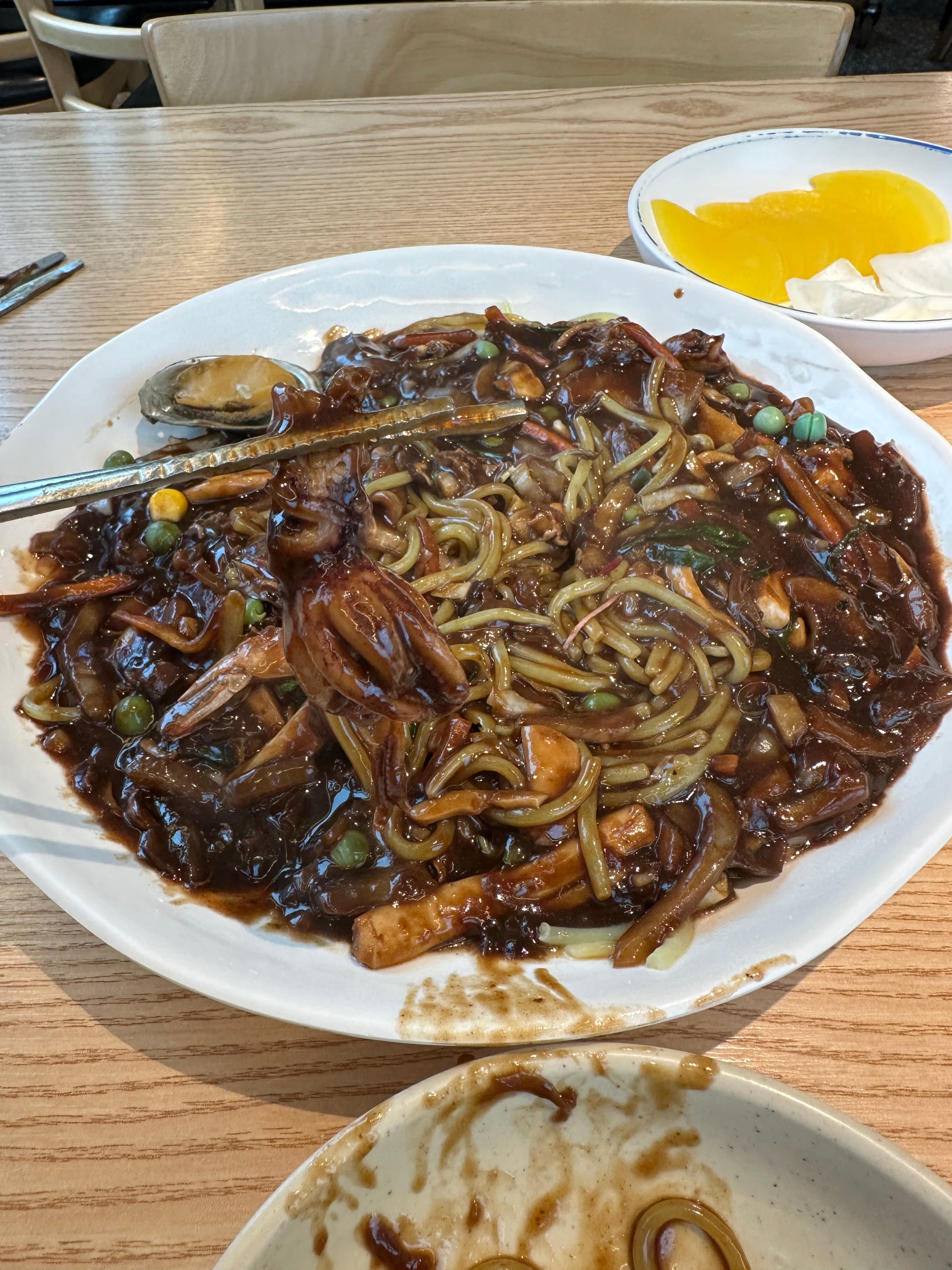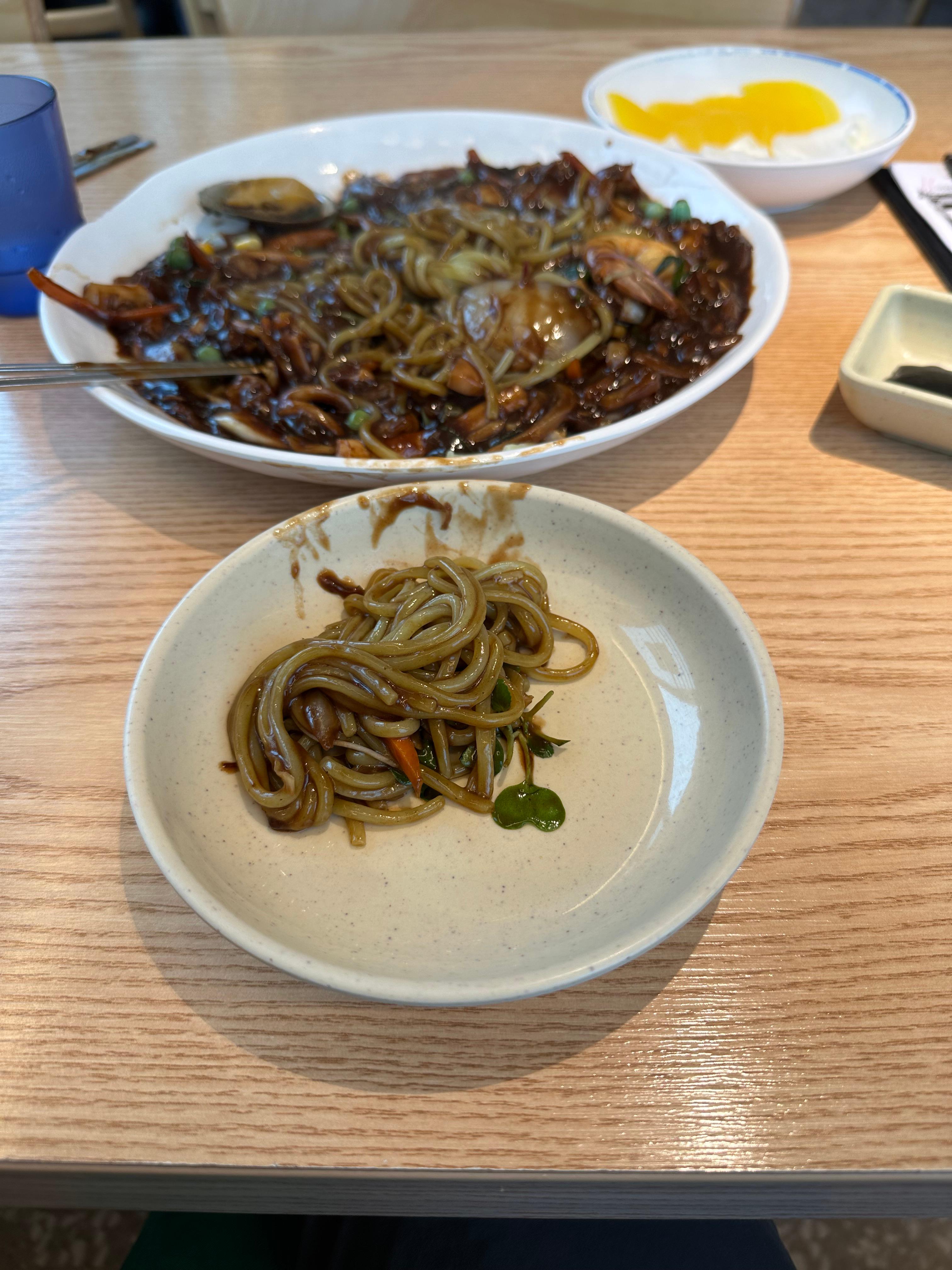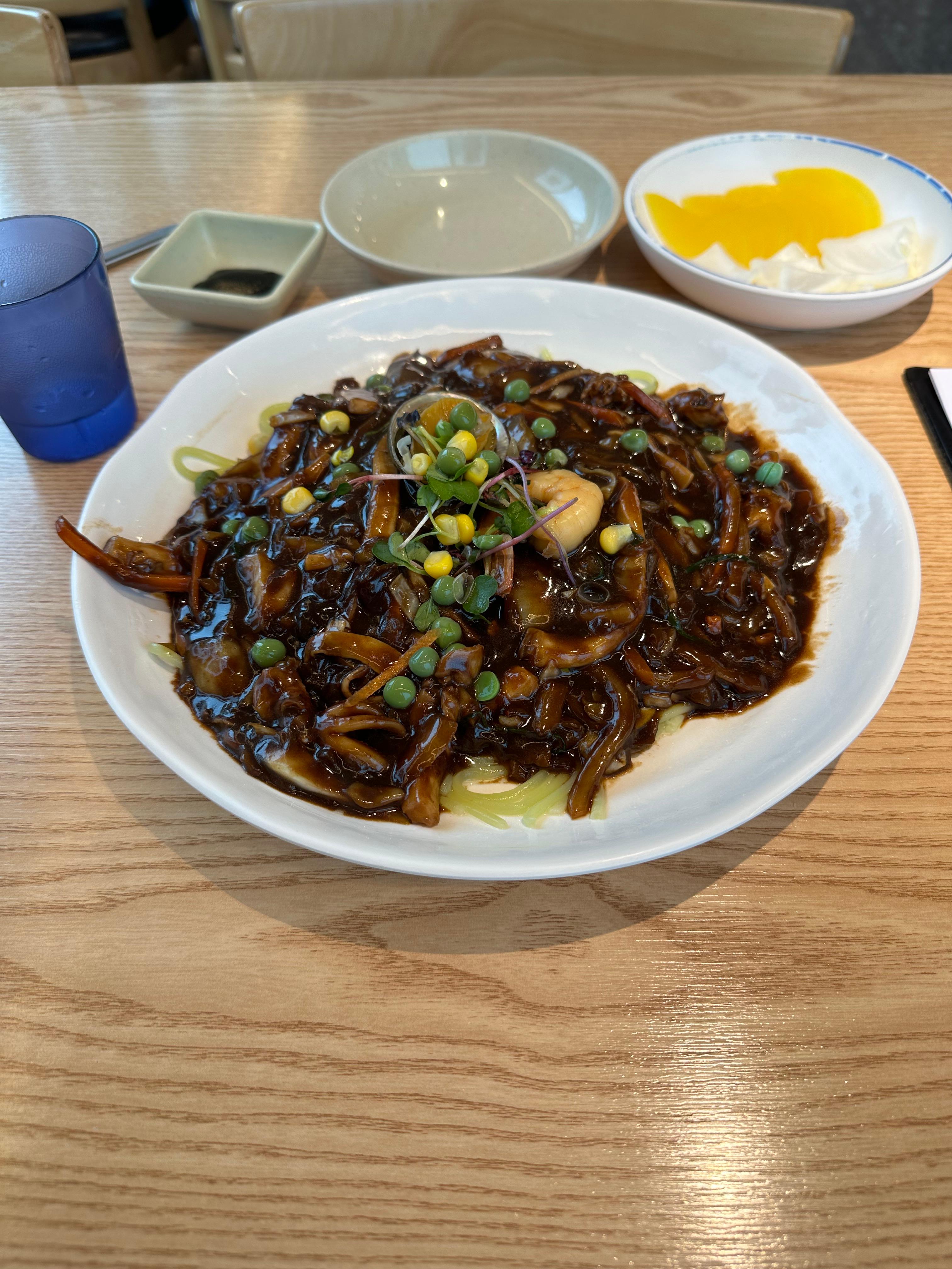 - 어린이를 위한 추천메뉴로 맵지않은 일반짜장도 있습니다. 해물쟁반짜장은 약간 매워요.