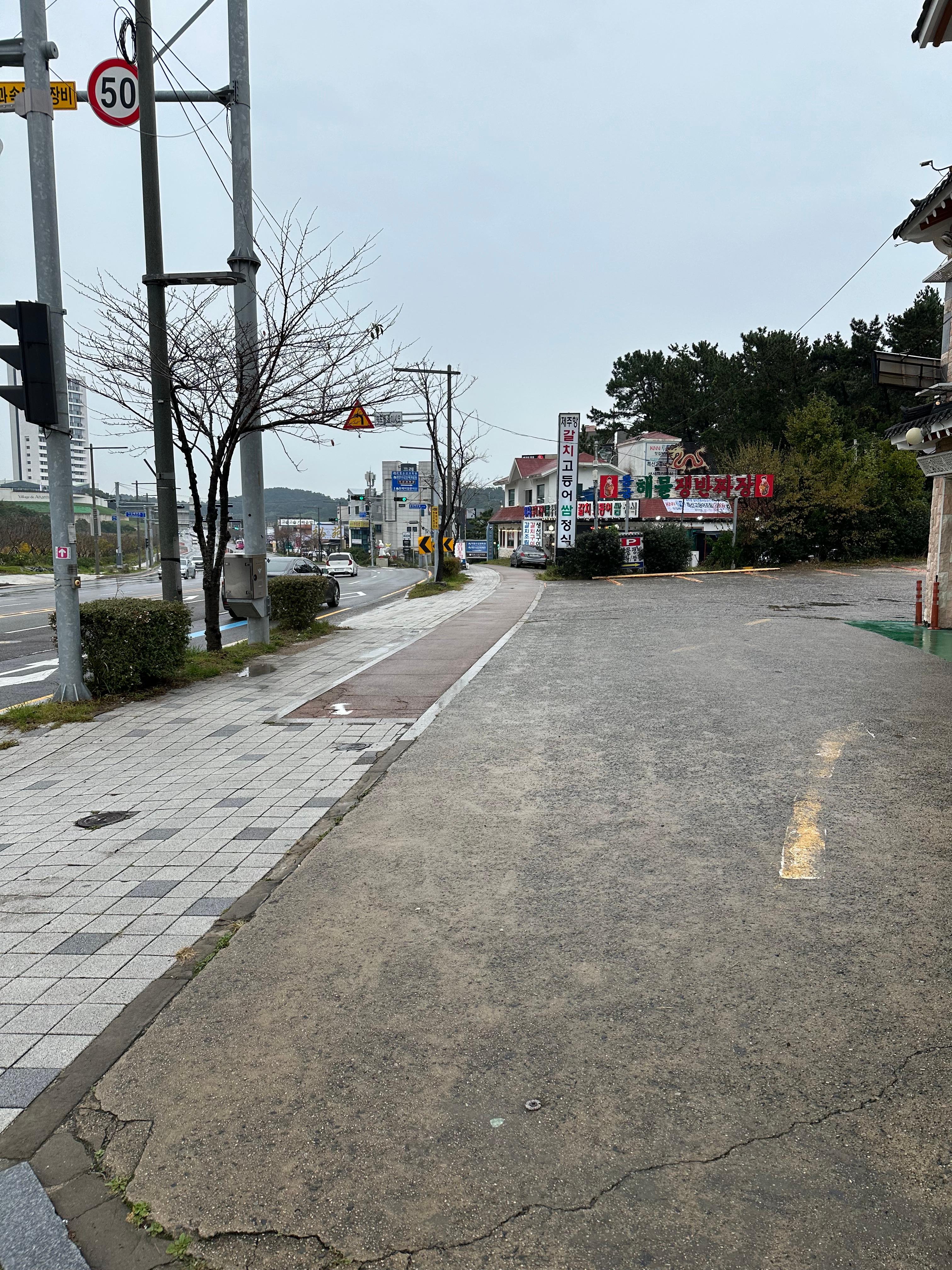 해동용궁사에서 멋진 바다절과 남해안 바다의 풍경을 보고나니까 배가 고파졌습니다. 왔던길을 다시 걸어서 해동용궁사의 아쉬움을 달래며 저는 돌아가고 있었습니다. 해동용궁사 입구에서 보았던 봉자호떡 꿀치즈 호떡이 돌아가는데 계속 생각나더라구요. 점심시간이 한참 지난 2시가 넘어서인지 배가 고팠는데요. 해동용궁사 주차장입구 국립수산과학원에서 용궁쟁반짜장까지는 10분은 걸어야 해서 봉자호떡 꿀치즈 호떡 하나로 허기를 채우고 용궁쟁반짜장으로 걸음을 옮겼습니다.