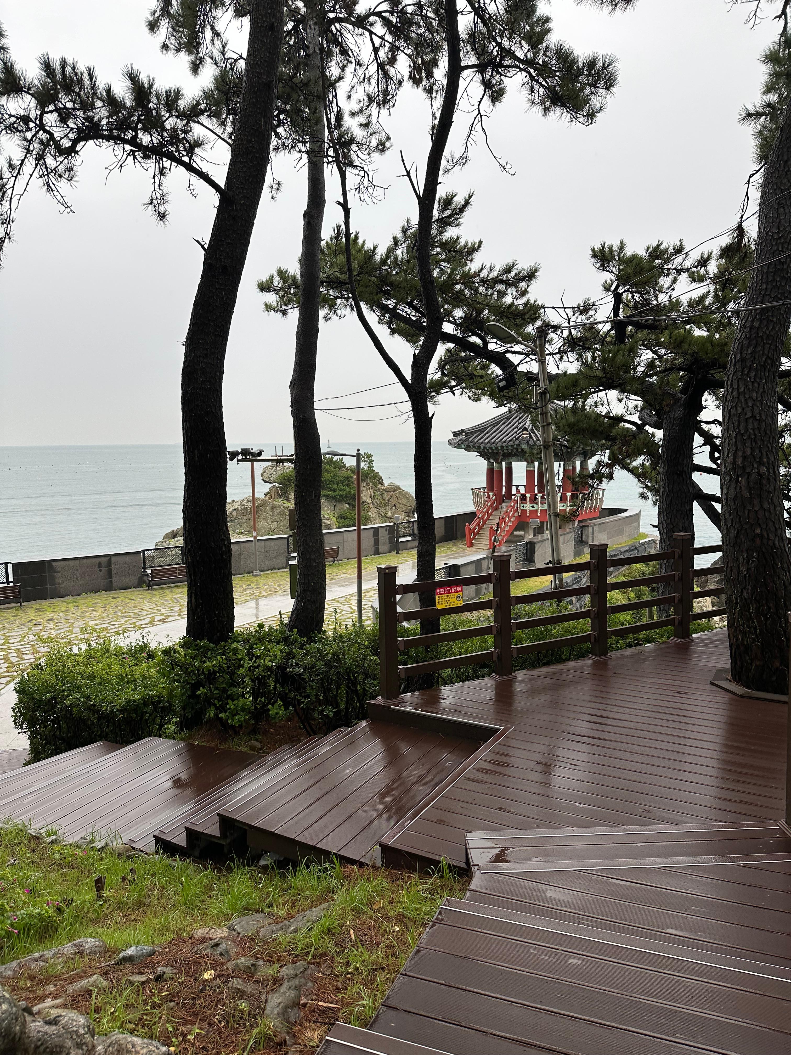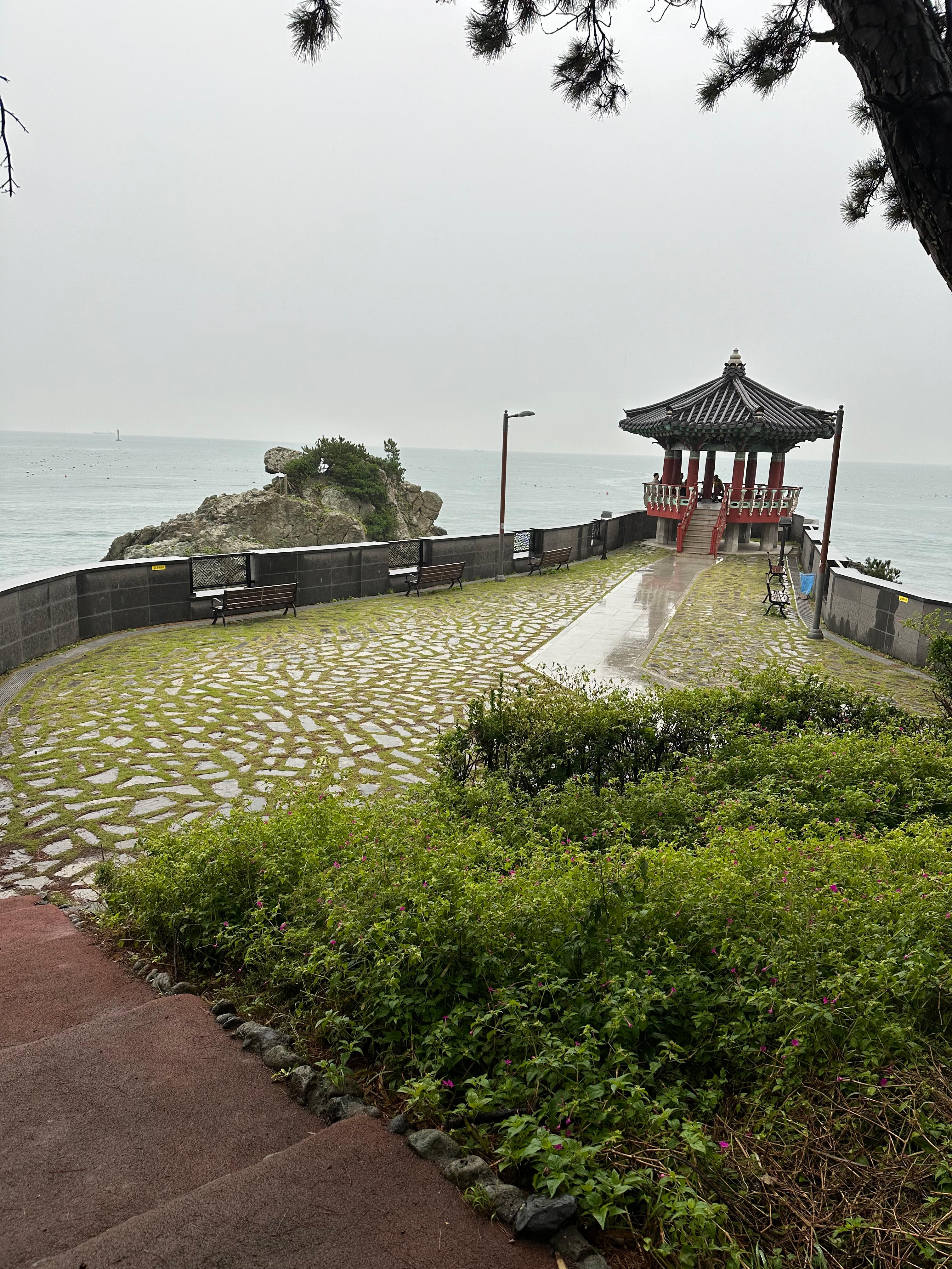 아름다운 해동용궁사 바다 사찰 절에서 송정해수욕장 죽도공원 바다 위에 정자 송일정까지 비오는날 뚜벅이 낭만 걷기 여행 후기 정리해드려요.