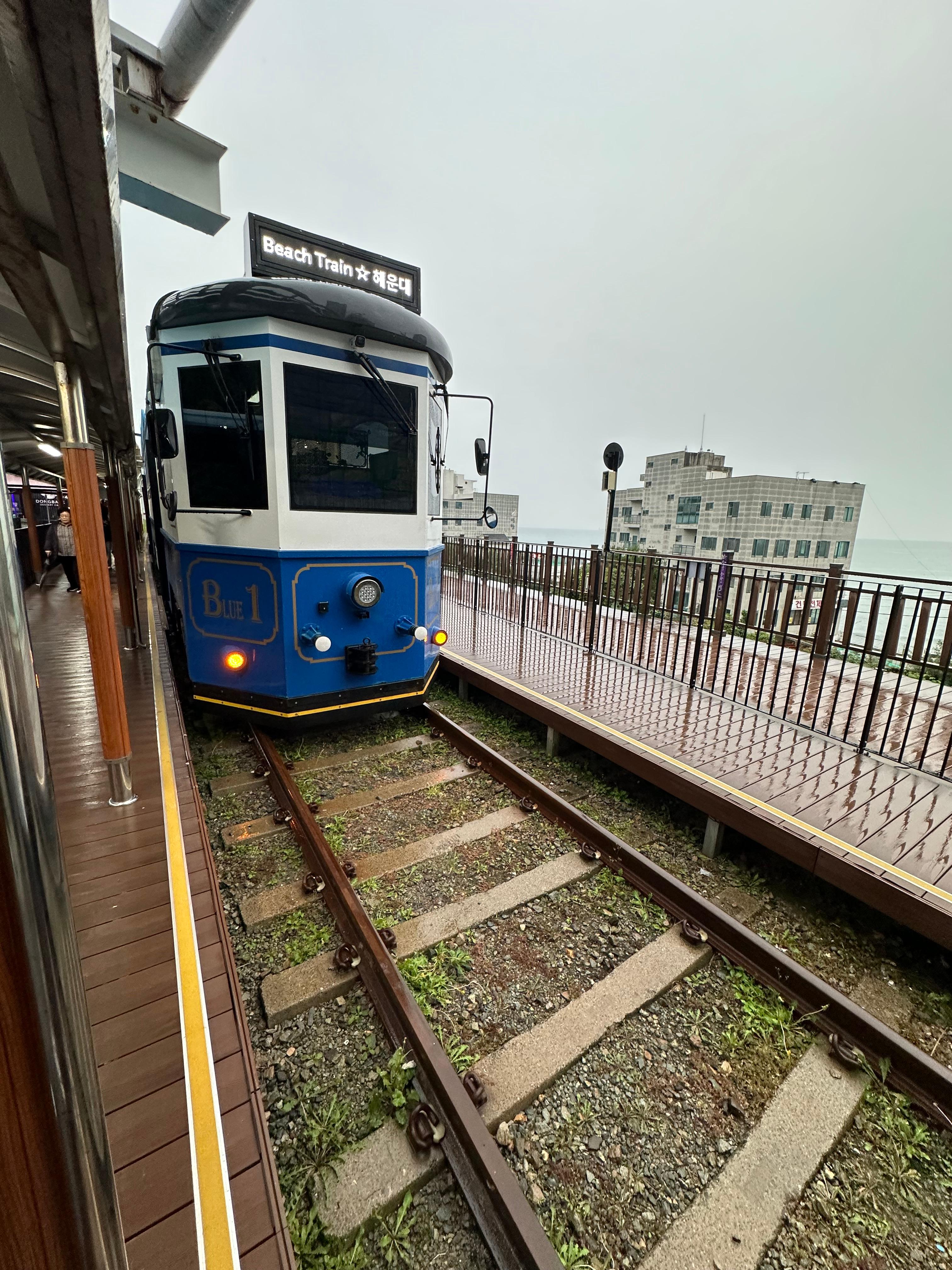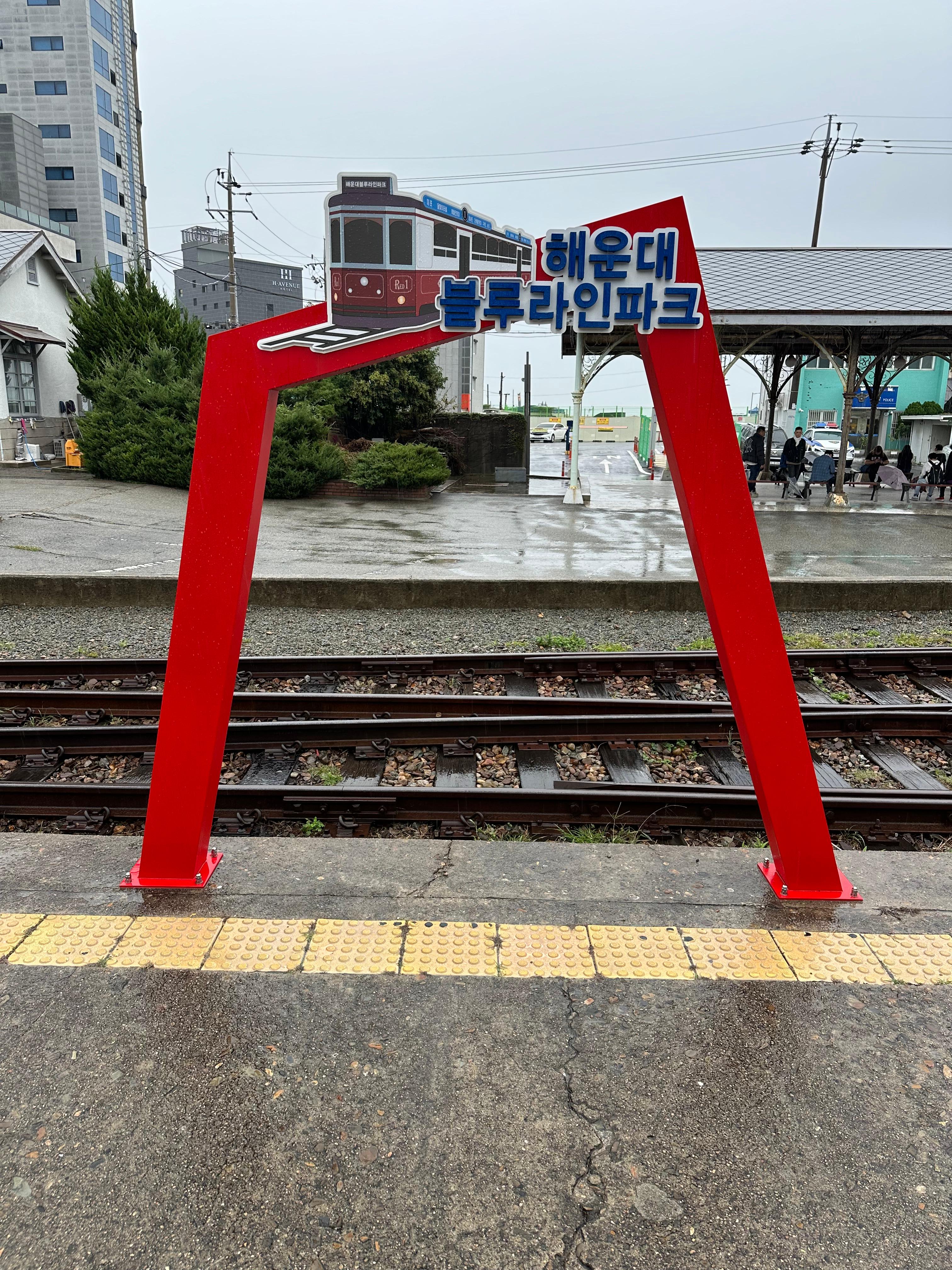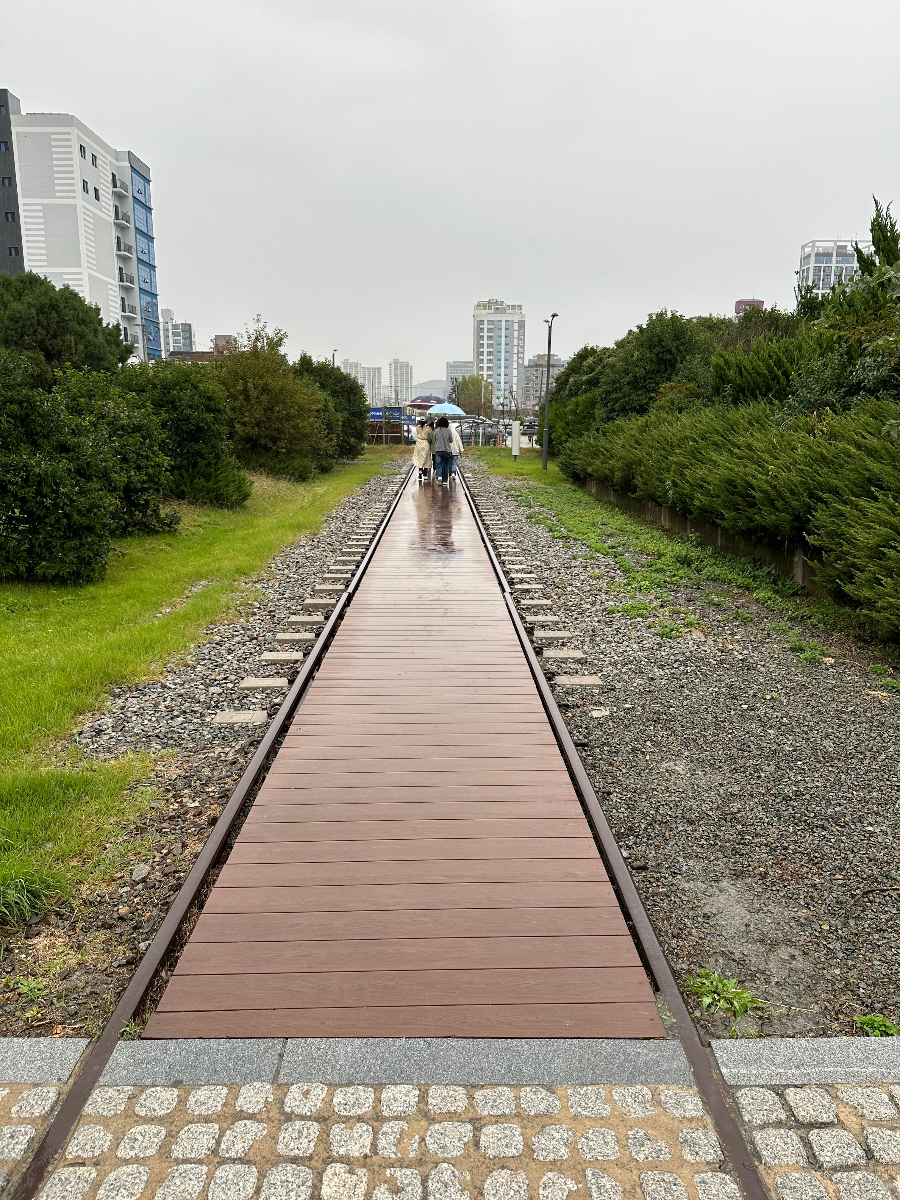미포정거장에 도착해서는 우산을 쓰고 해운대 해수욕장을 지나 집으로 돌아가기 위해 한걸음 한걸음 이동했습니다. 과거에는 이곳으로 디젤기관차 무궁화호가 다녔었는데요. 이제는 추억속으로 사라진 동해남부선을 기억할 수 있는 유일한 관광상품으로 변했습니다.