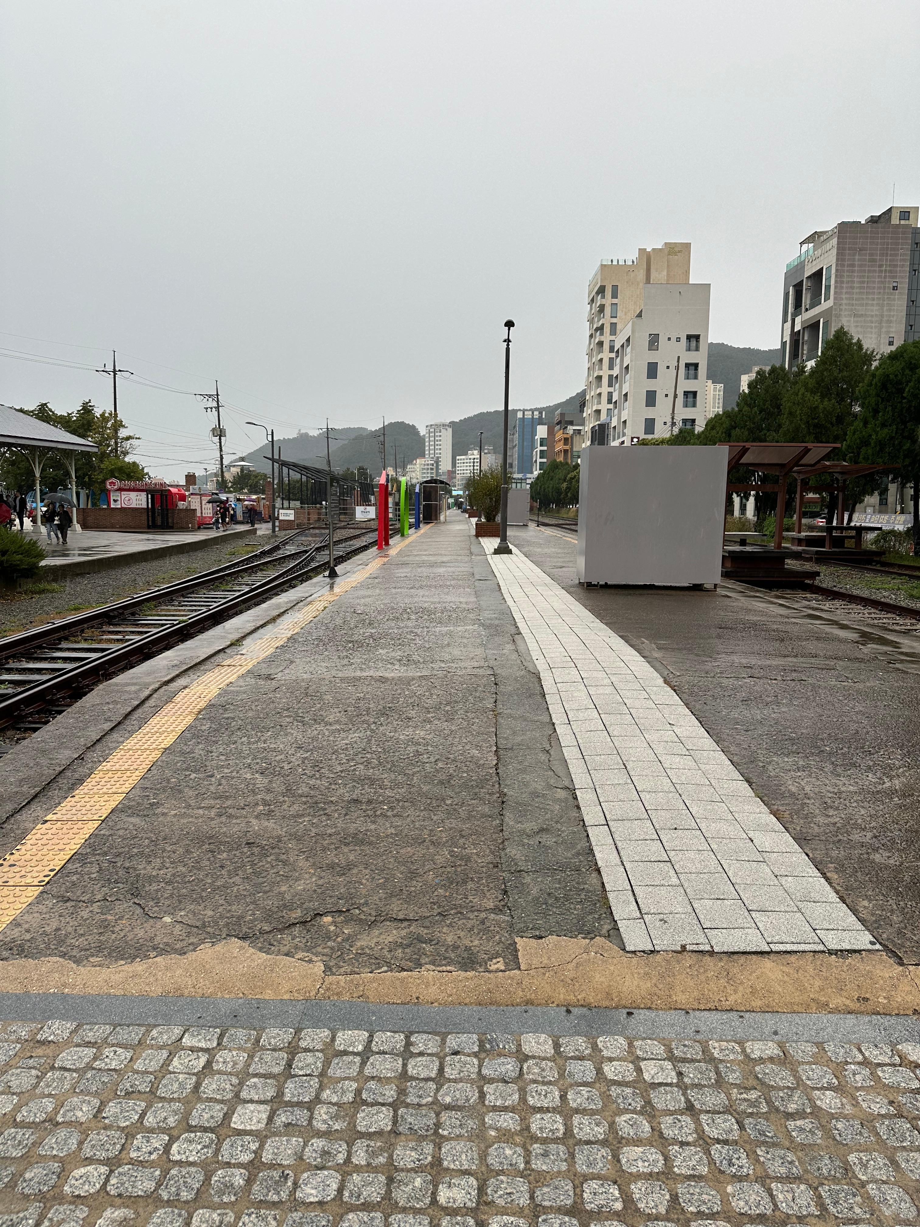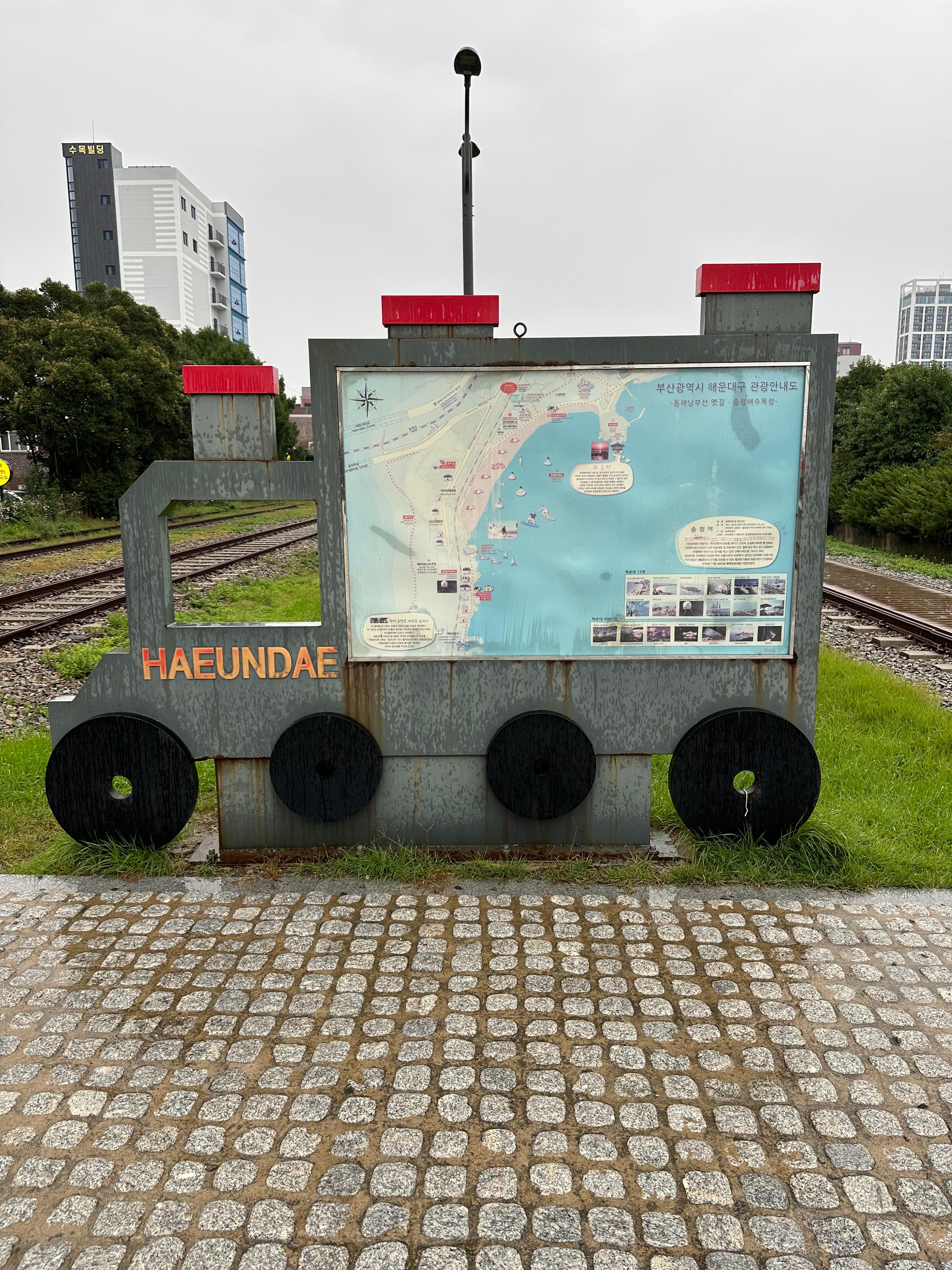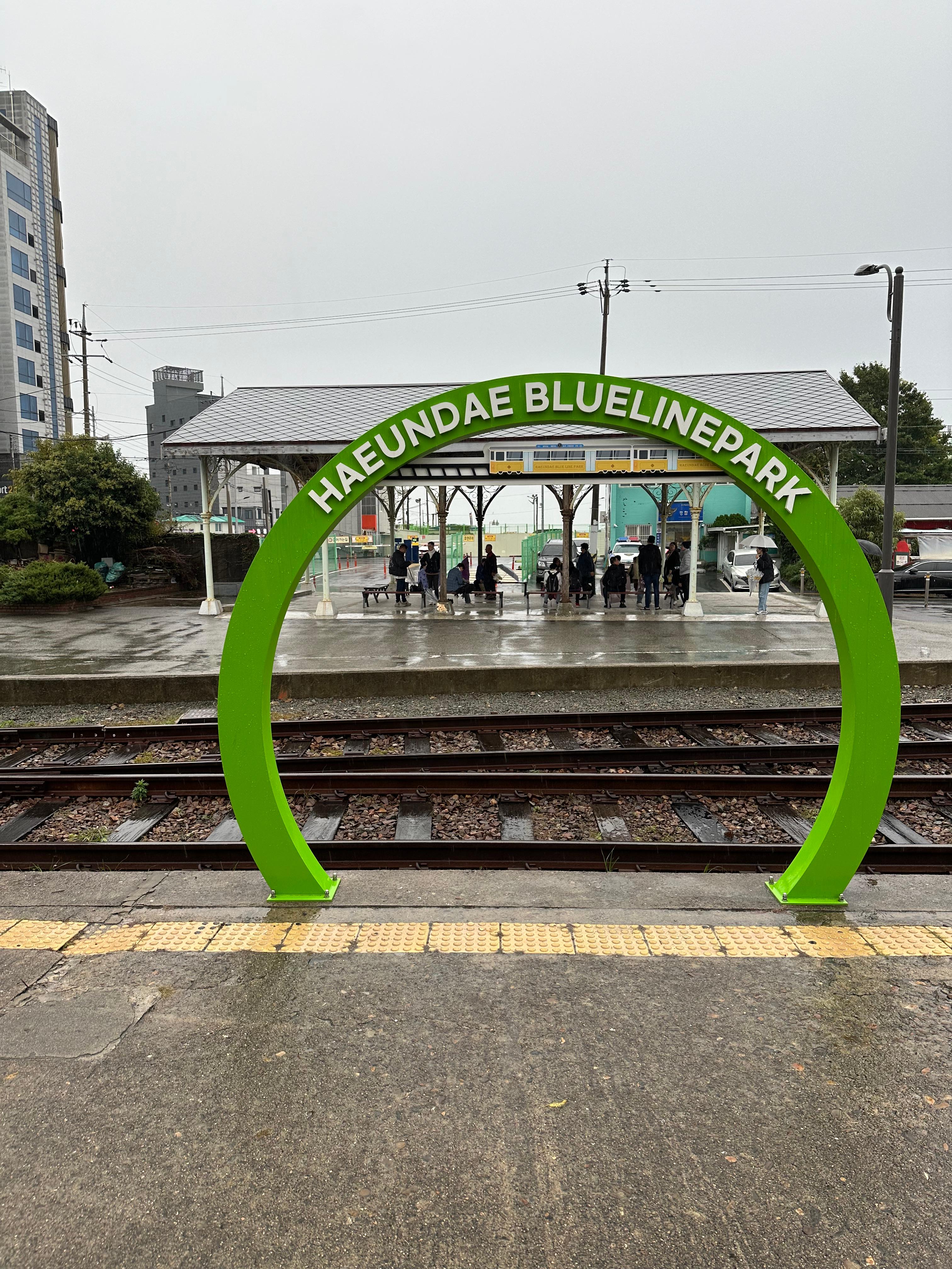 미포정거장에 도착해서는 우산을 쓰고 해운대 해수욕장을 지나 집으로 돌아가기 위해 한걸음 한걸음 이동했습니다. 과거에는 이곳으로 디젤기관차 무궁화호가 다녔었는데요. 이제는 추억속으로 사라진 동해남부선을 기억할 수 있는 유일한 관광상품으로 변했습니다.