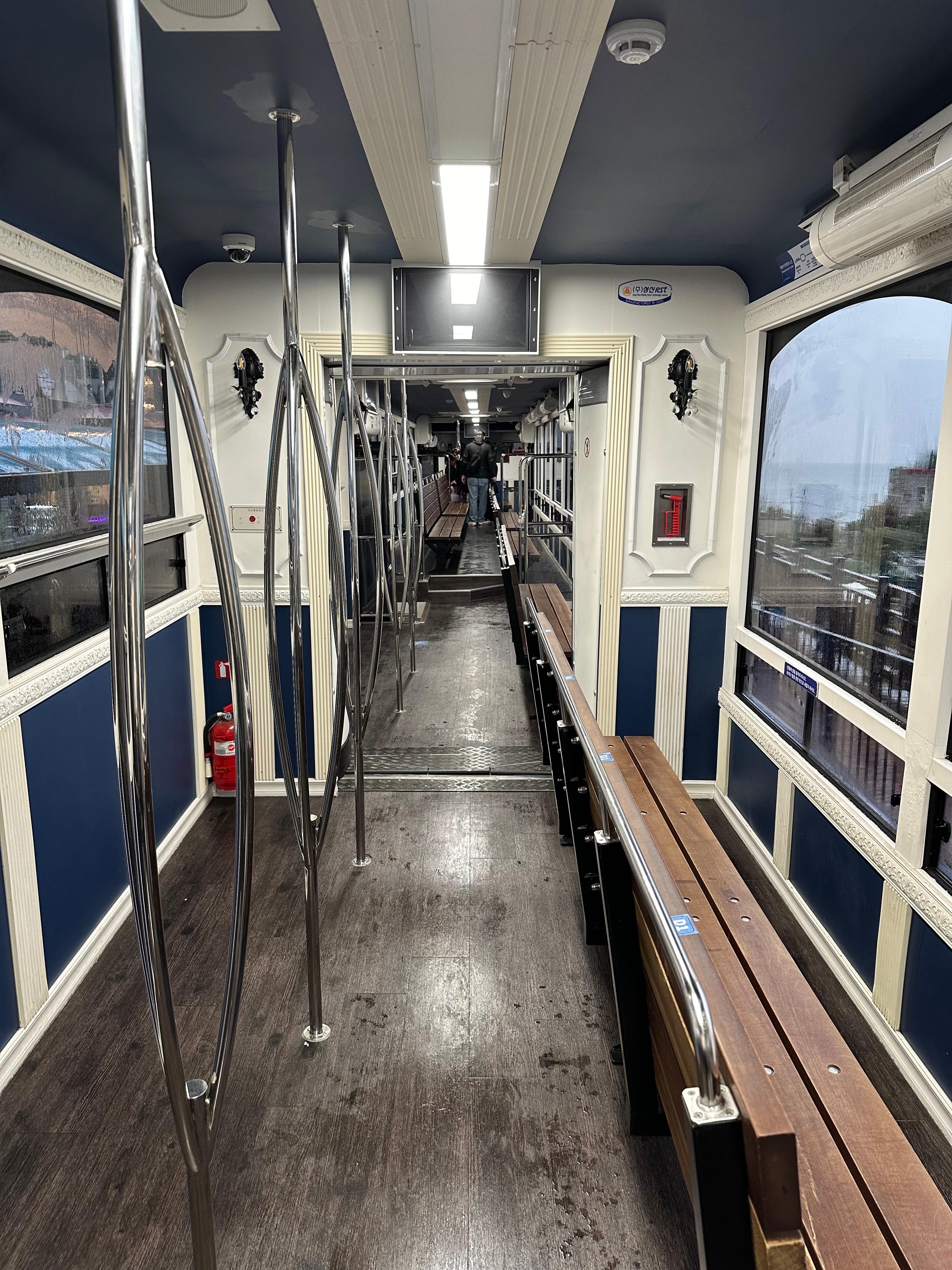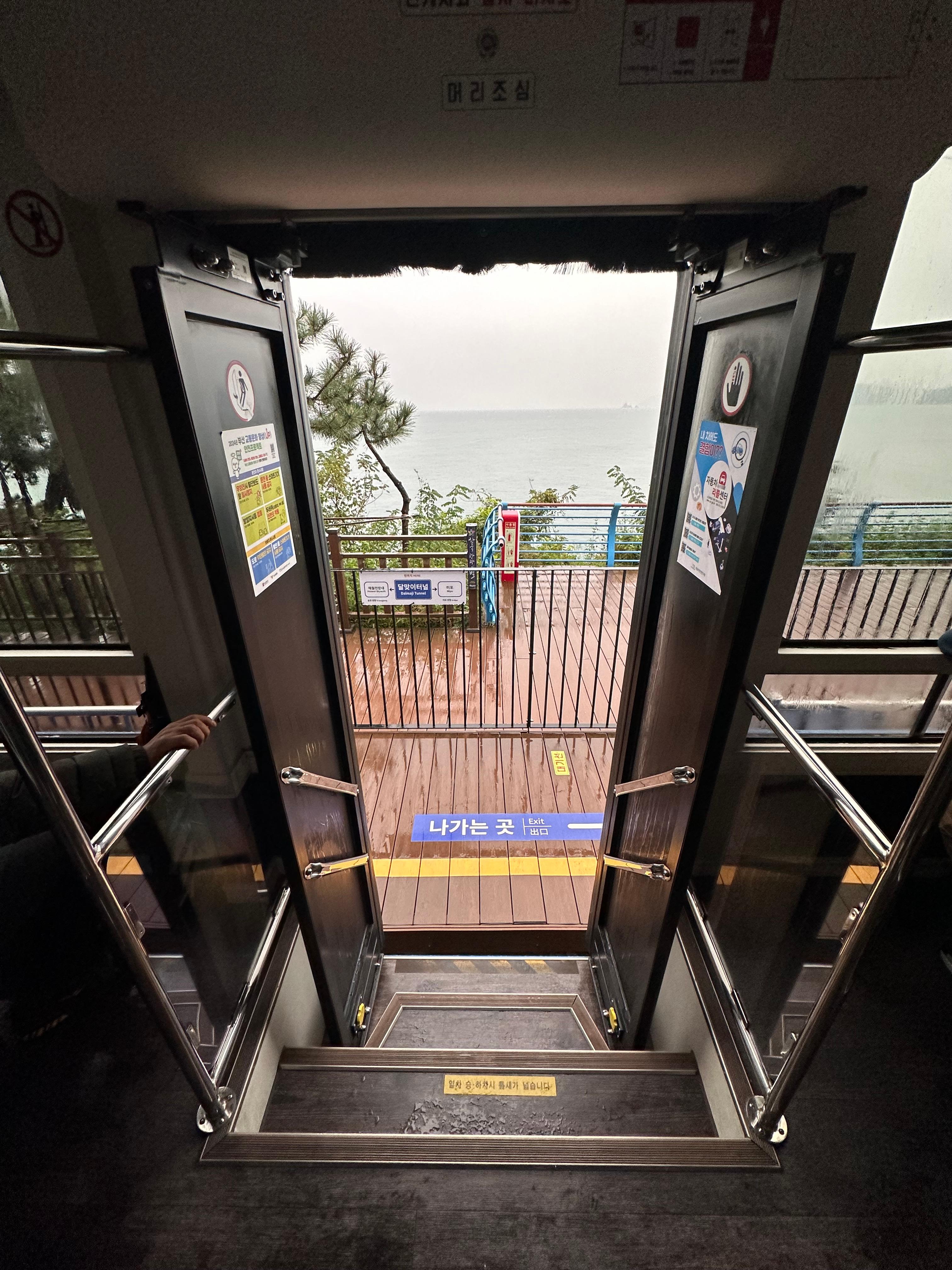 하지만 일찍 타야 하며 단점으로는 1층 라인이라서 바다뷰가 잘 보이지 않을 수 있습니다. 하지만 좌석이 여유가 있다면 입석공간으로 가서 보면 특히 바다 지나는 청사포와 해운대구간에서 멋진 뷰를 볼 수 있습니다.