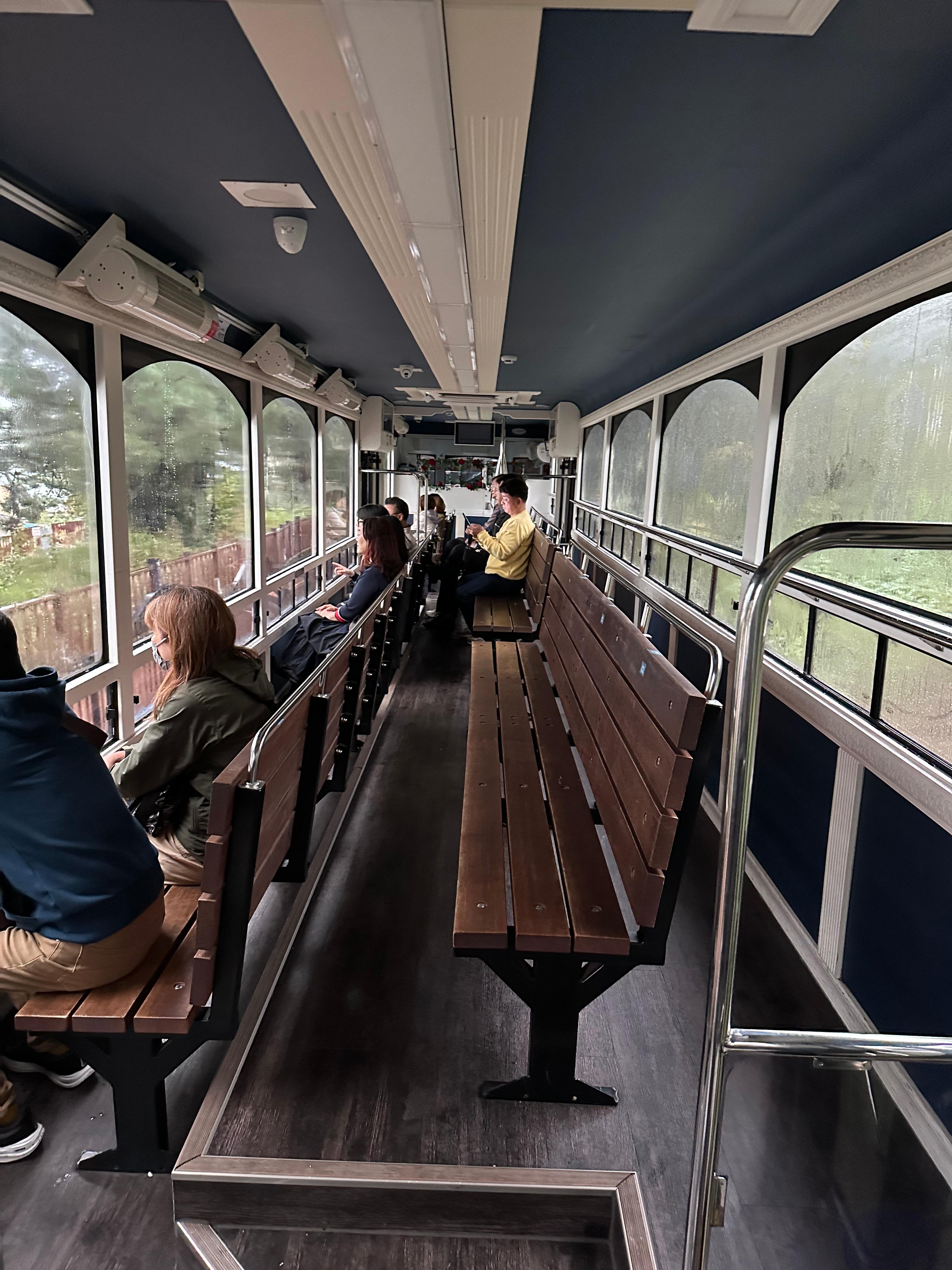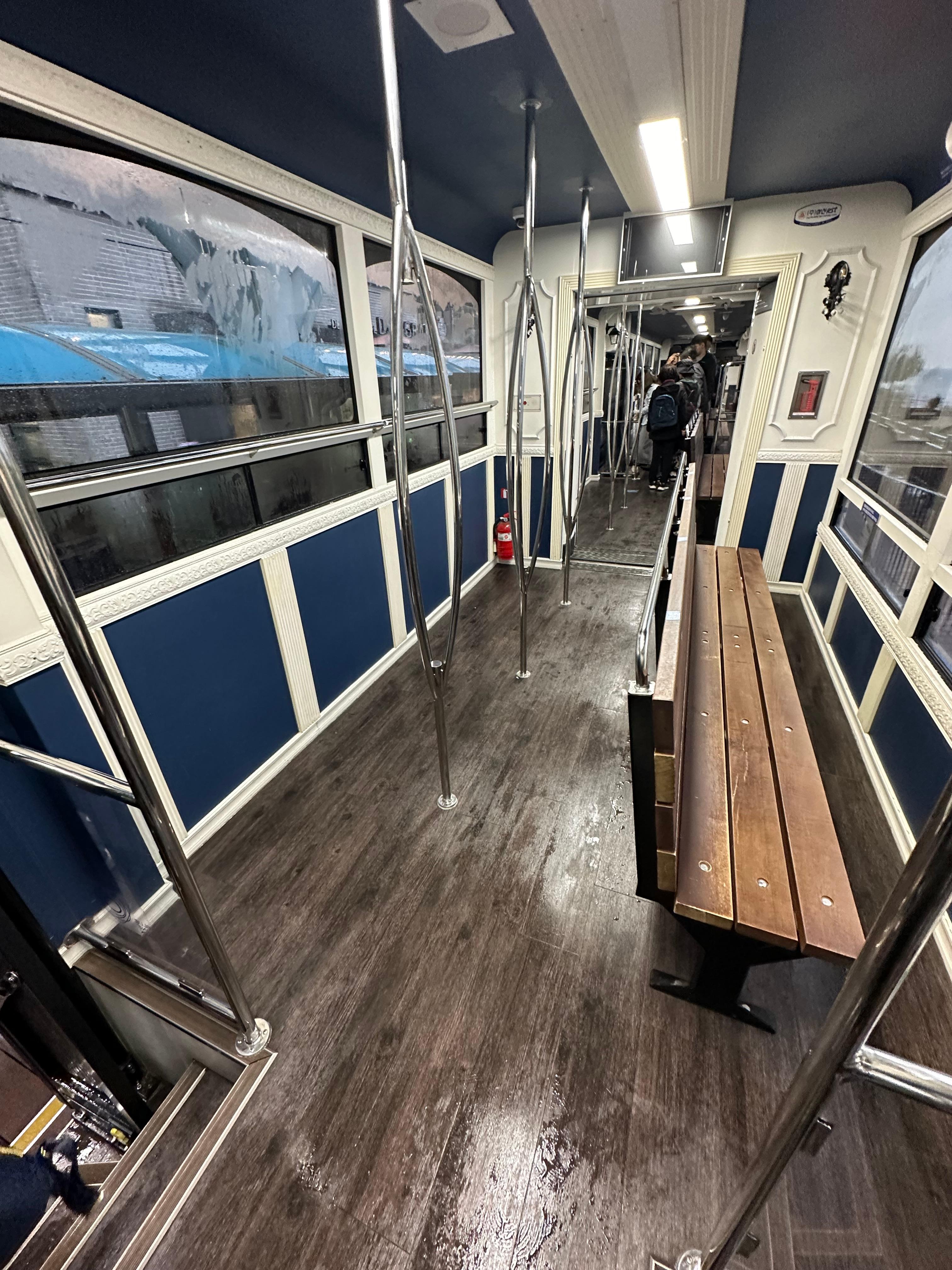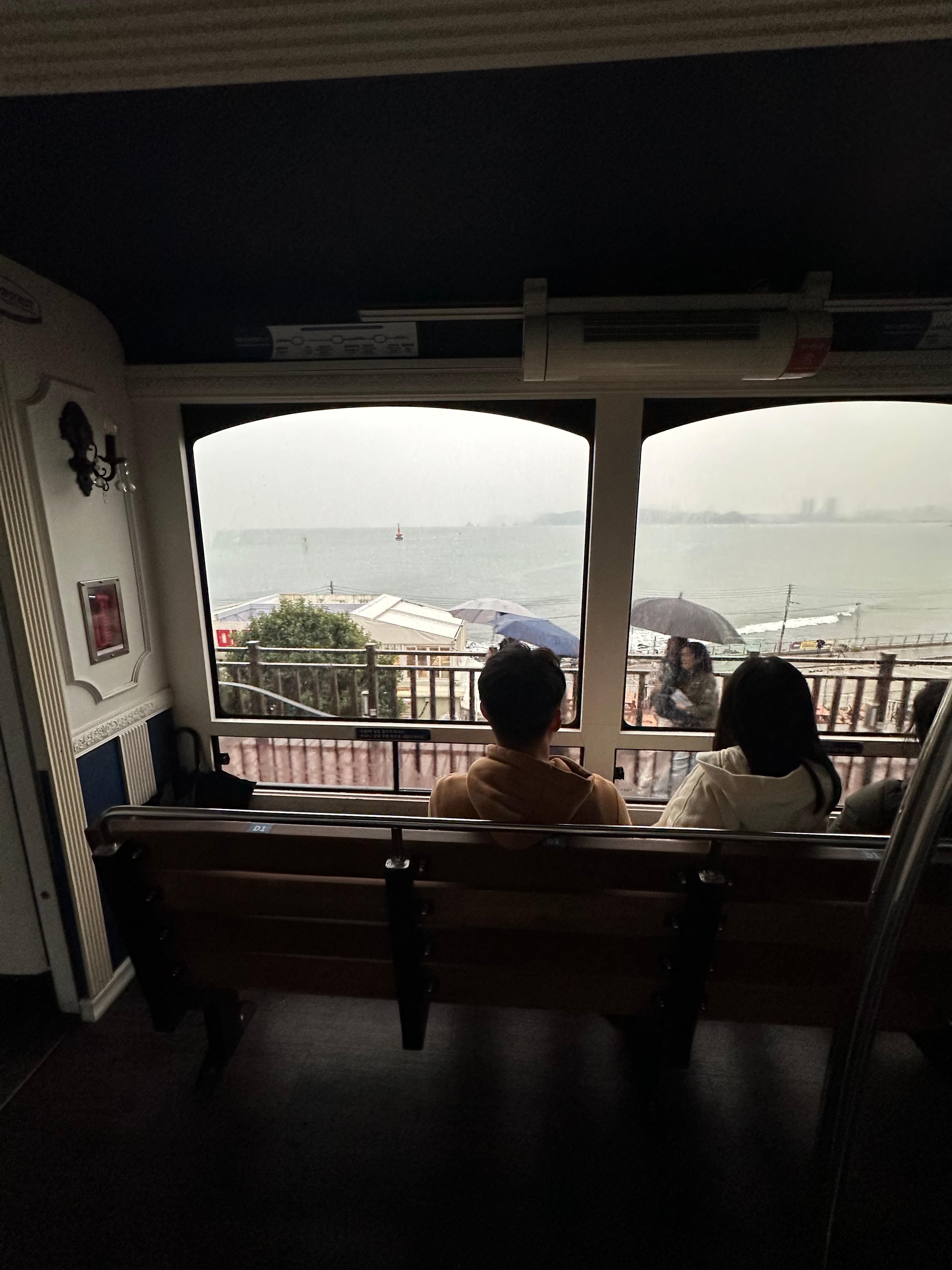 마지막으로 제가 앉았던 자리인데요. 탑승 20분전에 현장에서 발권했지만 운이 좋았는데 기다림 없이 바로 대기라인에 줄서서 앉았는데요. 보통 좌석은 1층과 2층석으로 되어있고 긴 좌석형태라 움직일 수 없었는데요 해변열차가 연결되는 칸 바로 앞에는 3-4명정도만 앚을 수 있는 좌석이 있습니다. 그래서 여기 앉으면 좀 더 자유롭게 입석으로도 다닐수있고 비교적 자유롭게 돌아다닐 수 있었던 좌석입니다.