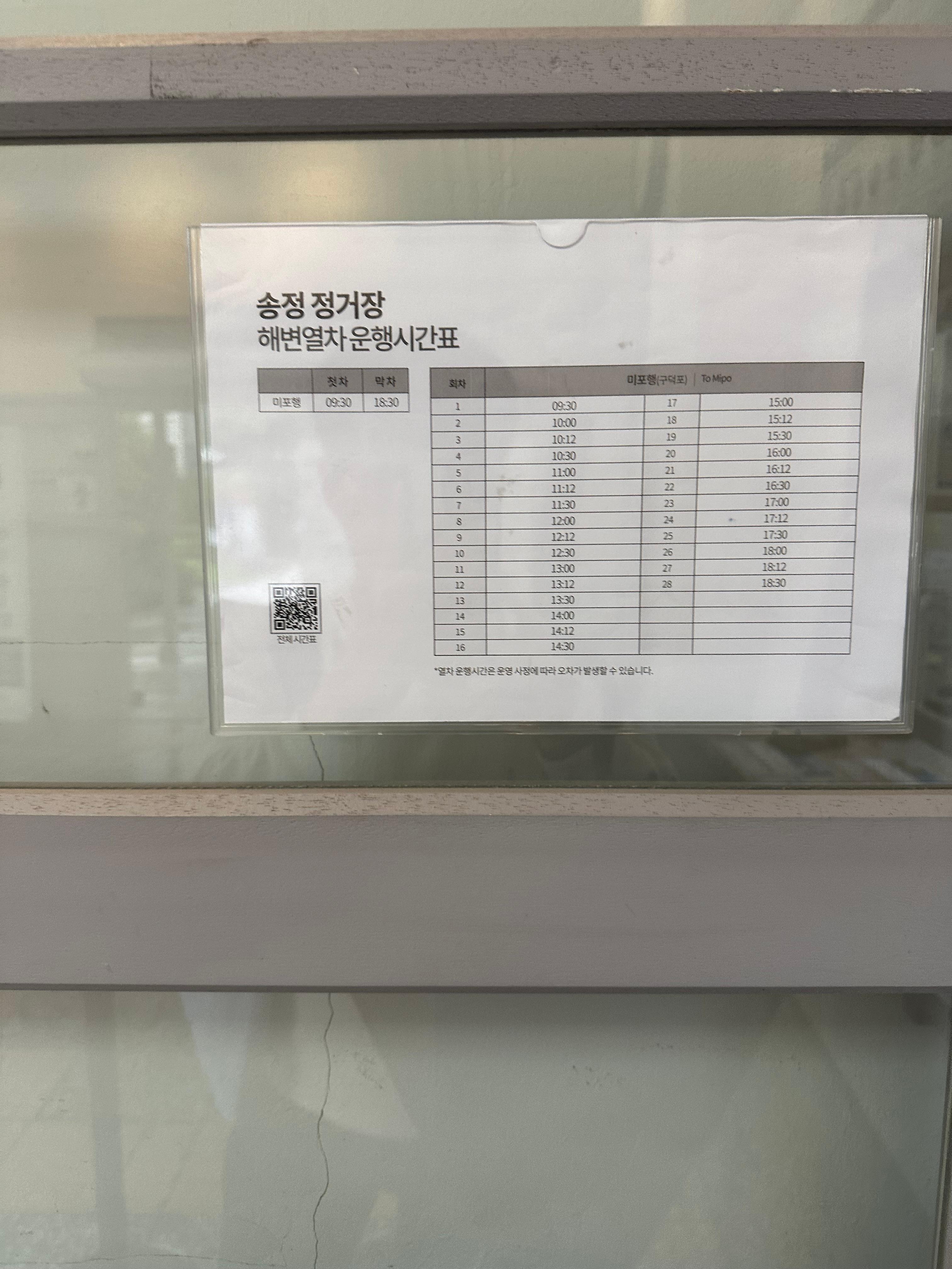 - 송정역 기준 미포방향으로 18시 30분 막차입니다.