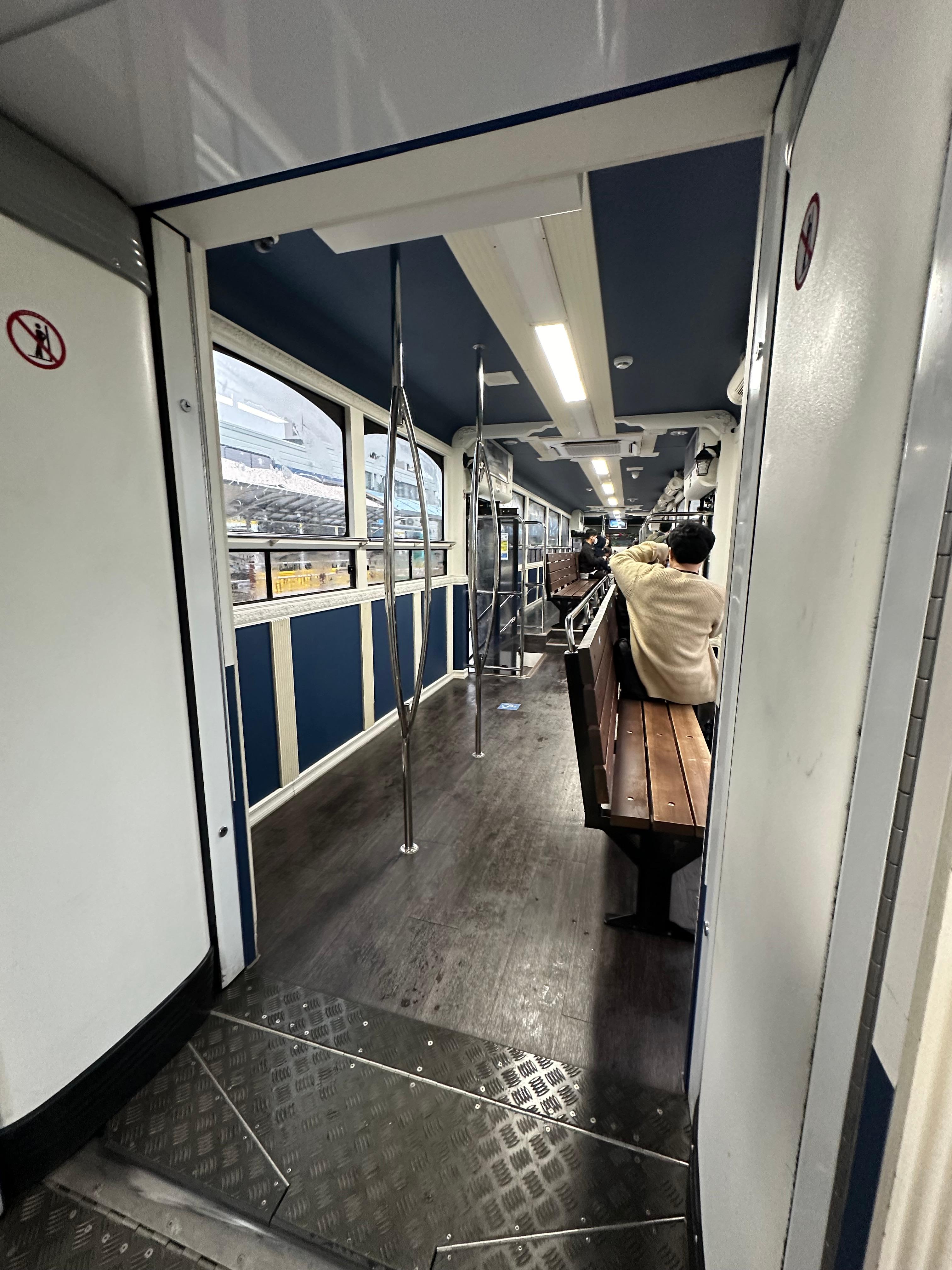 저는 승강장 바로 앞쪽에서 대기해서 좋은 좌석에 앚았습니다. 출입문기준으로 1층과 2층으로 구성된 좌석이 아니라 3명정도만 앉을수있는 좌석이 있는데요. 이 좌석의 경우 좌석 길이가 짧기 때문에 좌석뿐 아니라 입석으로 서있는 공간으로 가서 자유롭게 찍을 수 있습니다. 좌석길이가 길경우 운행중 옆사람을 지나가야하기 때문에 불편해 할수 있지만 3명정도 앉는 좌석은 자유로웠습니다.