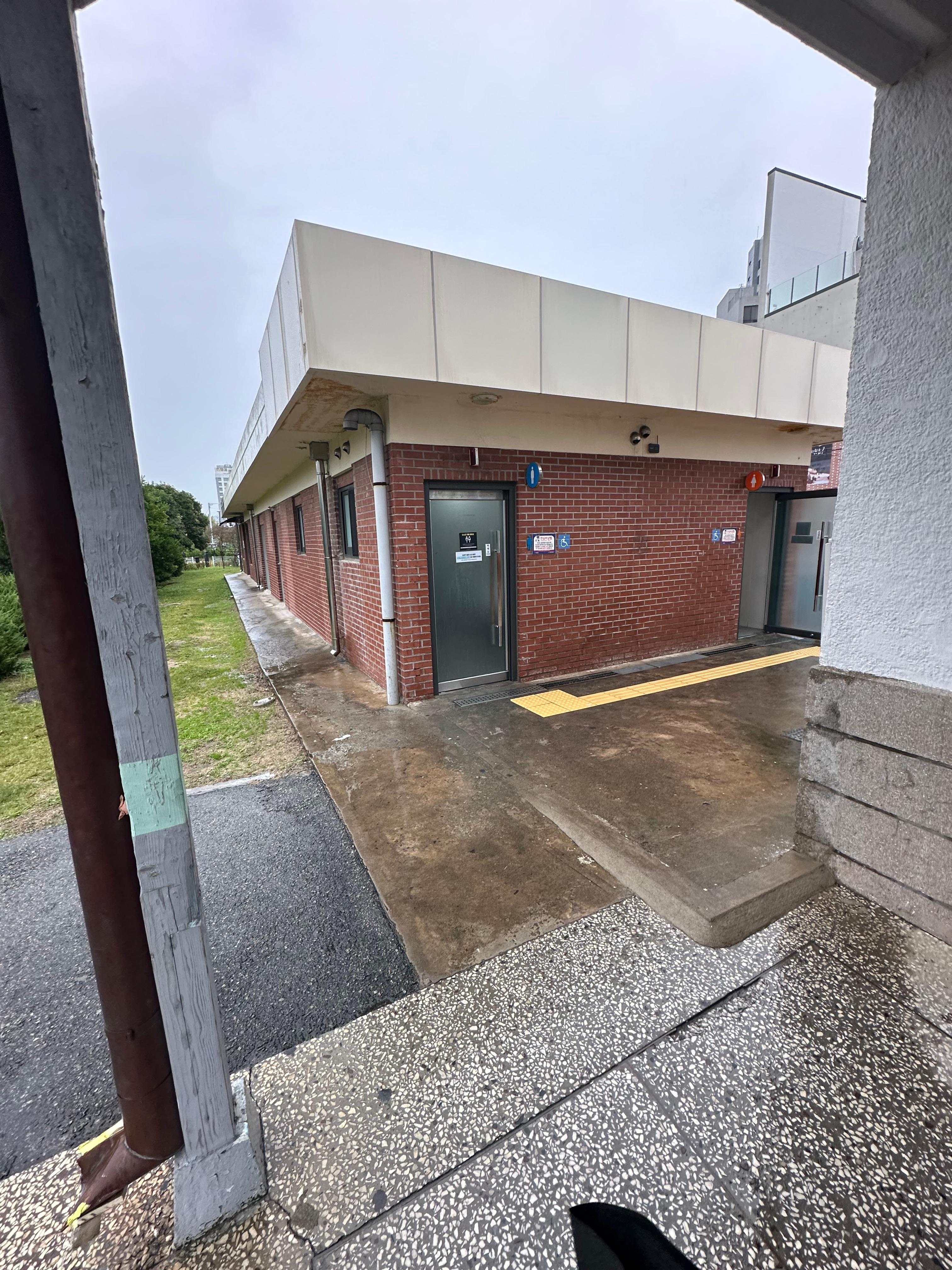 티켓을 발권하고 저는 건널목이 있는 송정역 뒤편으로 이동했습니다. 송정역은 일제강점기에 개통된 역사인데요. 그래서 그런지 일제강점기의 분위기가 느껴집니다. 동해남부선 복선전철화에 의해서 운행이 중단되고 블루라인파크 해변열차의 개통과 함께 2020년에 국가등록문화재로 등록되었다고 합니다. 송정역 역사 건물 옆에는 화장실이 있는데요.
