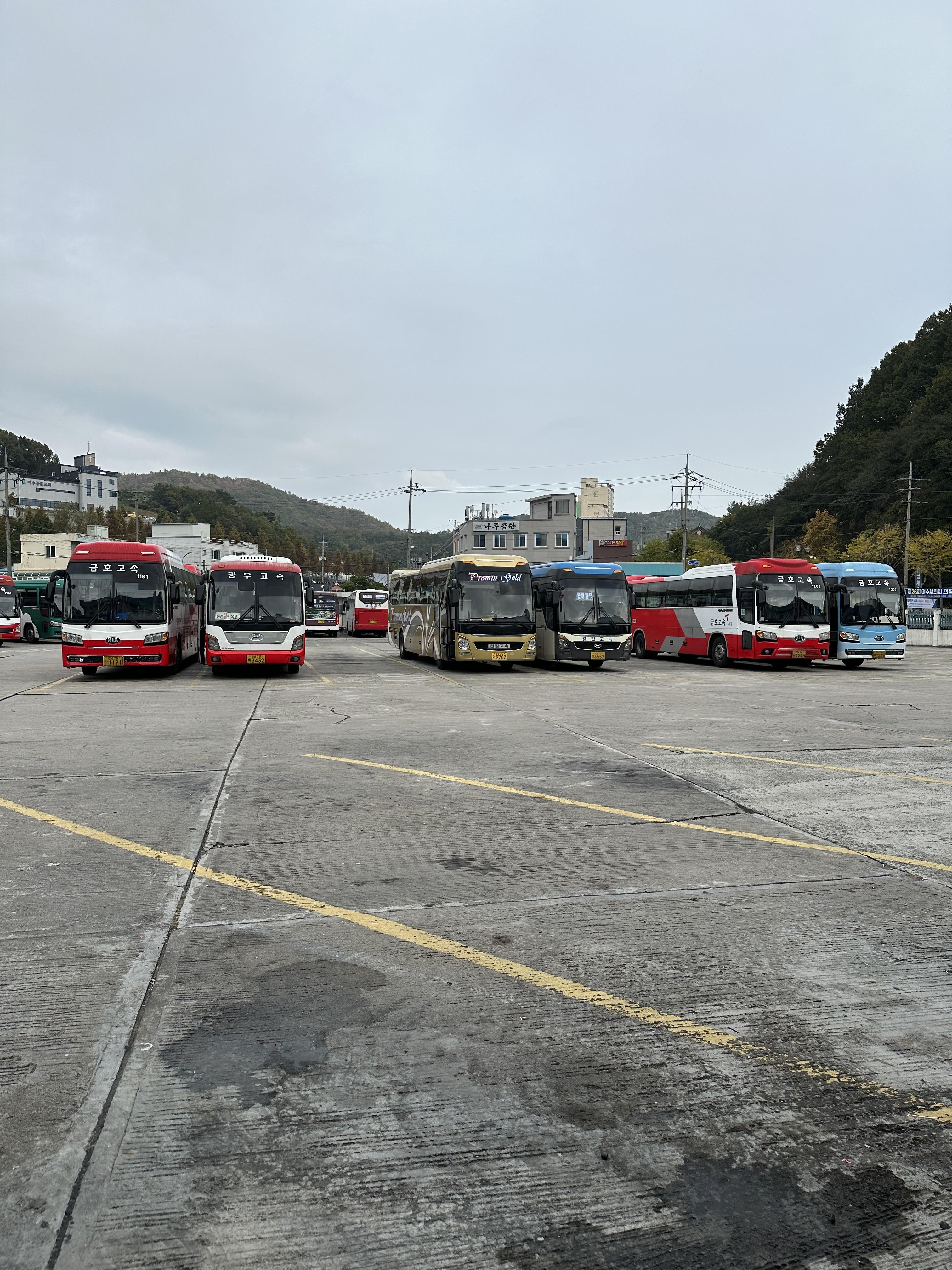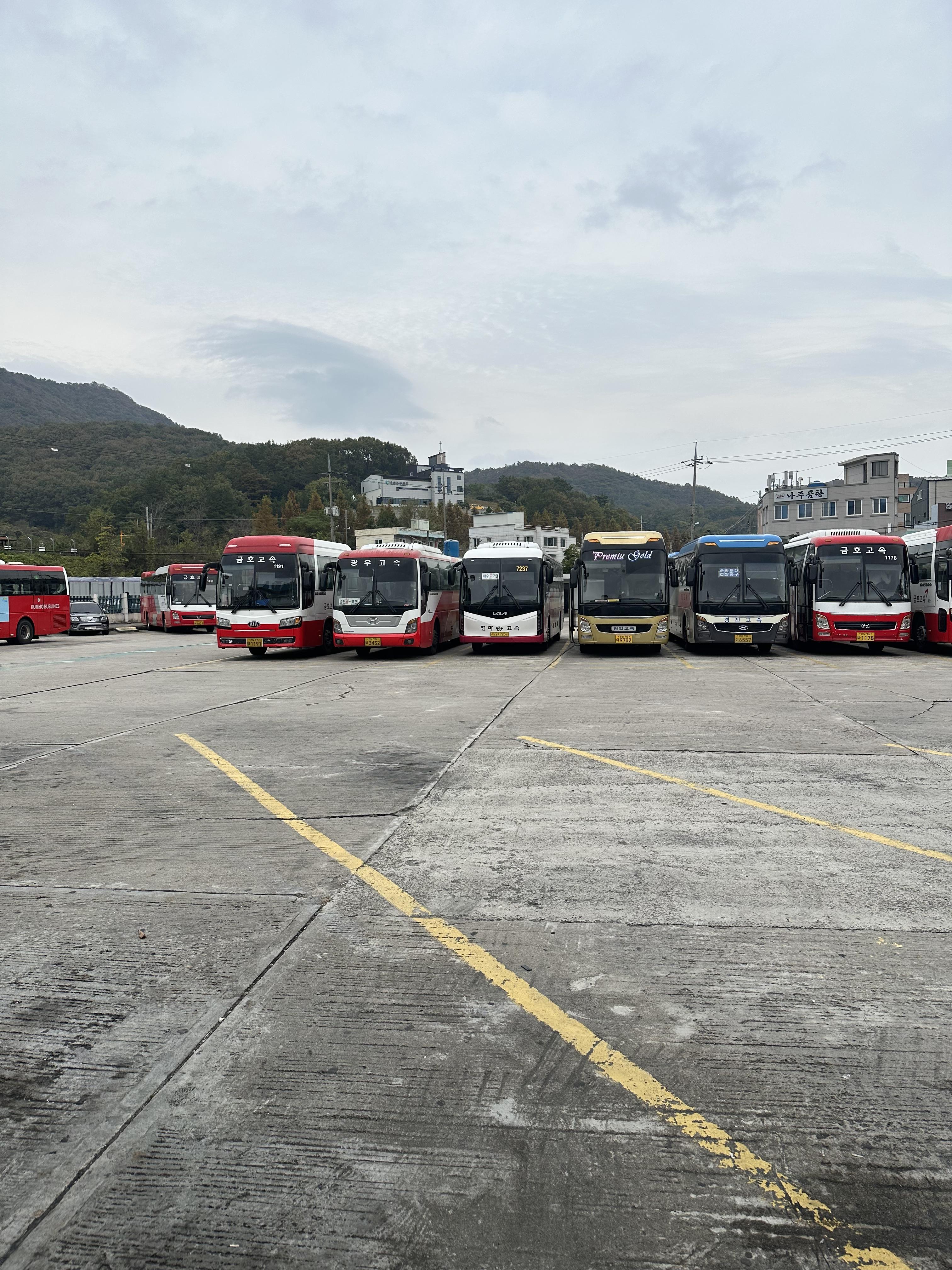 여수 시외버스터미널 승차장에서 찍어본 사진입니다. 지방 소도시보다는 큰편이라 버스가 굉장히 많았습니다. 프리미엄 버스도 있고, 모양이 좀 특이한 버스들도 있었습니다.