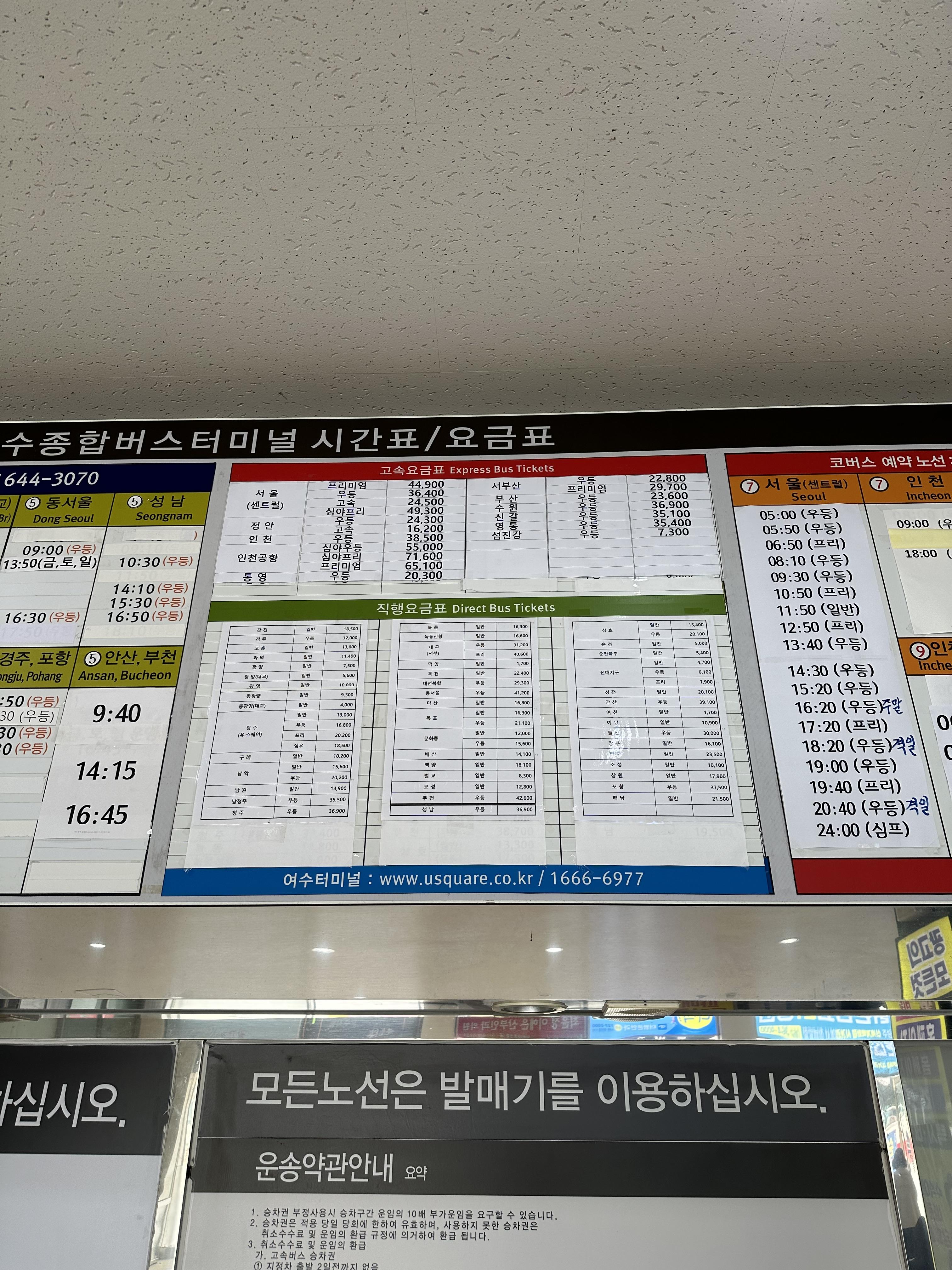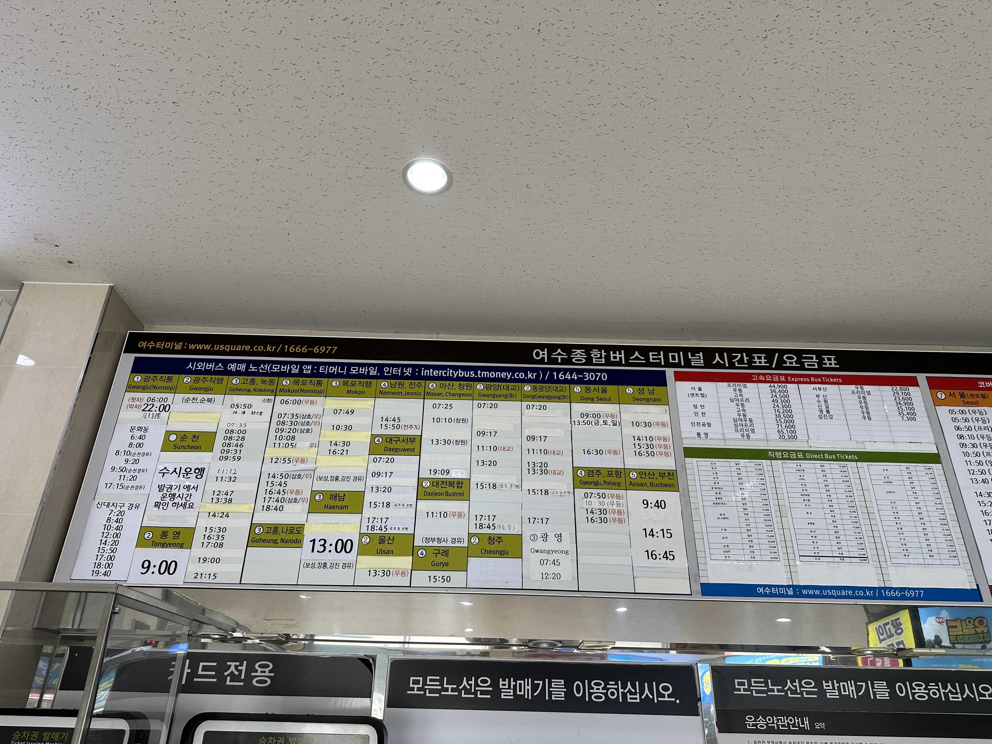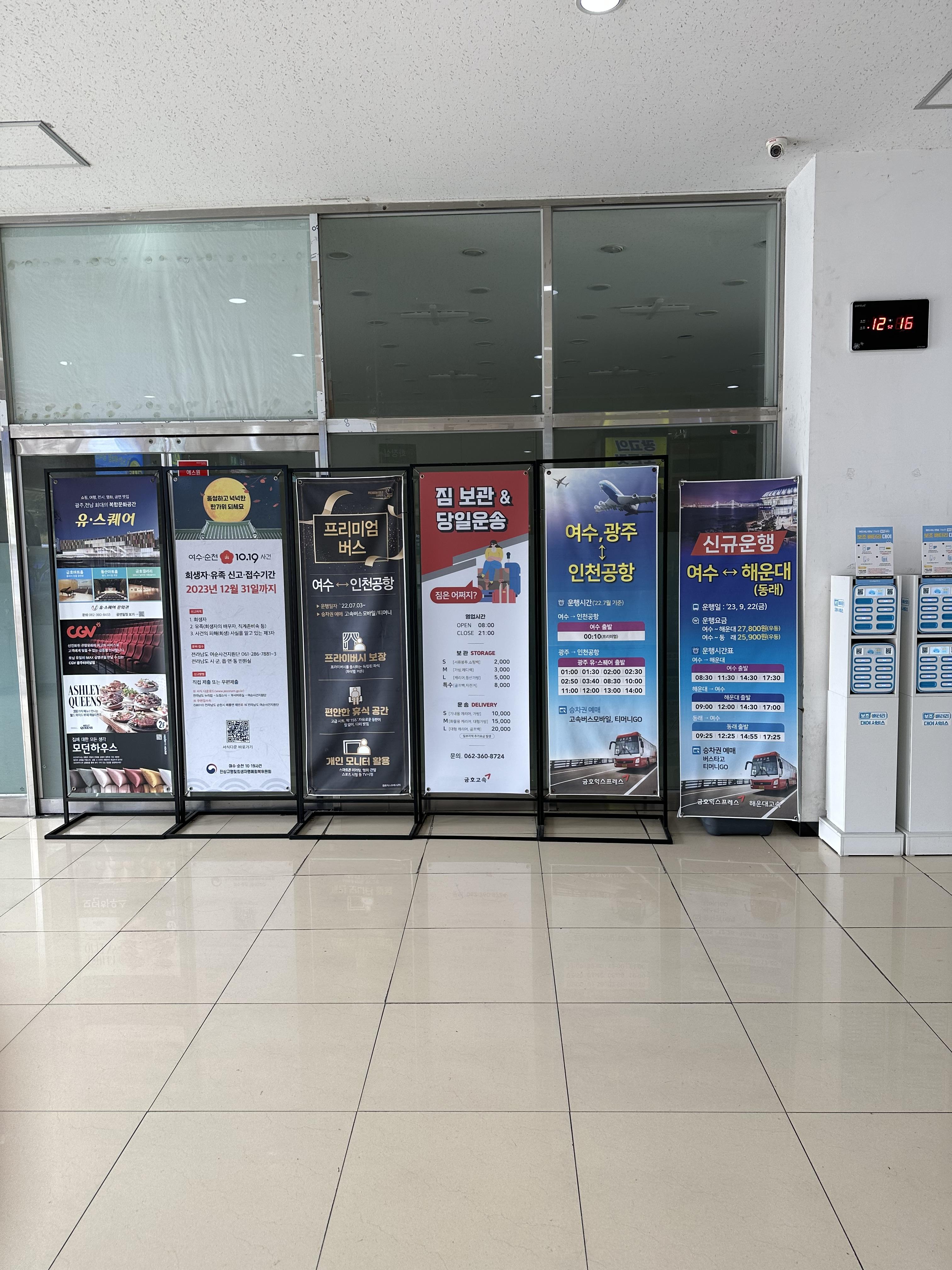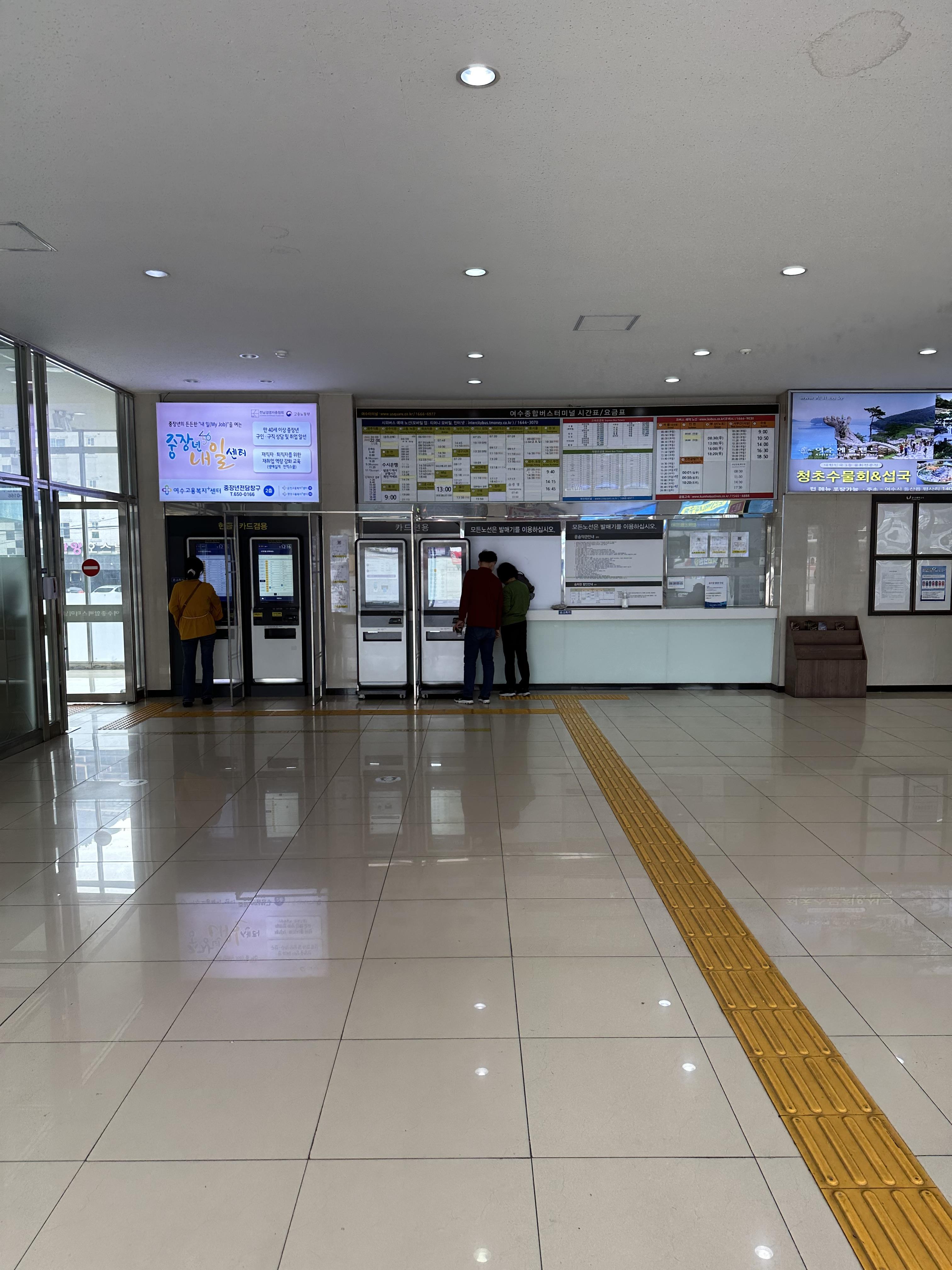 그리고 최근에는 무인시설이 등장하고 있는데요. 여수 터미널에도 당연 무인티켓 시설이 있습니다. 저출산 고령화로 인해 당연히 지방에서는 더 필요할 것으로 보여요.