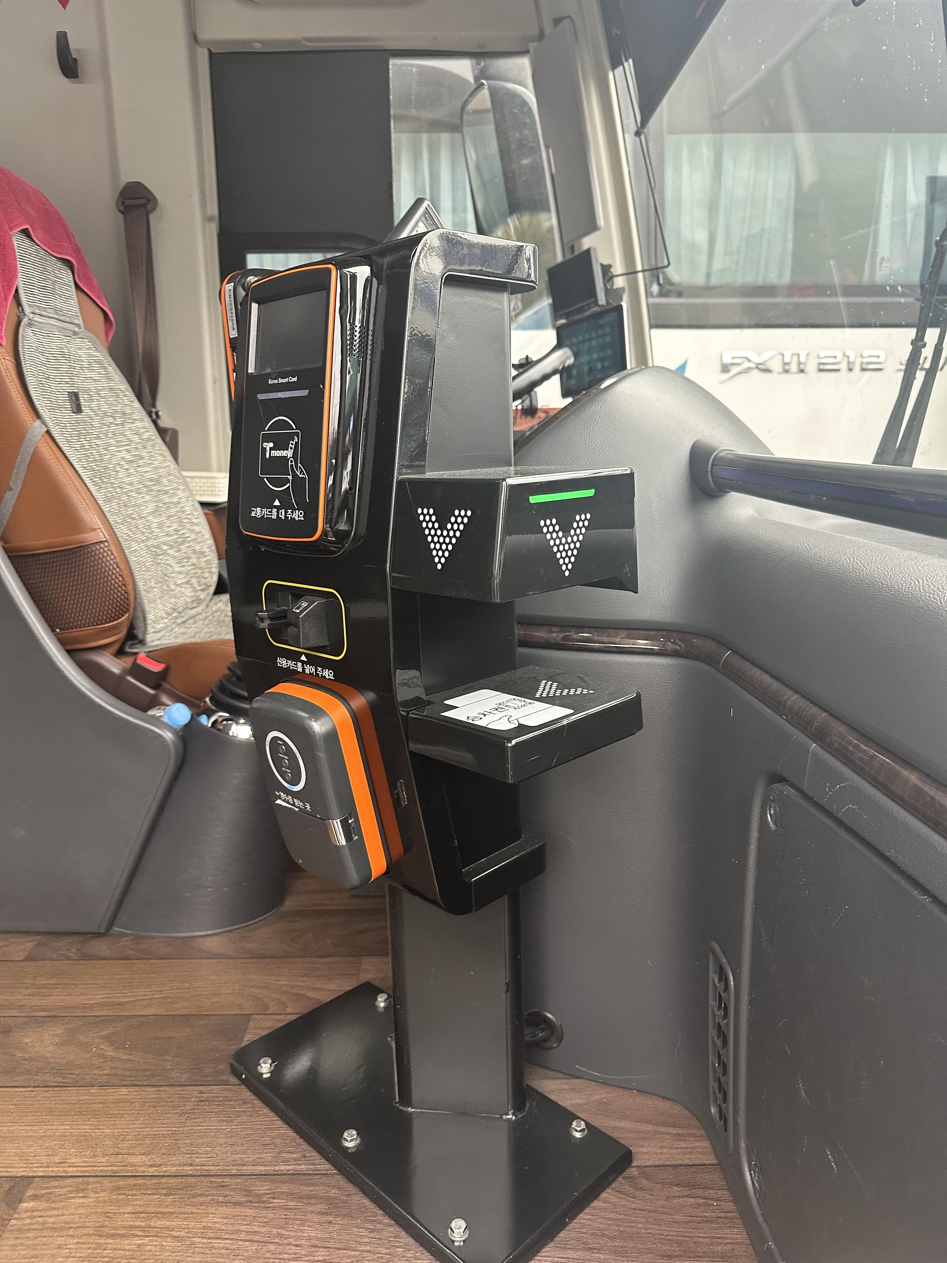 이제 프리미엄 버스에 탑승합니다. 제가 어렸을 때 10년전, 20년전에는 기사님이 직접 표를 받아서 기사님꺼랑 손님꺼 나눠서 주셨는데요. 이제는 티머니 GO 앱을 통해 구매한 티켓은 QR로 찍으면 좌석 확정을 하게 됩니다.
