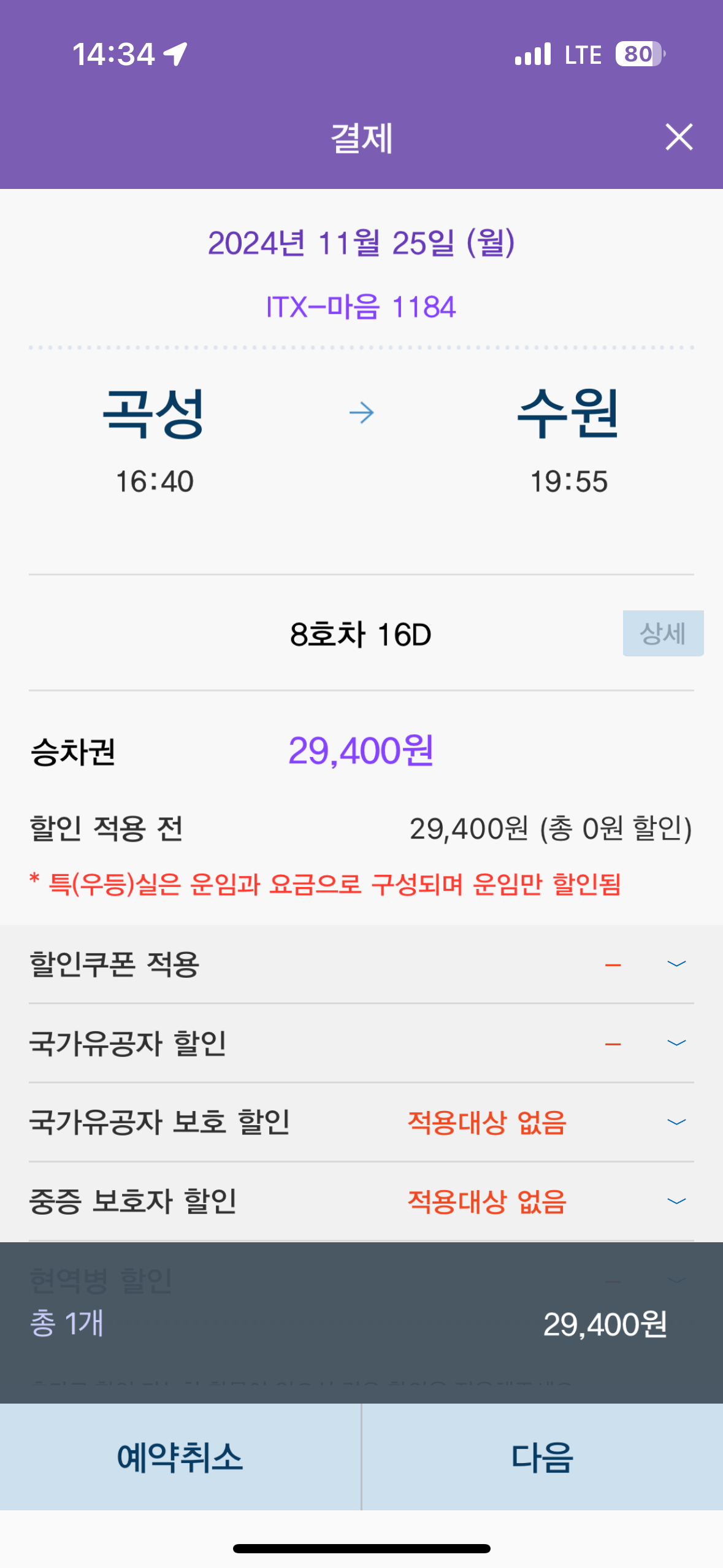 - 과거와 달라진점은 이제는 KTX와 일반열차도 1일 2회에 한하여 좌석을 지정할 수 있다는 점입니다.