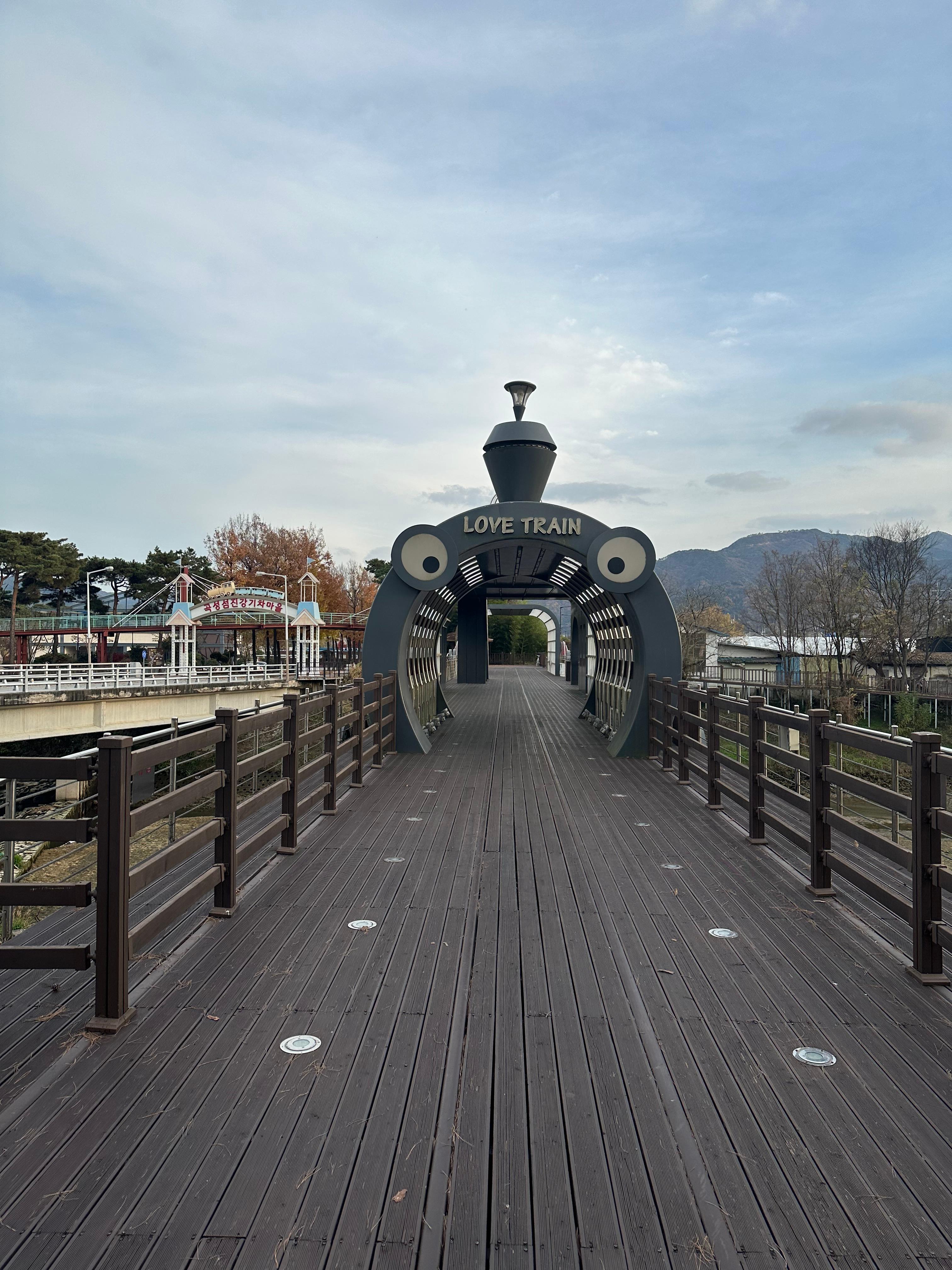 과거 증기기관차의 모습과 함께 귀여운 모습을 엿볼 수 있는 눈모양이 이색적이었습니다. 과거의 증기기관차는 현대의 고속열차나 ITX마음 열차에 비하면 요란한 소리와 함께 시끄럽고 무서운 느낌을 받을 수 있는데요. 증기기관차의 모습과 함께 귀여운 이모티콘을 붙인 다리의 러브 트레인은 친숙한 느낌을 받을 수 있었습니다.