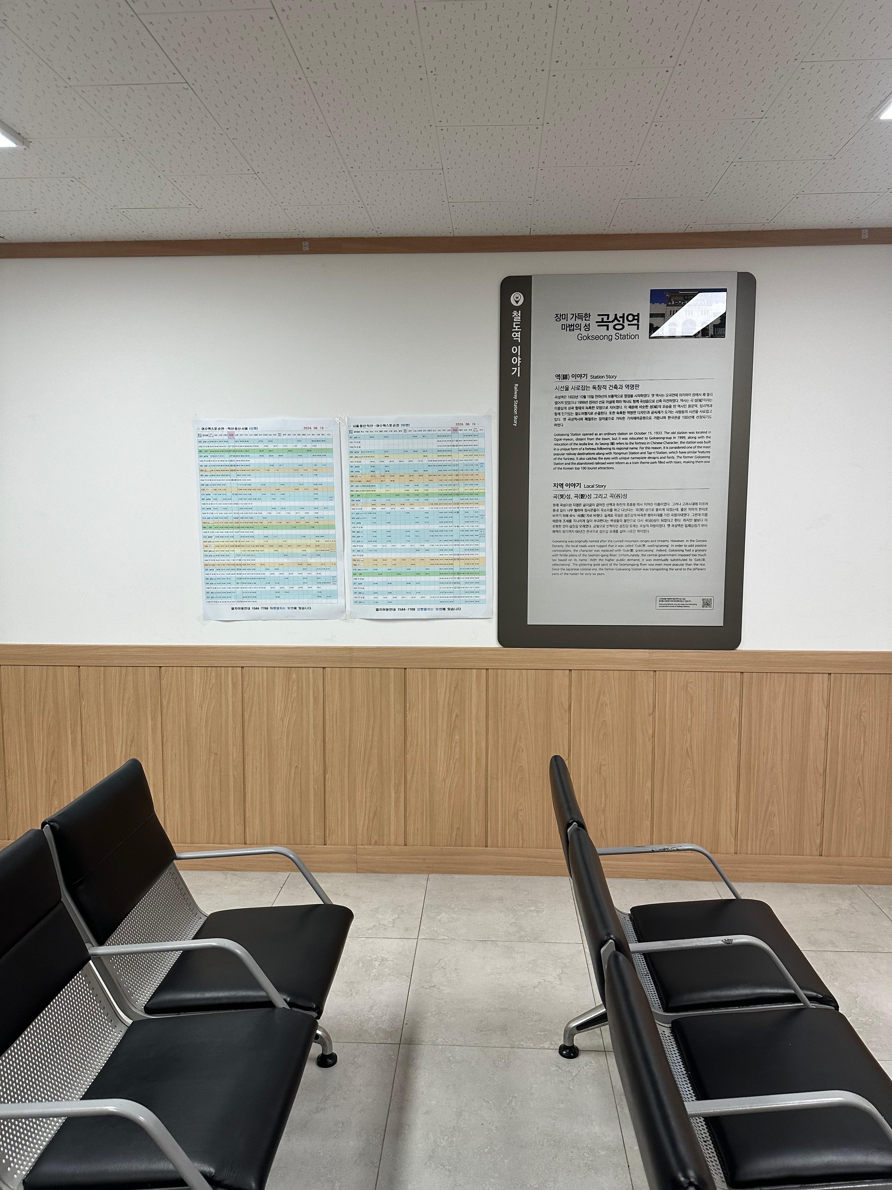 곡성역 안쪽에는 별도의 대합실이 있었는데요. 겨울에는 춥기 때문에 안쪽 대합실로 들어오면 따뜻하게 보낼 수 있습니다. 대합실 안쪽에는 수유방이 별도로 있었습니다. 요즘은 수유방 역시 공공기관과 시설등에서 자주 볼 수 있었습니다. 대합실 안쪽에는 곡성역 여수 순천방향과 익산 서울방향의 기차 시간표도 볼 수 있으며 그 외에 코레일에서 다양한 기차 패키지 상품 정보도 살펴볼 수 있었습니다.