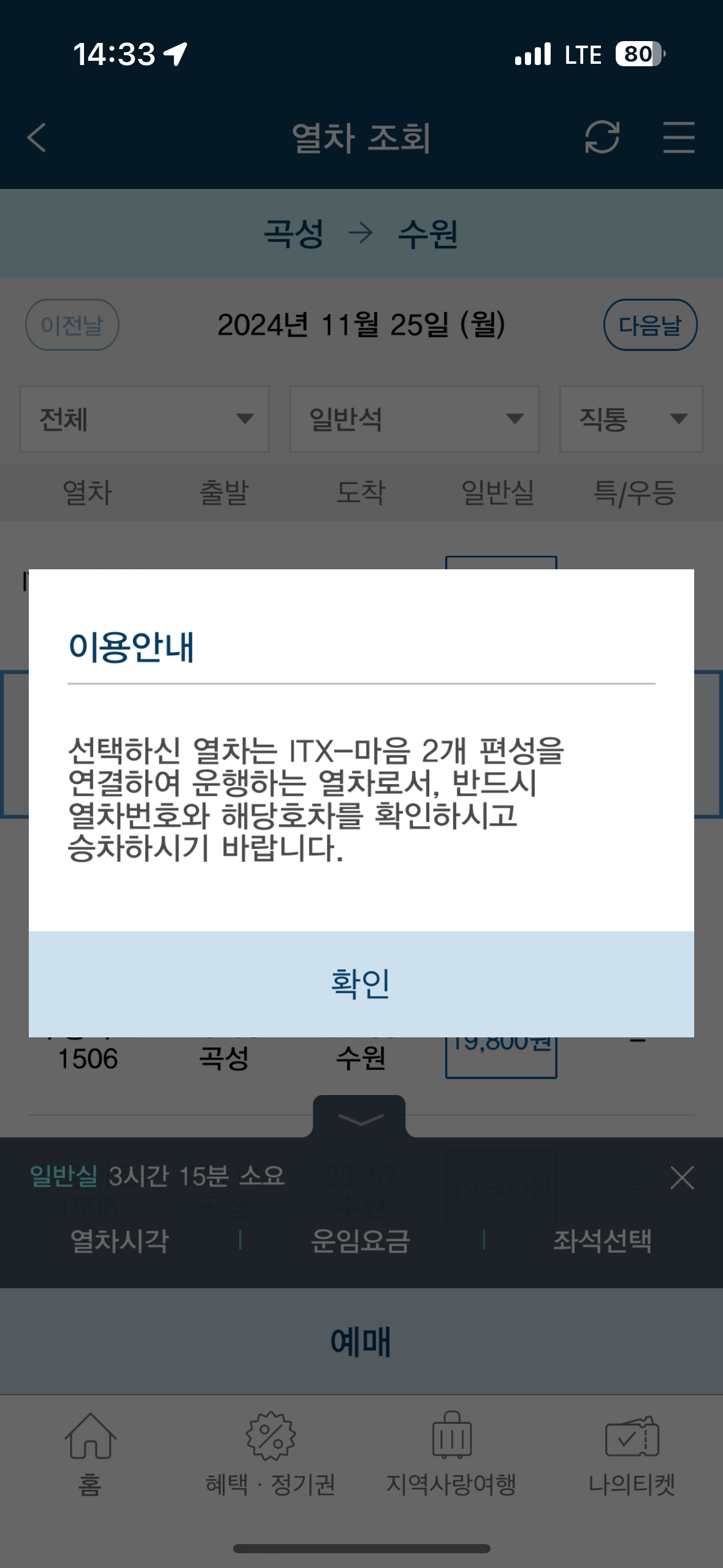 제가 탔던 ITX 마음 열차는 복합열차인데요. 하지만 전라선의 경우 익산역까지는 한대의 열차만 운행하는 것을 볼 수 있습니다. 그리고 승객이 많아지게 되는 전라선과 호남선의 환승역인 익산역에서 복합열차가 연결된다는 점에서 이 공지 팝업은 전라선일대에서는 의미가 없는데요. 그래도 참고하면 좋을 것 같습니다.