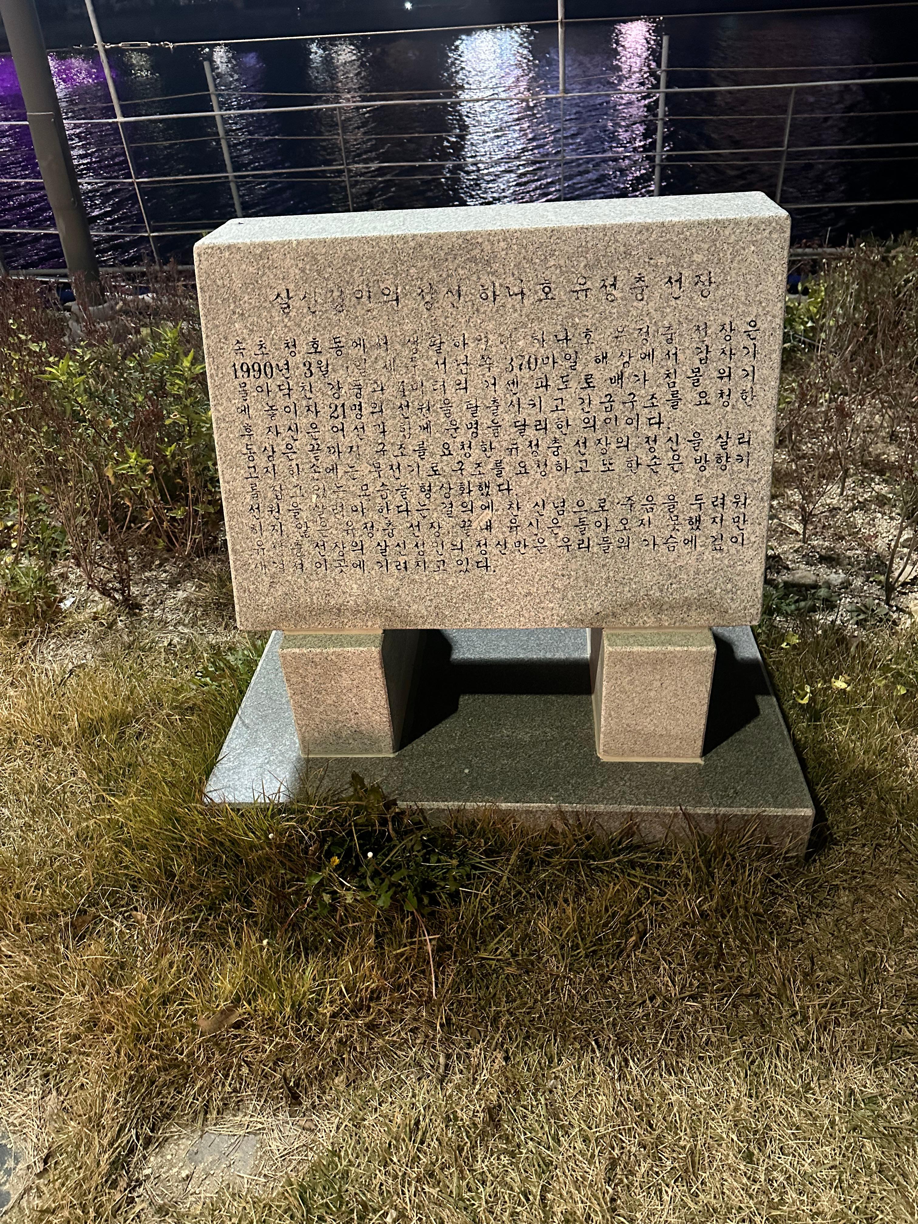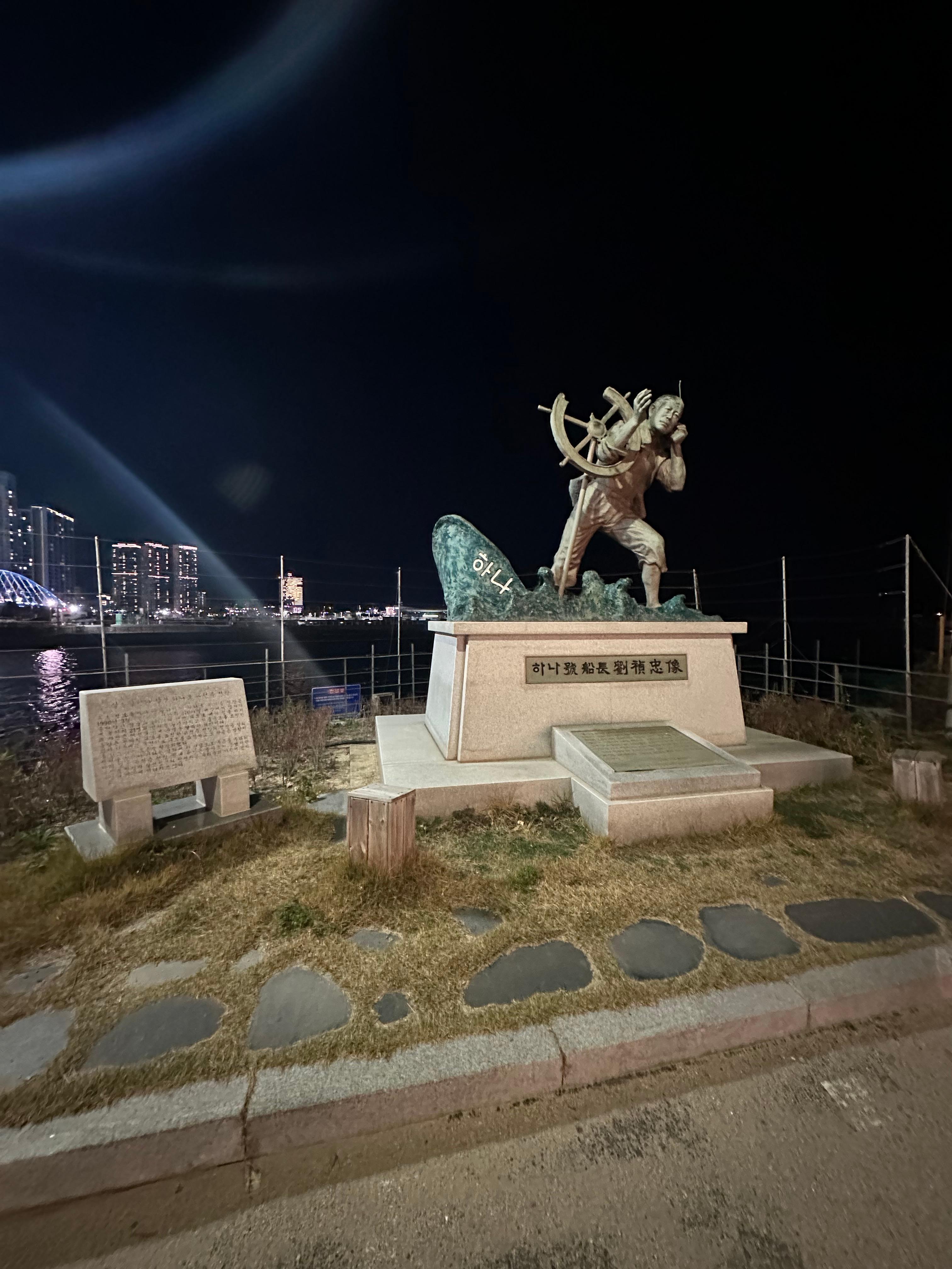 속초 해수욕장 방파제를 지나 걷다보니 살신성인의 정신을 가진 하나호 유정충 선장데 대한 일화를 볼 수 있었는데요. 지난 세월호 사건의 이준석 선장과는 다르게 21명의 선원들을 구하기 위해 자신의 목숨을 희생해서 구했다는 살신성인 정신의 선장 일화를 볼 수 있었습니다. 유정충 선장은 고기잡이를 업으로 삼고 있느 분이라고 합니다. 제주도까지 물고기를 잡기 위해 멀리 갔는데요. 하지만 이날 갑자기 만난 강풍으로 인해 하나호는 침몰 위기에 처했고 이때 유정충 선장은 21명의 선원들을 구하기 위해 자신을 희생했다고 해요. 그후로 의인으로 추앙받게 되었다고하는데요. 정말 멋진분입니다. 당시 하나호 침몰 사건은 1990년 3월1일에 발생했고 1991년 1월 9월에 유정충 선장의 동상이 세워졌다고 해요.