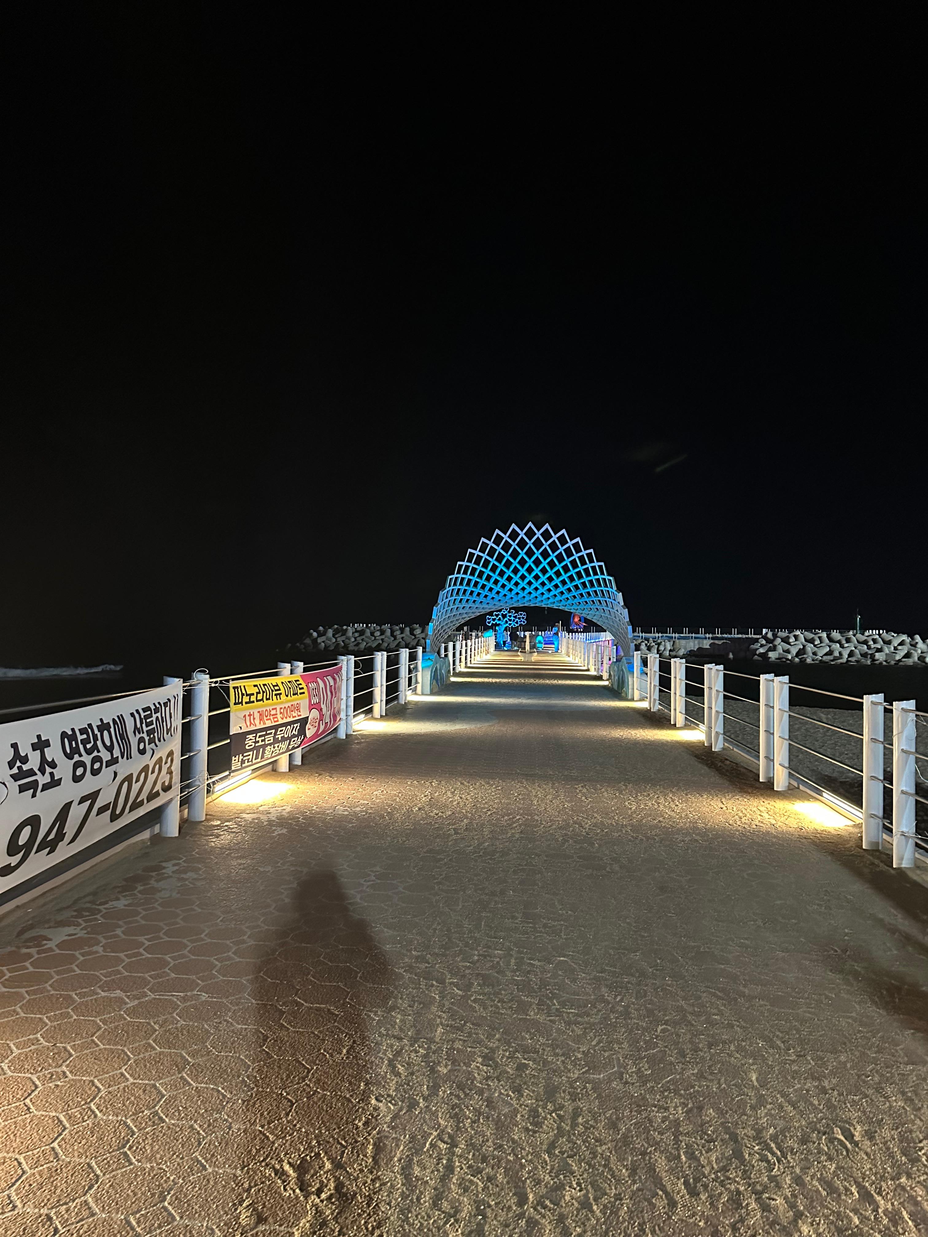 불타는 금요일 불금에 찾아간 속초 아바이마을 따라 겨울 밤바다 보며 설악대교 위에서 아름답고 조용한 속초 바다 걷기 여행 후기 정리해려요.