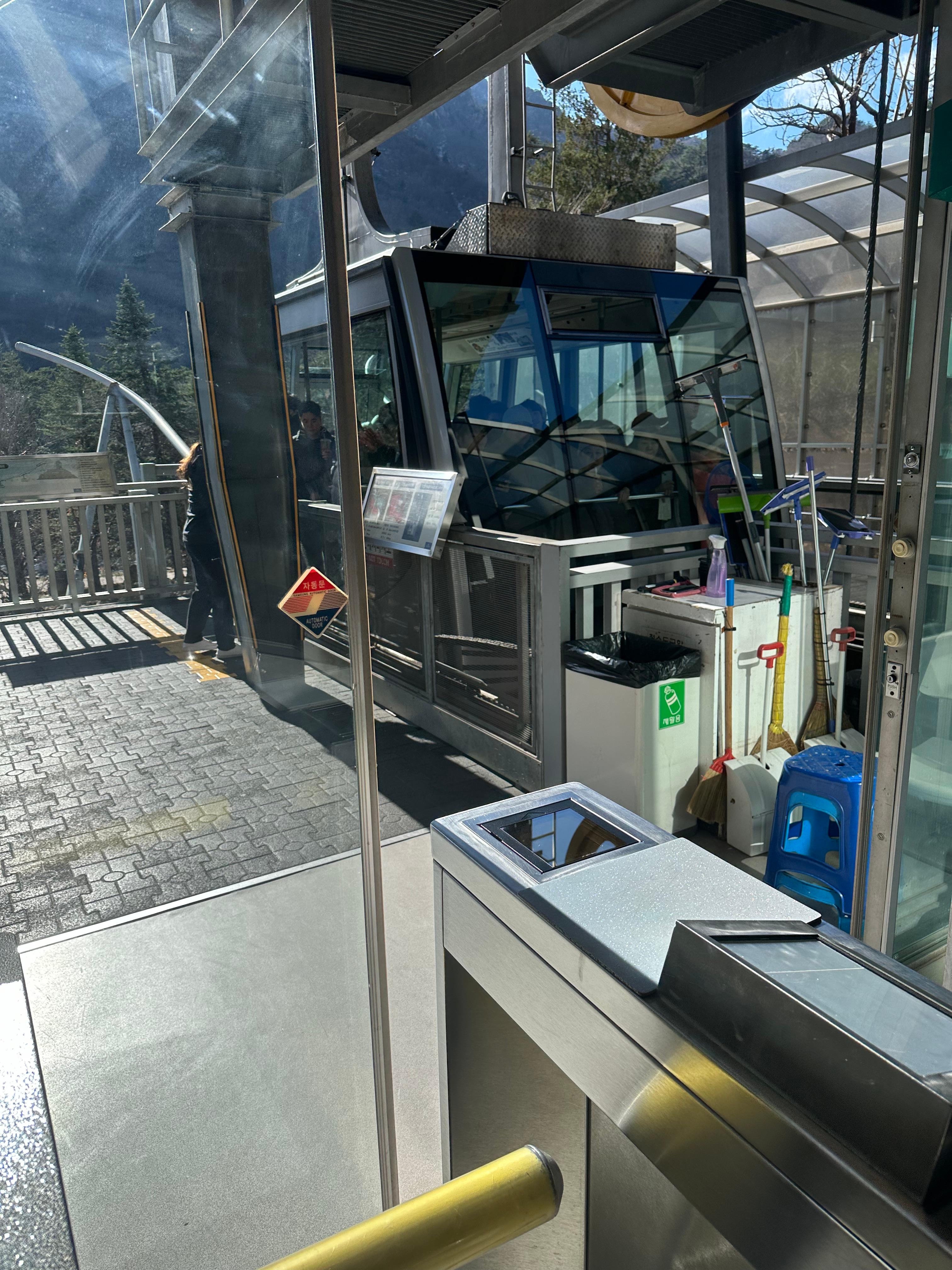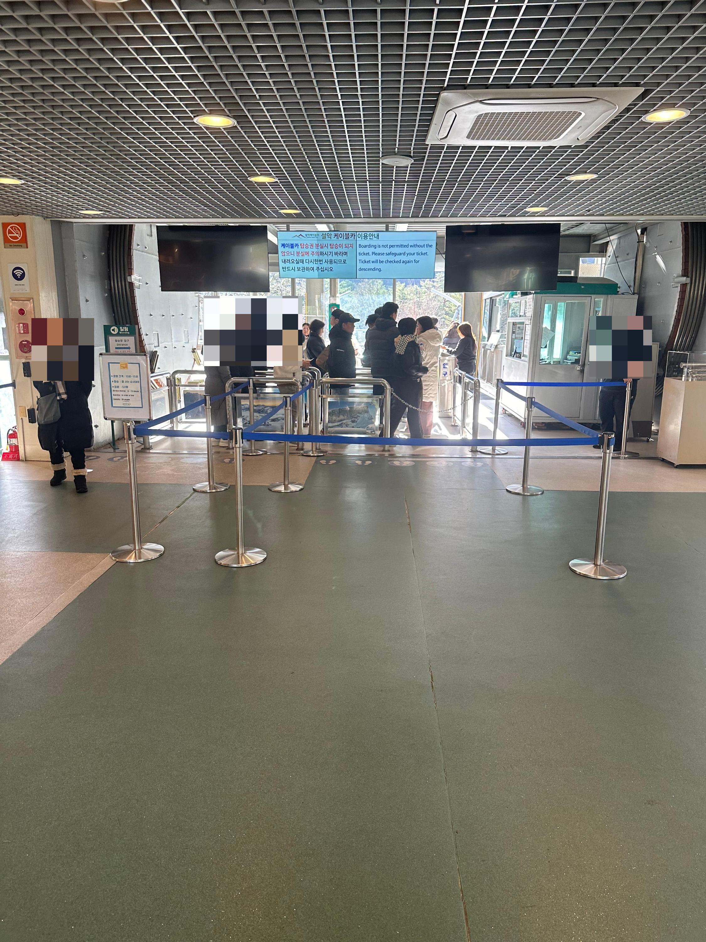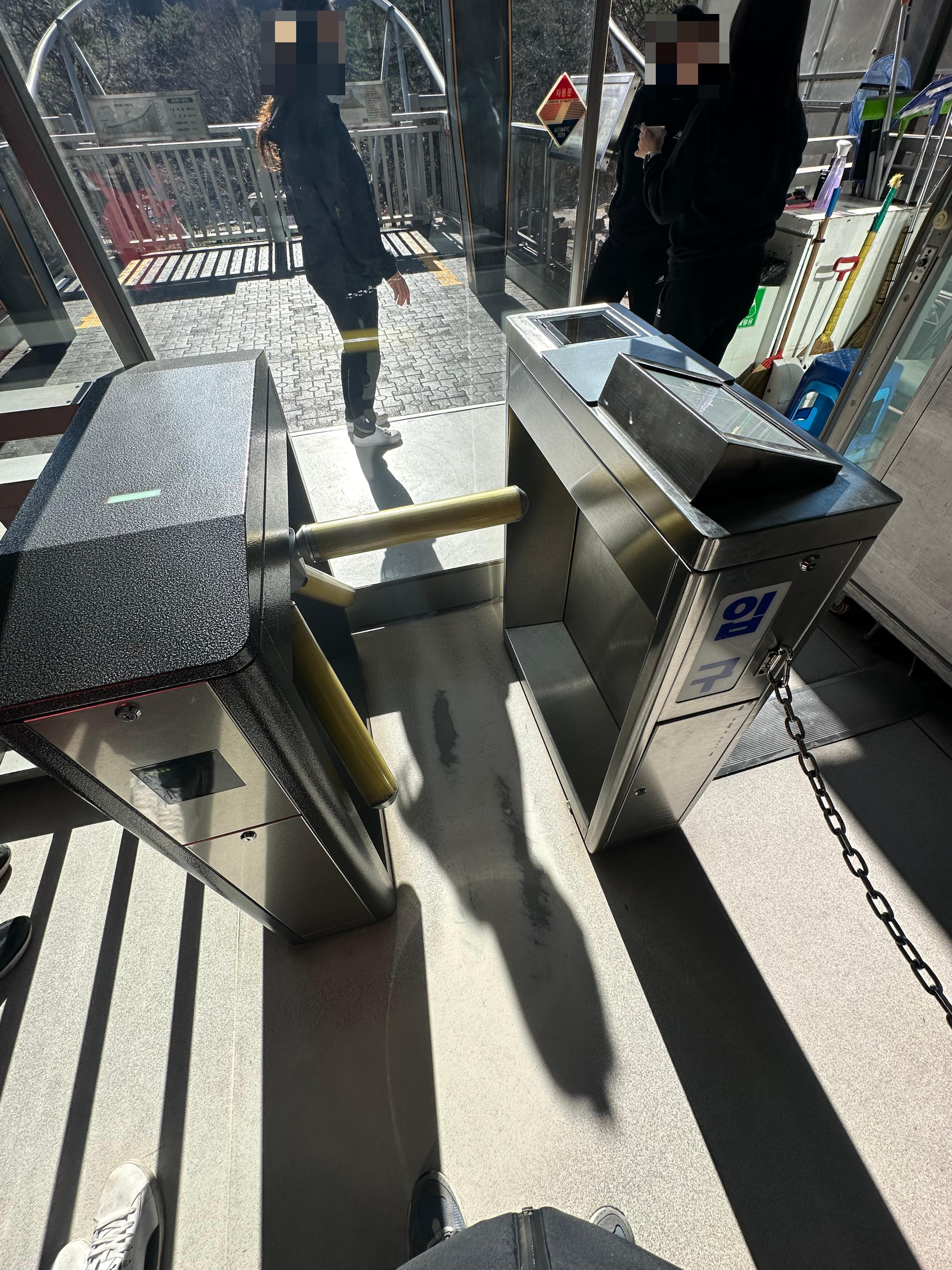 설악케이블카는 이렇게 지하철 개찰구 같이 생긴 곳을 통과해서 탑승을 시작 할 수 있습니다. 줄이 길지는 않지만 운이 좋게도 제가 맨 앞에서 끊겼는데요.