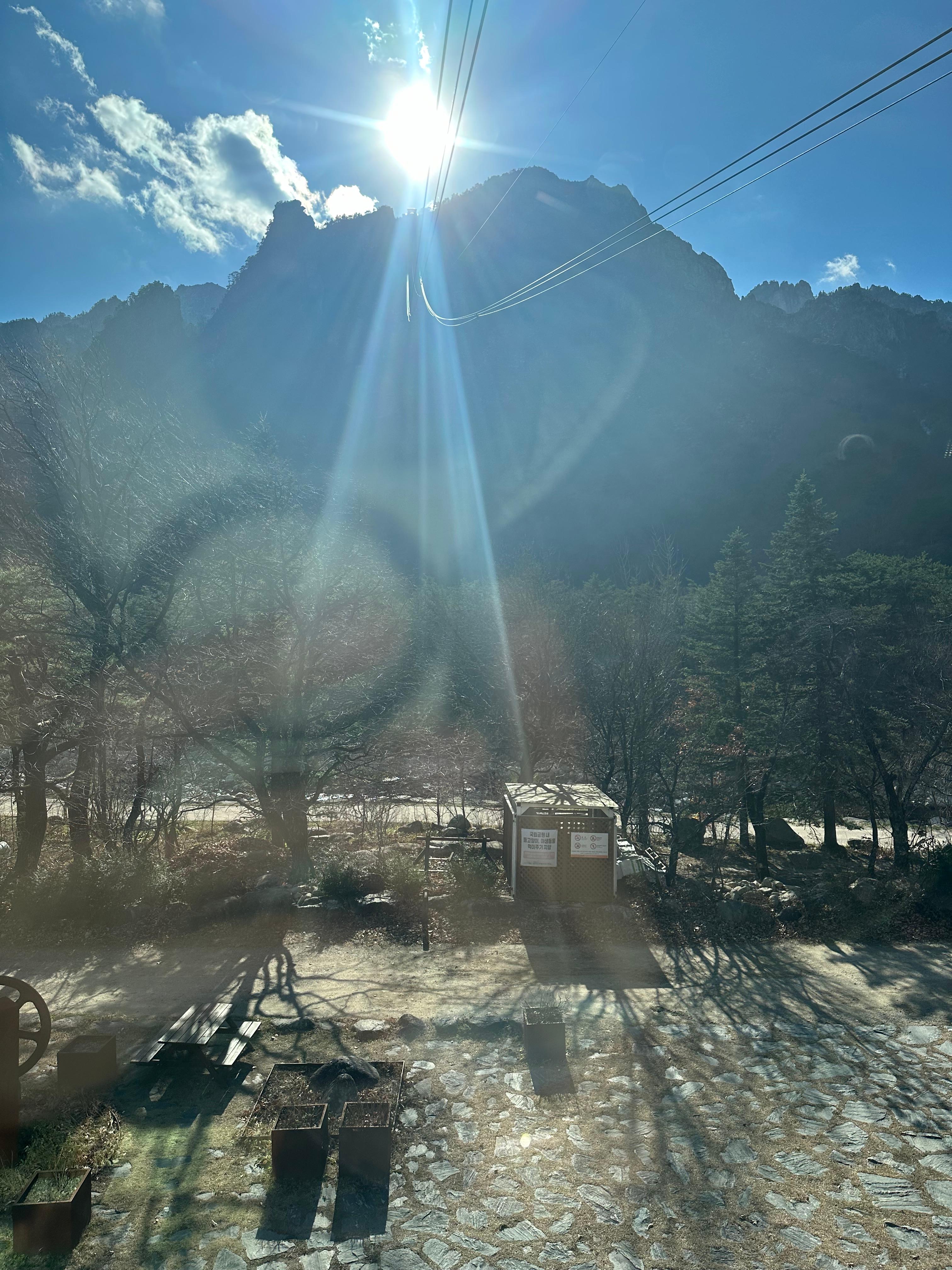 11월 30일 2일차에 시작된 설악산 여행이었는데요. 11월의 마지막인데요 설악산에는 아직까지 노랗게 물든 낙엽의 모습을 볼 수 있었습니다. 원래 이때 설악산은 낙엽은 다 떨어지고 추운 설악산의 모습을 볼 수 있어야 하는데요. 정말 지난 2024년은 너무 덥고 가을도 정말 길게 지나갔습니다. 어떻게 보면 가을이 길게 지나갔다고 해도 볼 수 있습니다.
