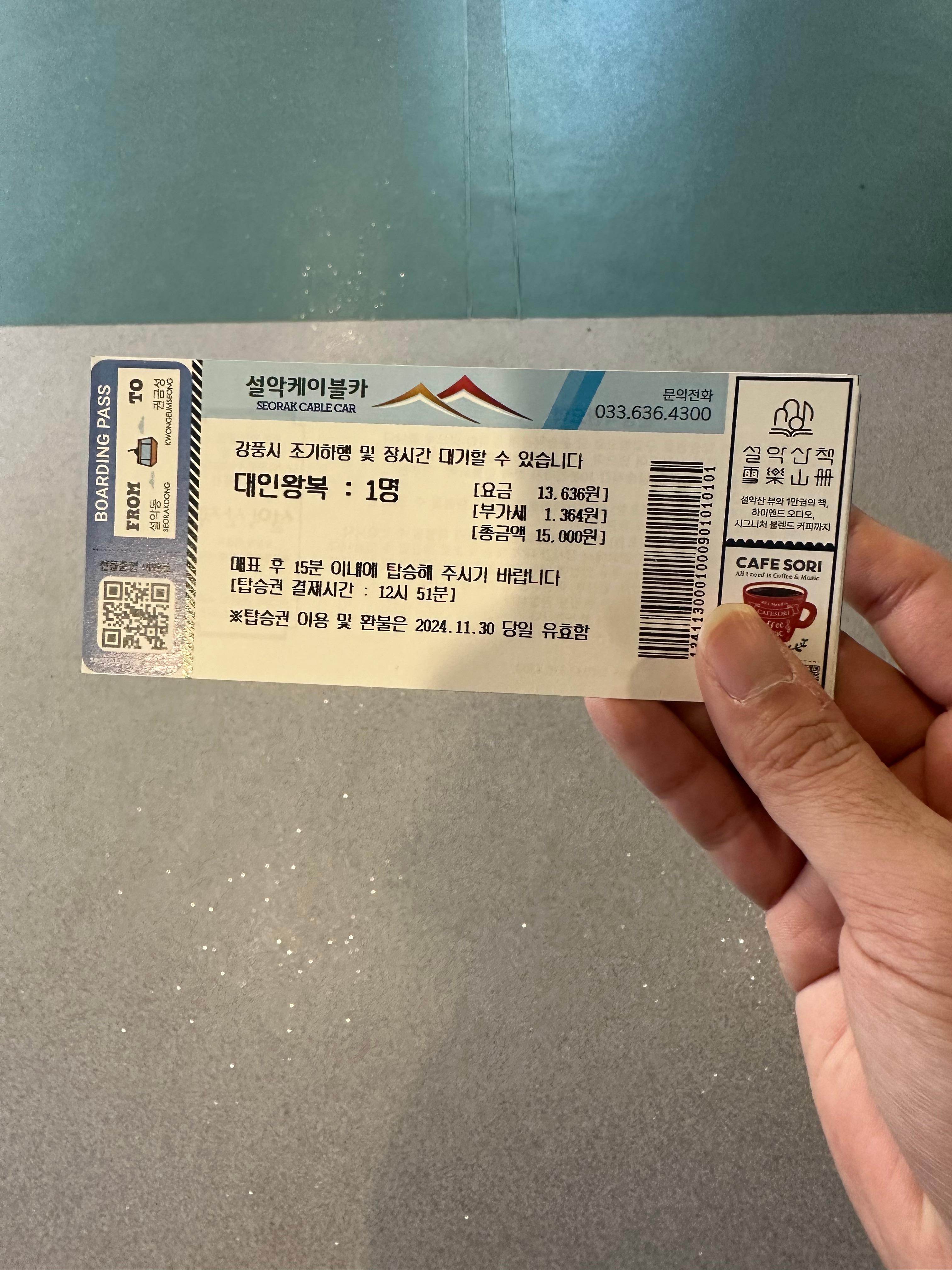실제로 매표를 할 때도 직원분들이 이부분에 대해서 안내를 하고 있었습니다. 강풍이 심하게 불 경우 케이블카를 타고 조기 하행하라는 안내방송이 나올것이니 잘 듣고 내려오라는 말을 들었습니다. 설악케이블카는 대인 왕복 기준으로 15000원에 해당합니다. 거리는 짧지만 국내에서 가장 높은 해발 700m를 케이블카를 타고 5분에서 10분만에 올라갈 수 있으니 이정도 금액은 아깝지 않을것 같습니다.