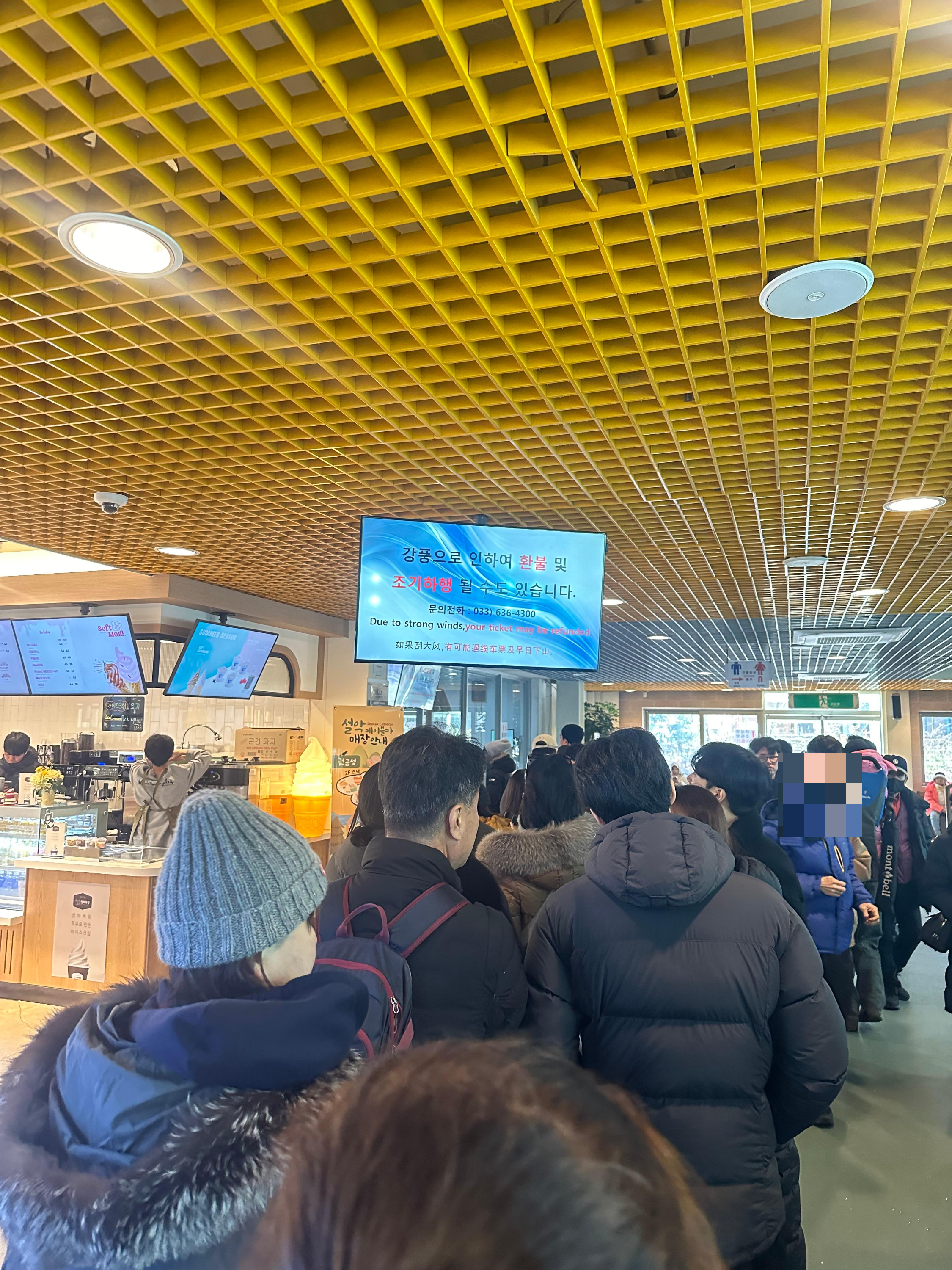 매표소 건물 안으로 들어왔을 때 강풍 때문에 조기 하행 될 수 있다는 문구를 보았을 때 못타는거 아닌가 가야 하나 싶었는데요. 안내 문구가 그렇지 실제로는 매표가 계속 진행되고 있었습니다. 매표한 티켓에는 QR코드와 바코드가 함께 있었습니다.