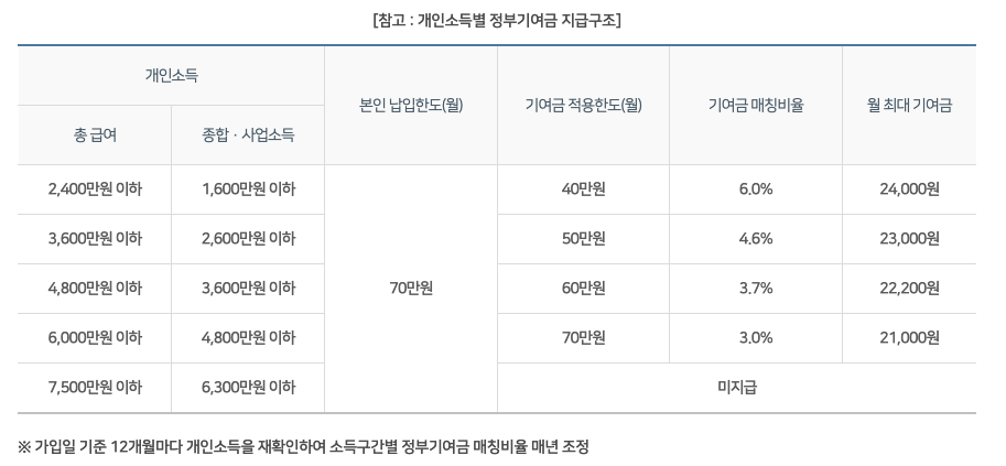 1) 납입한 금액에 비례해 소득구간별 정부기여금 지원