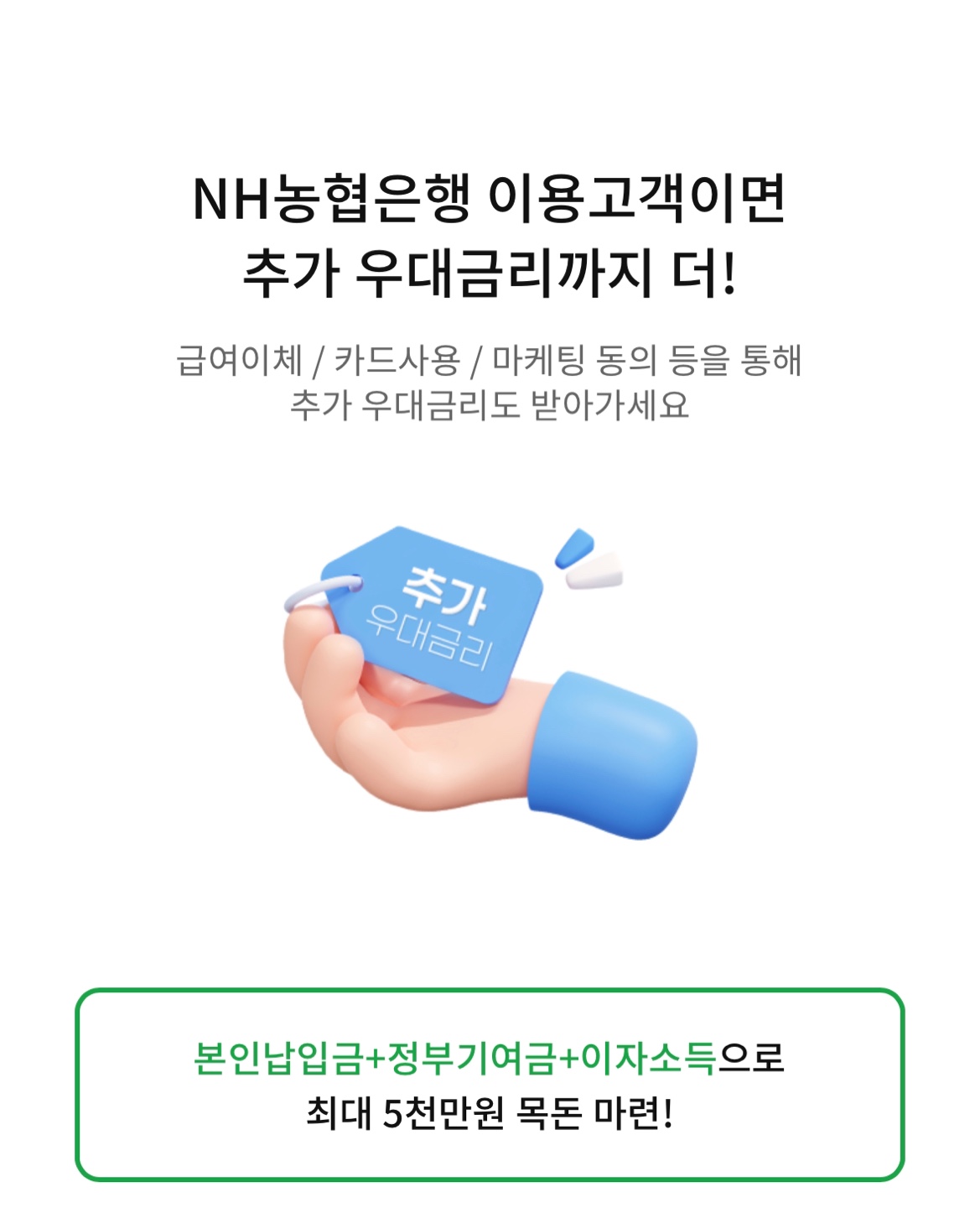 ※ 가입 대상에 대한 자세한 사항은 NH 농협은행 앱에서 상품 특약을 참고해주세요.