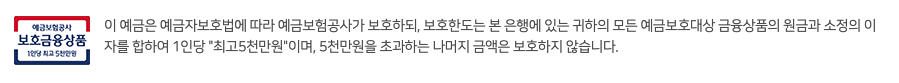 해당 상품은 예금자 보호법에 따라 보험 받는 상품이에요 최대 5,000만원까지는 보장 받을 수 있다고 합니다. 이 부분을 고려해서 가입 시 가입금액을 설정하시면 좋을 것 같습니다.
