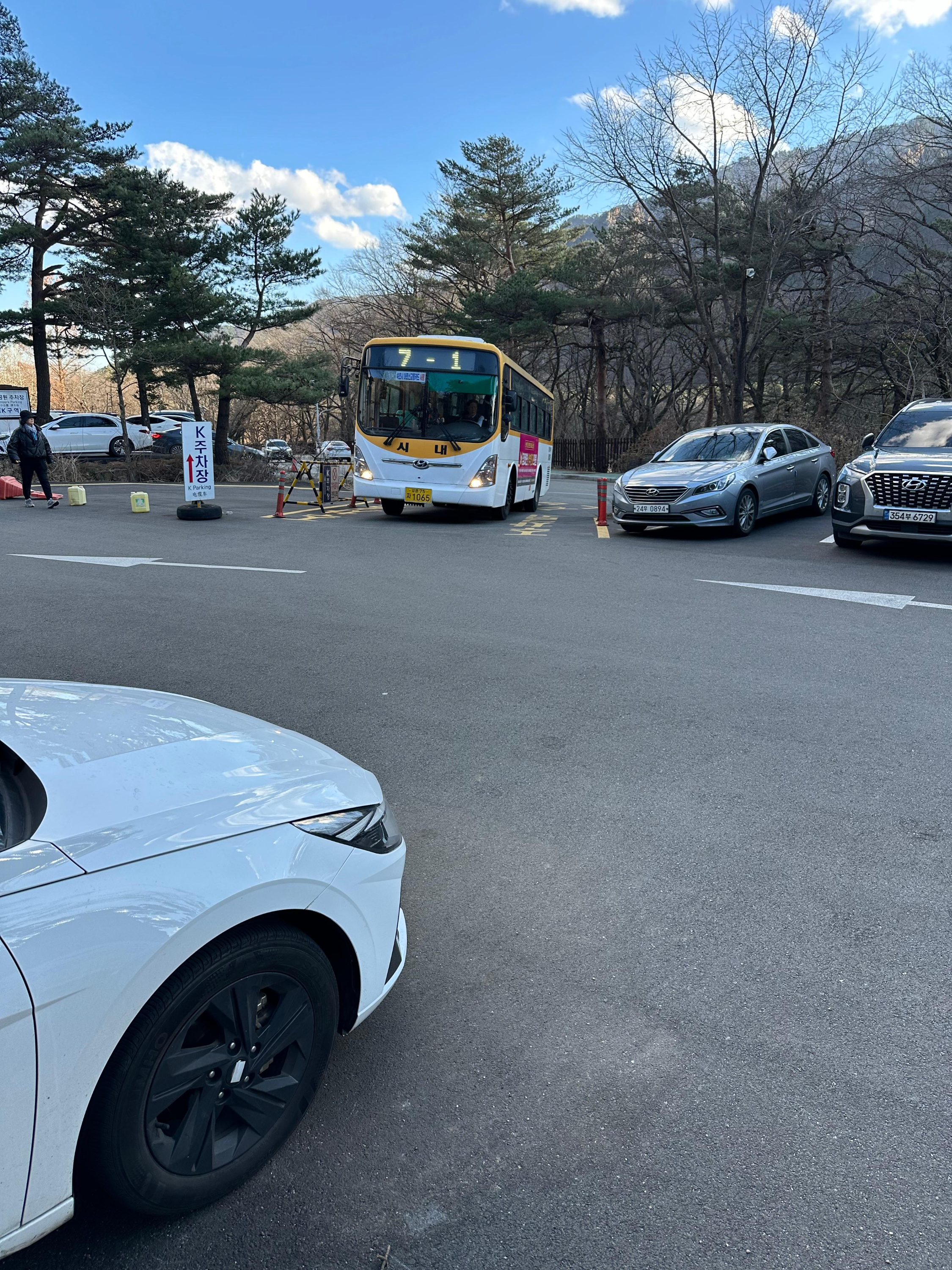 눈이 쌓인 만큼이나 날씨도 좋고 파란 하늘 위에 구름까지 정말 멋졌는데요. 설악산 신흥사에서 설악산 뚜벅이 여행을 마치고 속초 유명음식 양미리와 도루묵을 먹기 위해 버스 시간에 맞춰서 설악산 소공원까지 왔던 길을 걸어서 버스타러 이동했습니다.