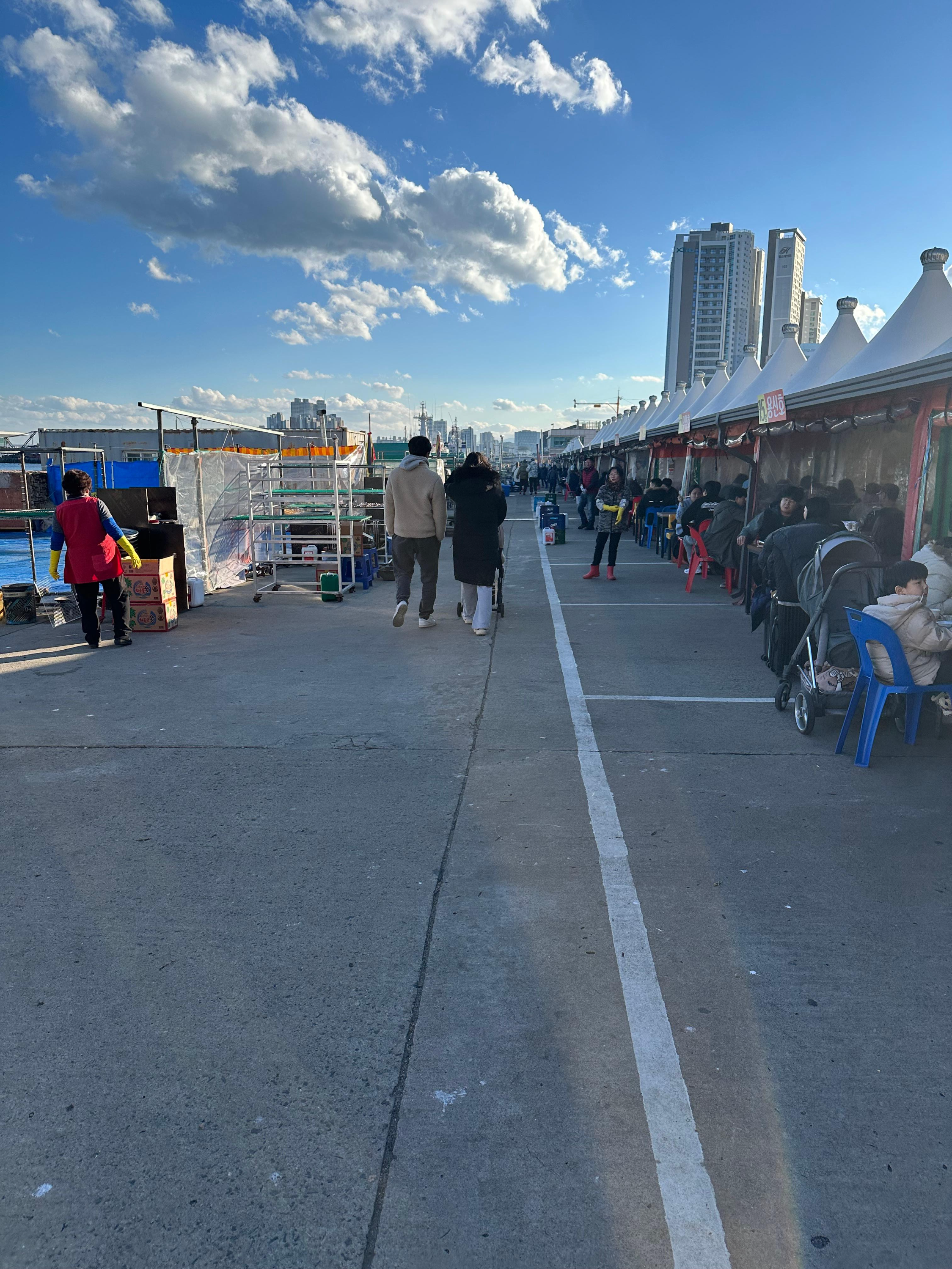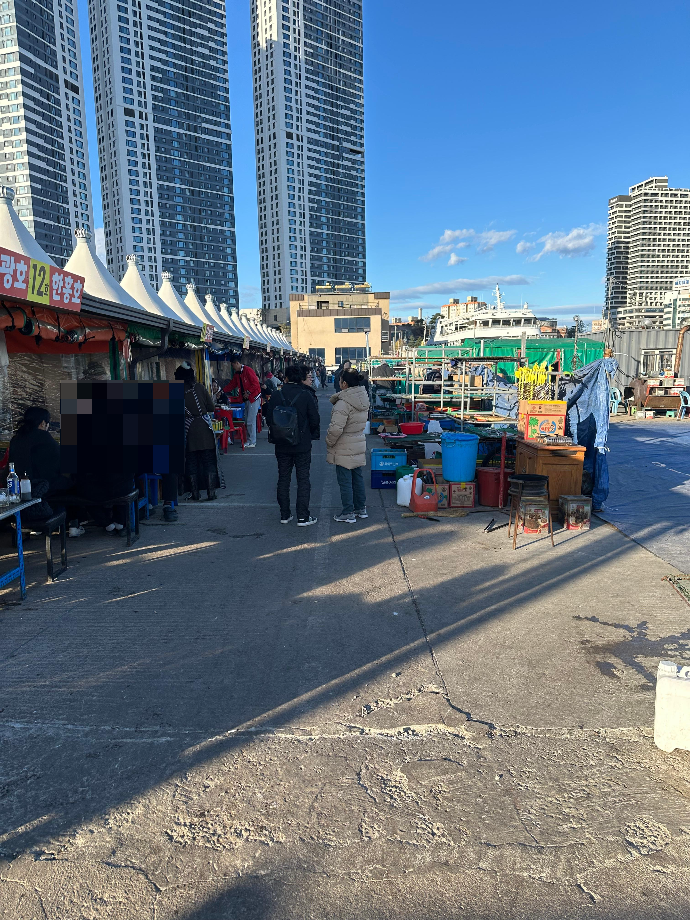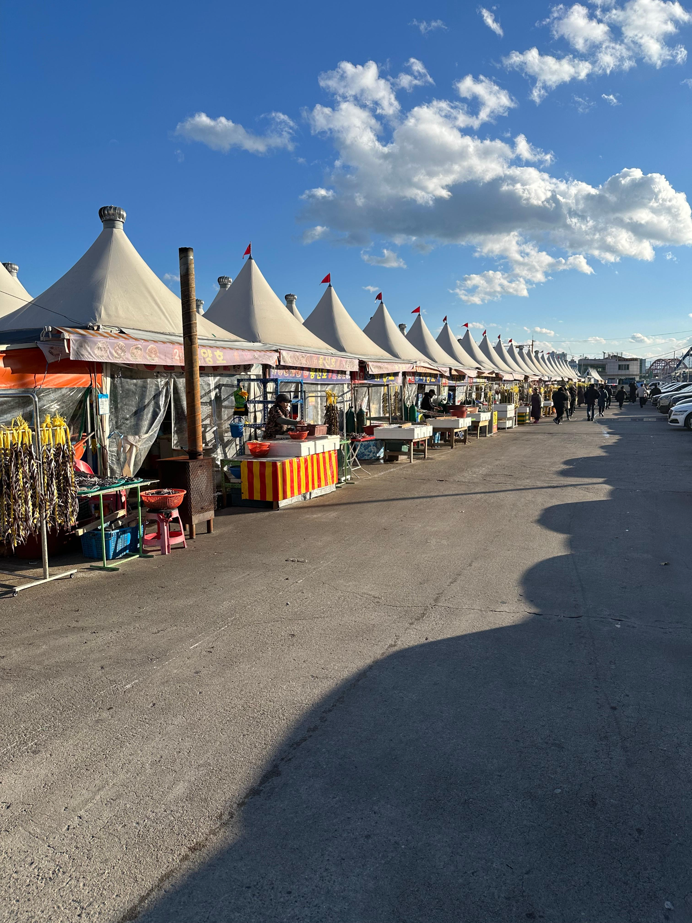 설악산에서 7-1번을 타고 저는 수복탑 정류장 하차 후 동명항 방향으로 이동했습니다. 동명항은 속초 시외버스터미널과도 매우 가까운데요. 시외버스터미널에서 조금만 걸어내려가면 동명항여객터미널과 함께 양미리 축제 현장을 볼 수 있습니다. 11월과 12월이 아니면 양미리 가게는 모두 열지 않으니 참고바랍니다.