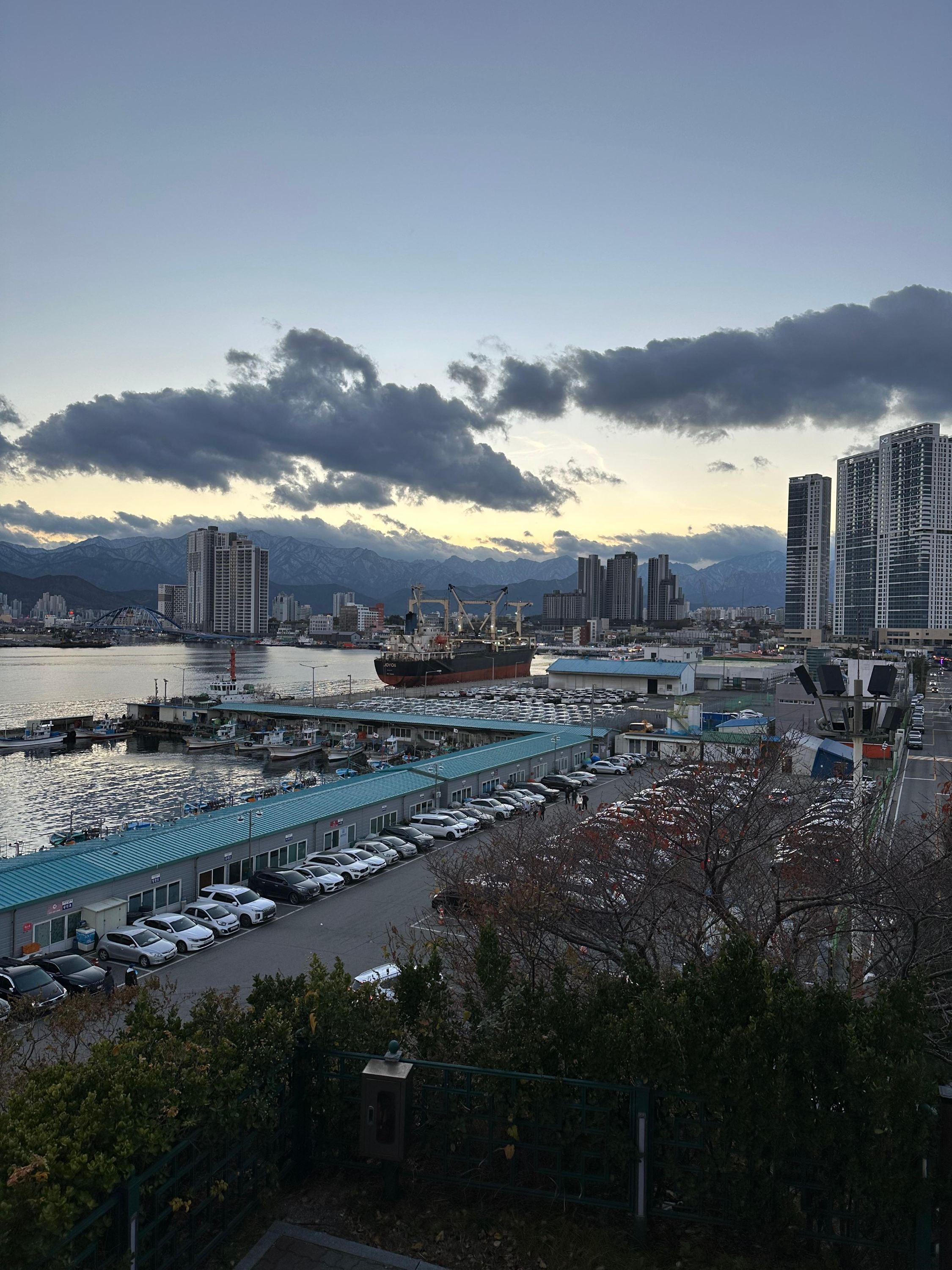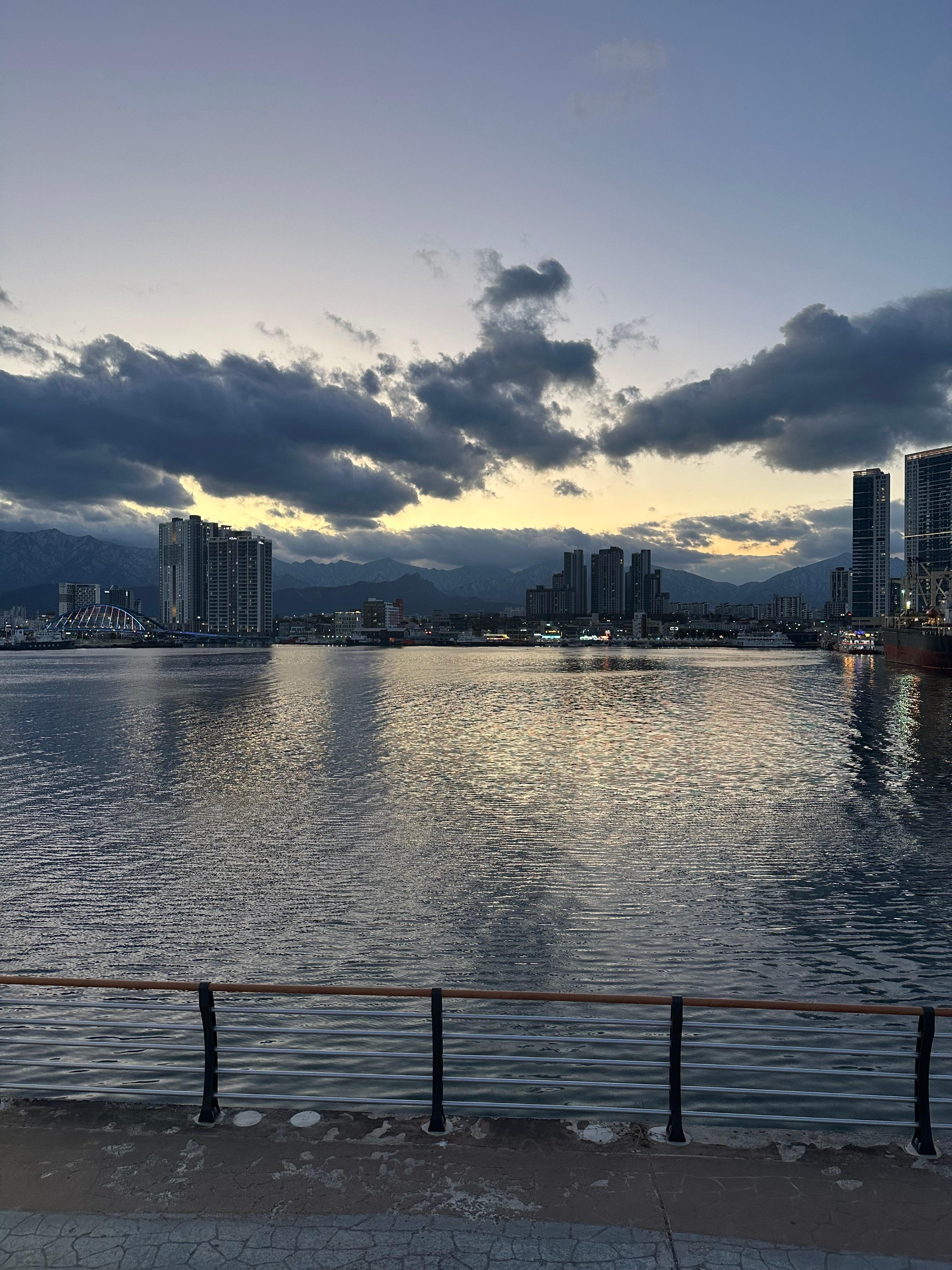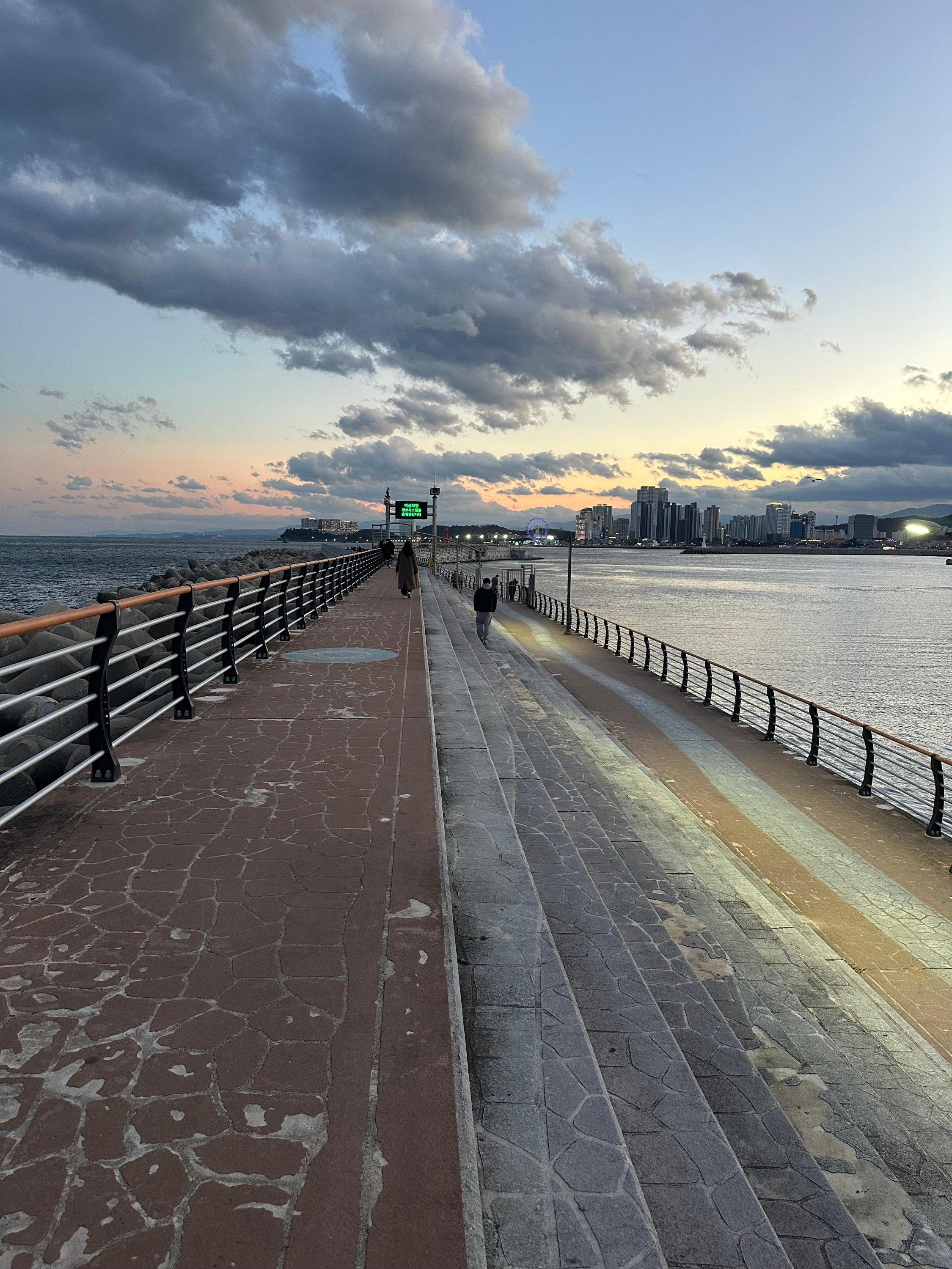 영금정 해돋지 정자와 정자 전망대에서는 아름다운 동해바다와 함께 속초 풍경을 보았다면 동명항 방파제에서는 평지 위에서 동해바다와 설악산을 배경으로 하는 속초 시내의 모습 그리고 조금 멀리 떨어진 영금정은 는 또 다른 관점이었는데요. 그렇게 동명항에서 5시 30분 가까이 시간을 보내다보니까 어둠이 찾아왔습니다. 저녁 시간도 다 되어가고 숙소로 향하기전에 속초 관광수산시장에 가기 위해 발걸음을 옮기기 시작했습니다.