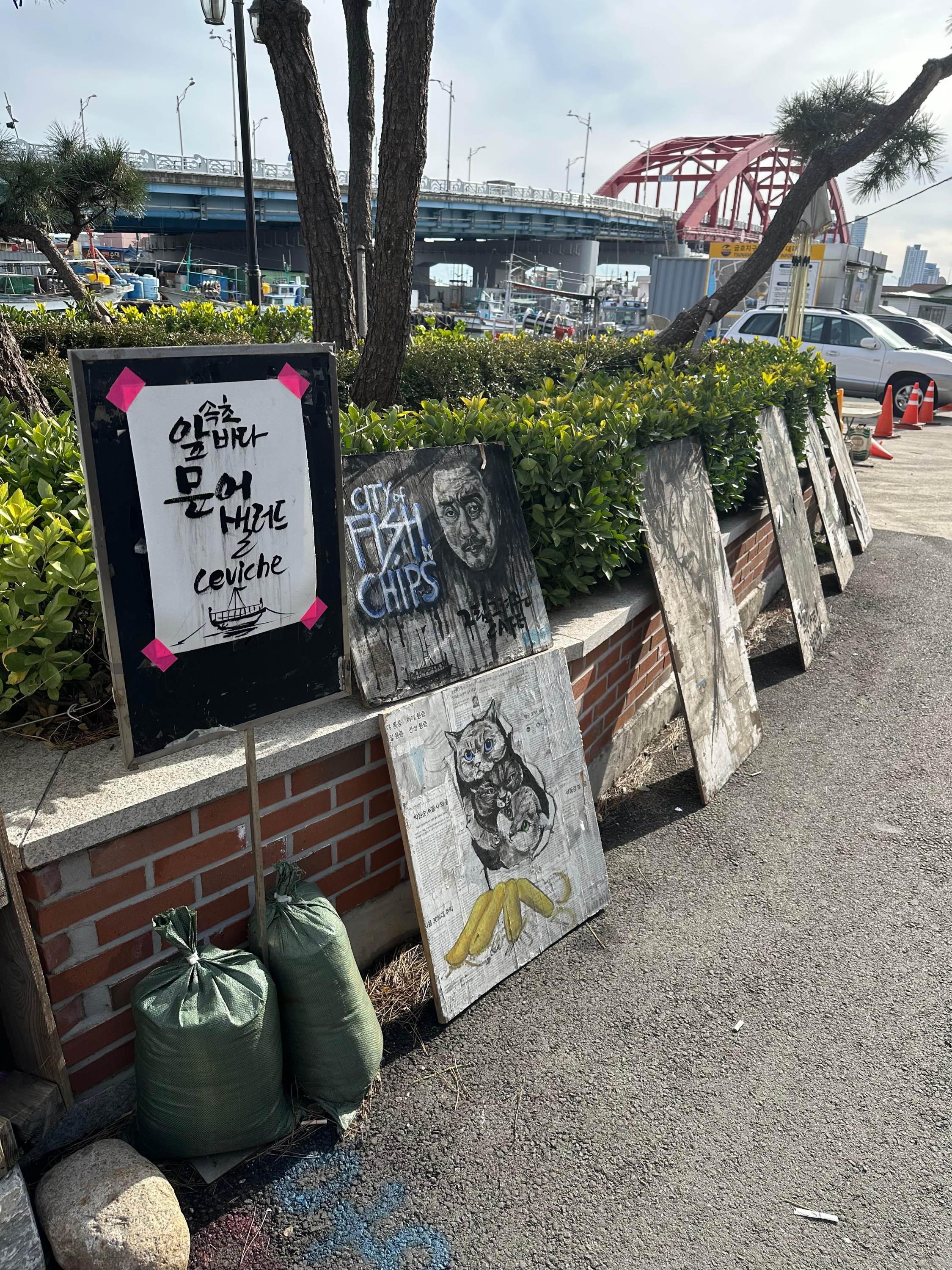 속초 여행의 3일차이다보니 속초 로데오거리 갯배 선착장에서는 오래는 있지 못했습니다. 갯배 선착장 건너편의 아바이마을과 갯배의 움직임 그리고 설악대교와 금강대교 위를 보며 시간을 보냈습니다. 갯배 선착장 옆쪽에는 주차장과 화장실이 있고 재미있는 캐리커쳐 전시도 있었는데요. 못생긴 사람은 무료라면서 도전장을 내밀어보라고 재미있는 문구도 볼 수 있었습니다. 12시 조금 넘은 점심시간이라 캐리커쳐 그려주는 사람은 보이지 않았습니다. 그렇게 갯배선착장에서 아바이마을과 푸른 속초 하늘과 바다를 보며 시간을 보내다가 저는 3일차의 마지막 코스인 척산온천을 가기 위해 발걸음 옮겼습니다.