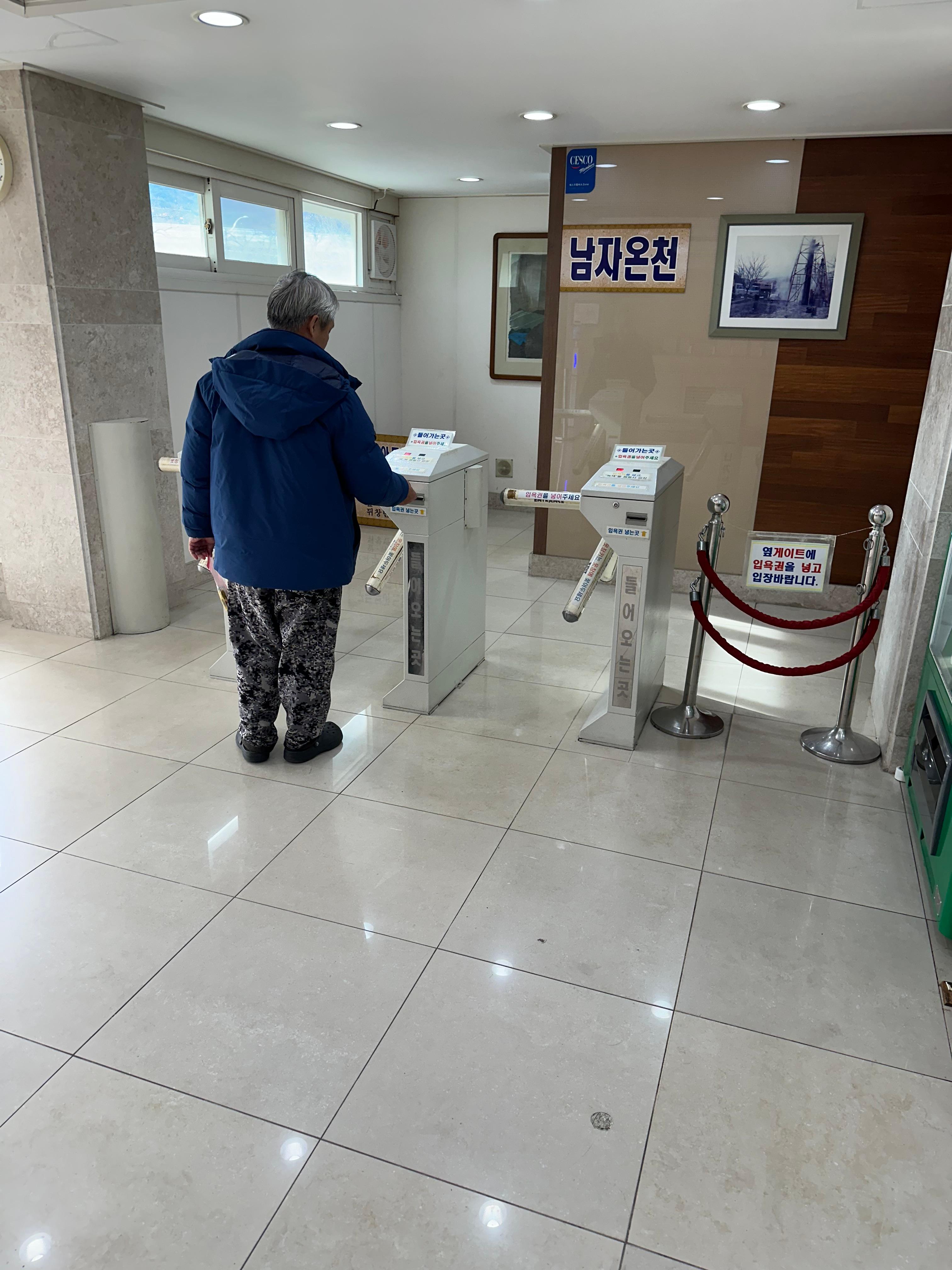 척산온천 사우나는 남자와 여자로 구분되어있었습니다. 햇갈리는 부분이 있는데요. 척산온천은 들어올때부터 온천이라는 이름을 갖고있어서 사실 모두 온천이라고 느낄 수 있었습니다. 하지만 1층은 사우나입니다. 1층에도 온천이라고 붙어있어서 생각없이 척산온천장을 이용하면 온천 이용했다고 느낄 수있는데요. 특히 우리나라는 일본처럼 지진이 많이발생하지 않고 지진으로 인한 온천관광은 없어서 일본을 직접 가지 않았다면 제대로된 온천 여행은 하기에는 부족합니다. 아무튼 1층은 온천입니다. 남자와 여자온천으로 구분되어있구요. 지하철 개찰구 처럼 생긴 곳에 구매한 입욕권을 넣으면 입장 할 수 있습니다.