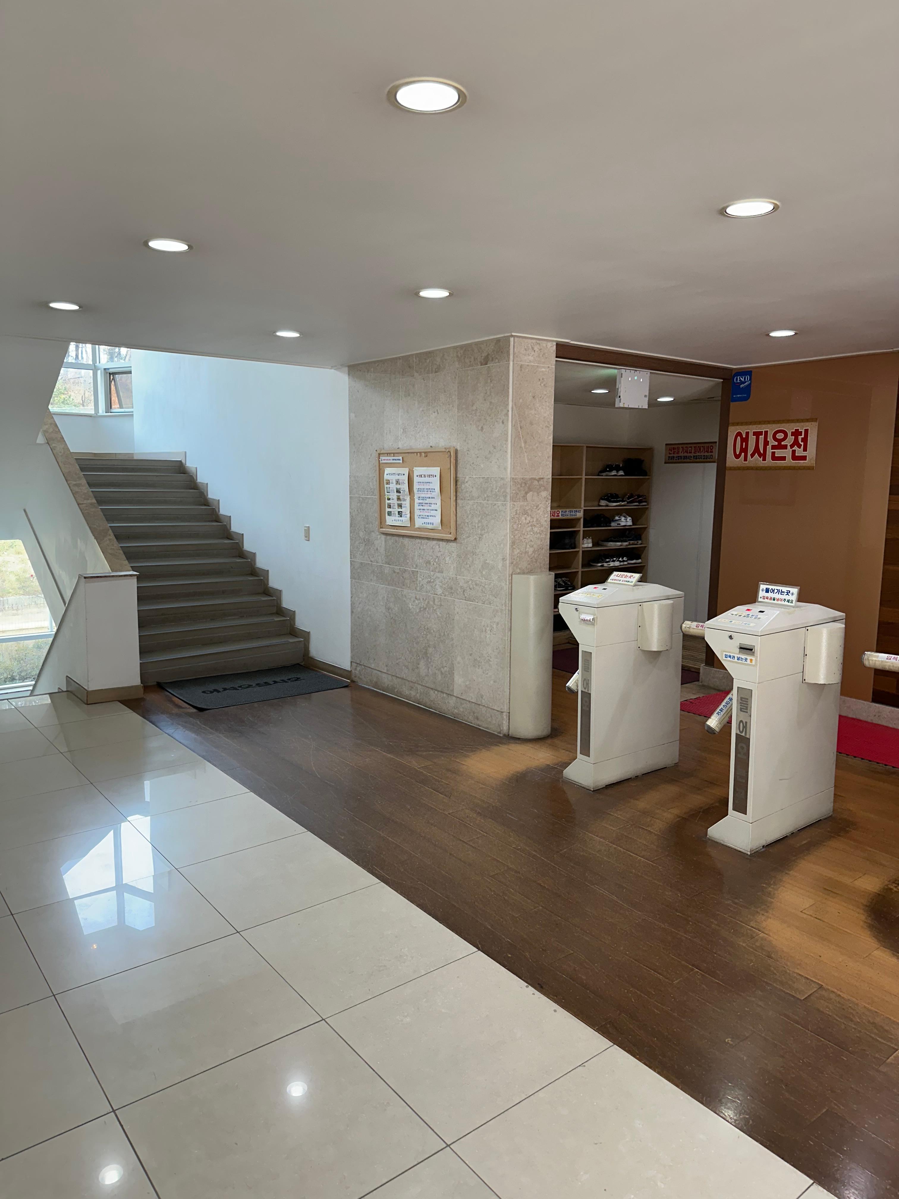 척산온천장 안으로 들어갔습니다. 1층이 사우나 공간이고 2층부터가 객실과 온천이 있는 곳입니다. 사실 우리나라는 이웃나라 일본처럼 지진이 많이 일어나지 않아서 온천이 많지 않은데요. 속초 뿐만 아니라 최근에 개통한 중부내륙선 앙성온천과 안산 4호선 신길온천 등 이름이 들어가는 기차역을 볼 수 있습니다. 물론 이웃나라 일본 온천 유튜브 처럼은 아니지만 그래도 국내에서는 온천을 즐길 수 있는곳이 지역 곳곳에 존재합니다. 2019년과 2022년 그리고 2024년에도 척산온천 사우나만 이용했지만 향후 속초에 다시 온다면 그때는 척산온천 휴양촌이나 척산온천장에서 숙박도 해볼까 생각중입니다.