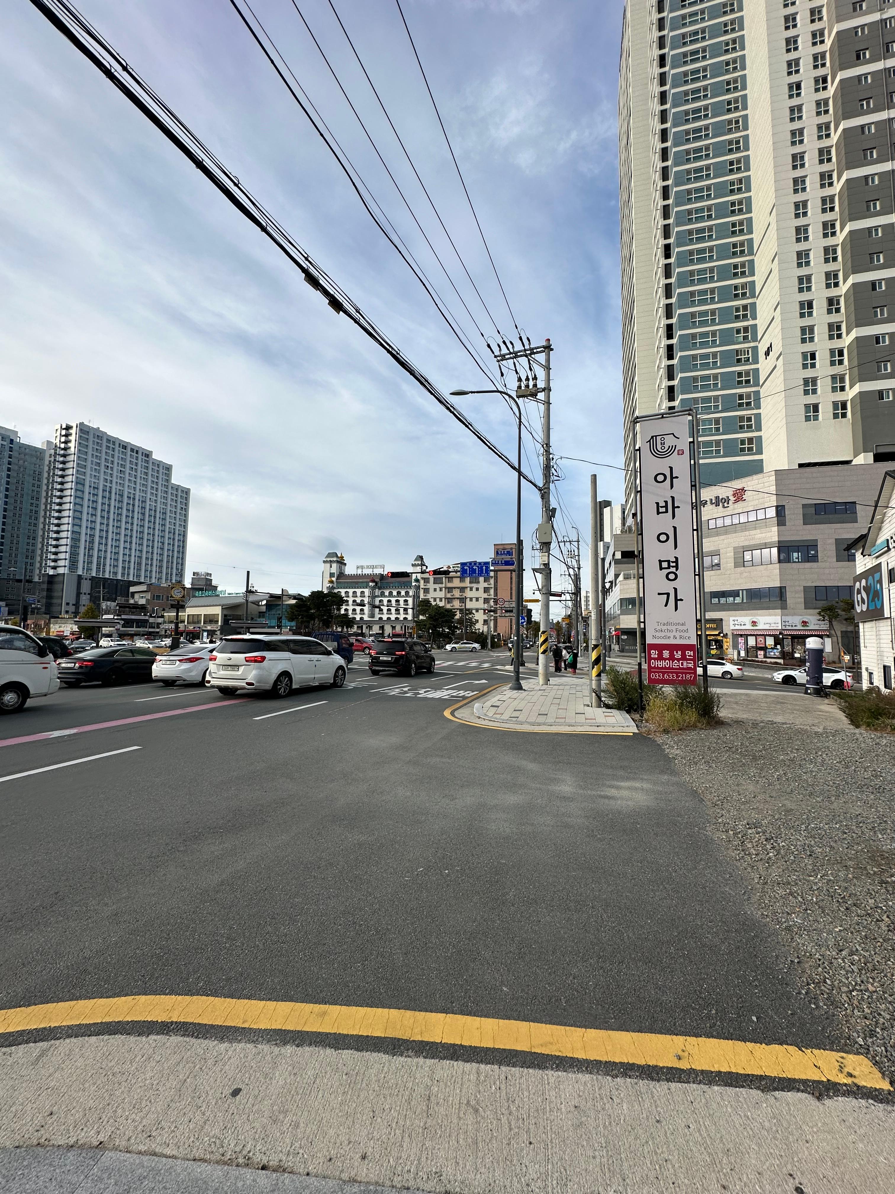 속초에서의 마지막은 척산온천장에서의 설악산의 기운과 푸른빛 특수온천수를 통해 속초에서의 짧고 긴 2박3일 여행과 일상의 피로가 확 풀리게 되었는데요. 올해 속초여행은 속초의 밤바다를 보았는데요. 낮 풍경의 모습은 사실 마지막에서나 조금 보여드렸던 것같습니다. 속초 그리고 동해바다의 푸른 바다 따라 저는 아바이명가로 늦은 점심을 먹으러 뚜벅뚜벅 걷기 시작했습니다.