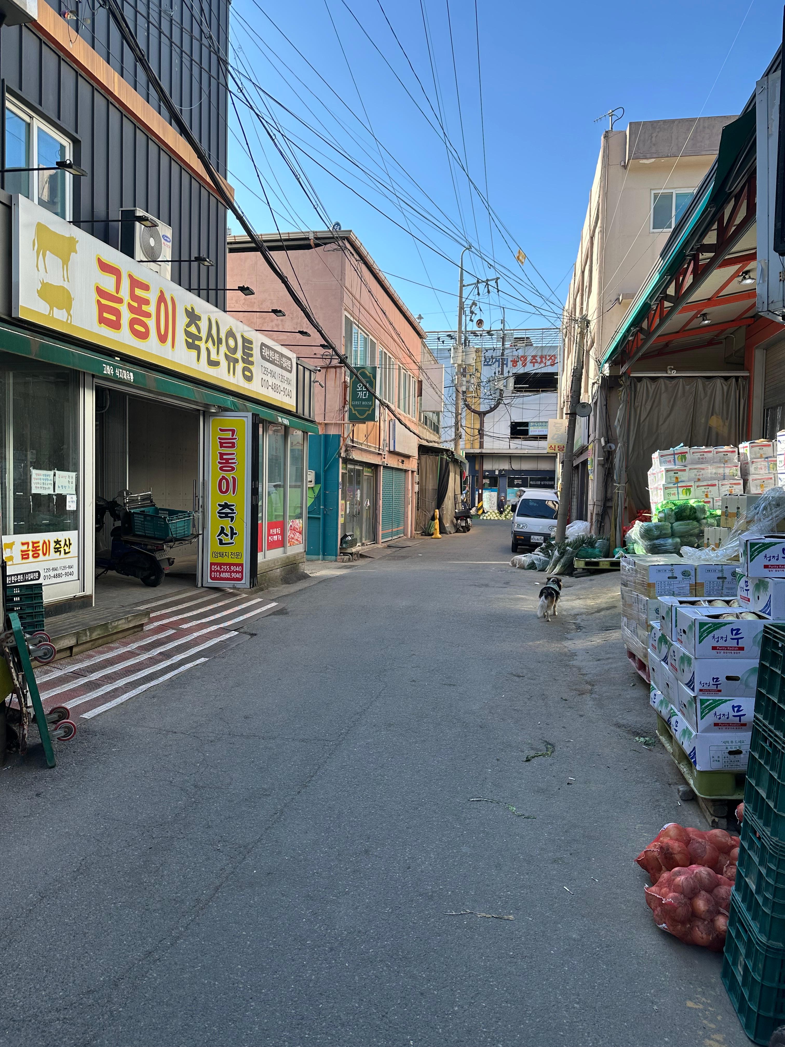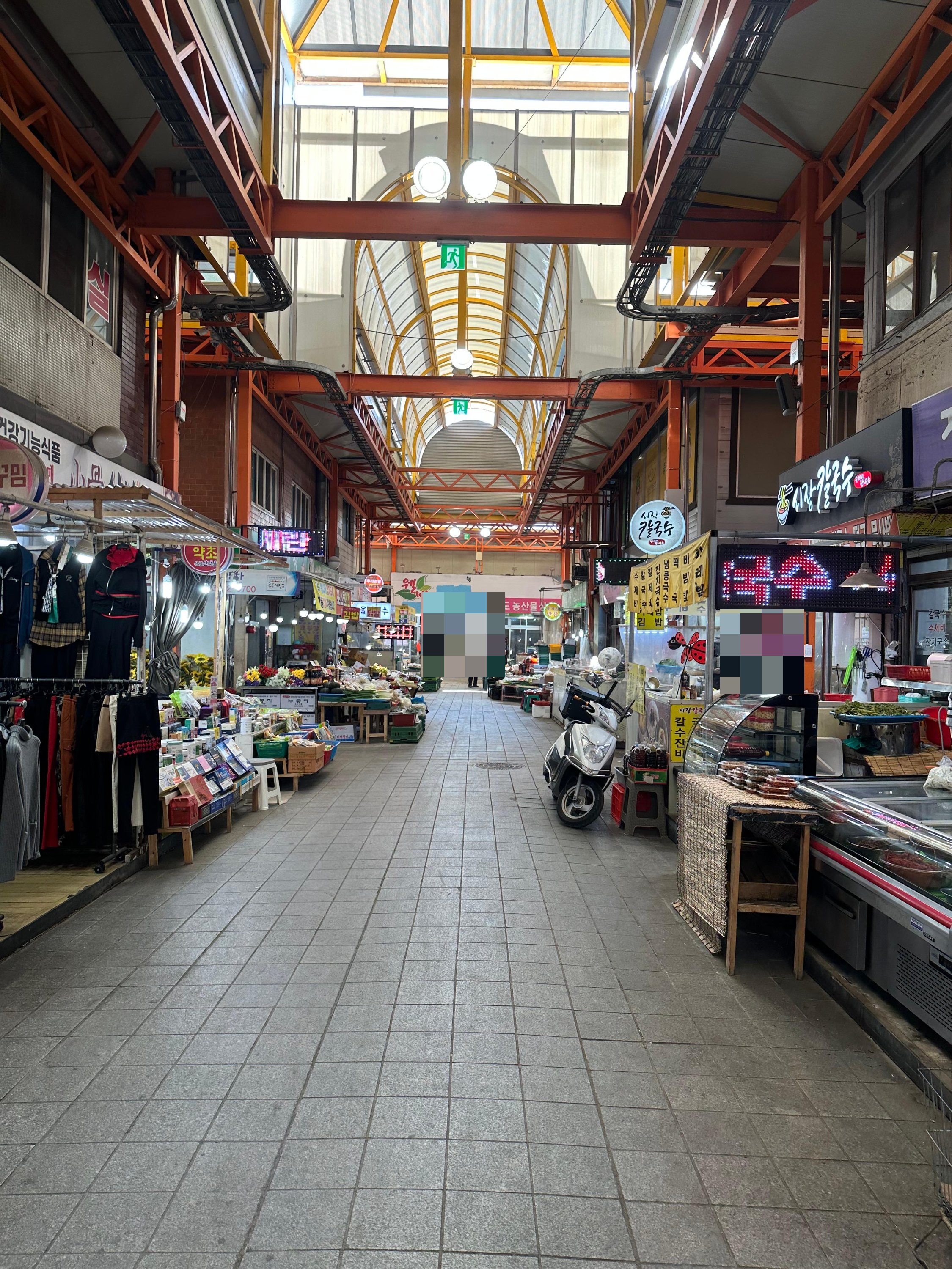 오다가다 게스트하우스에서 나와서는 전날 죽도시장으로 들어가던 입구 반대편으로 갔었는데요. 그렇게 걷다보니 전날에 걸었던 시장 골목길이 나오게 되었습니다.