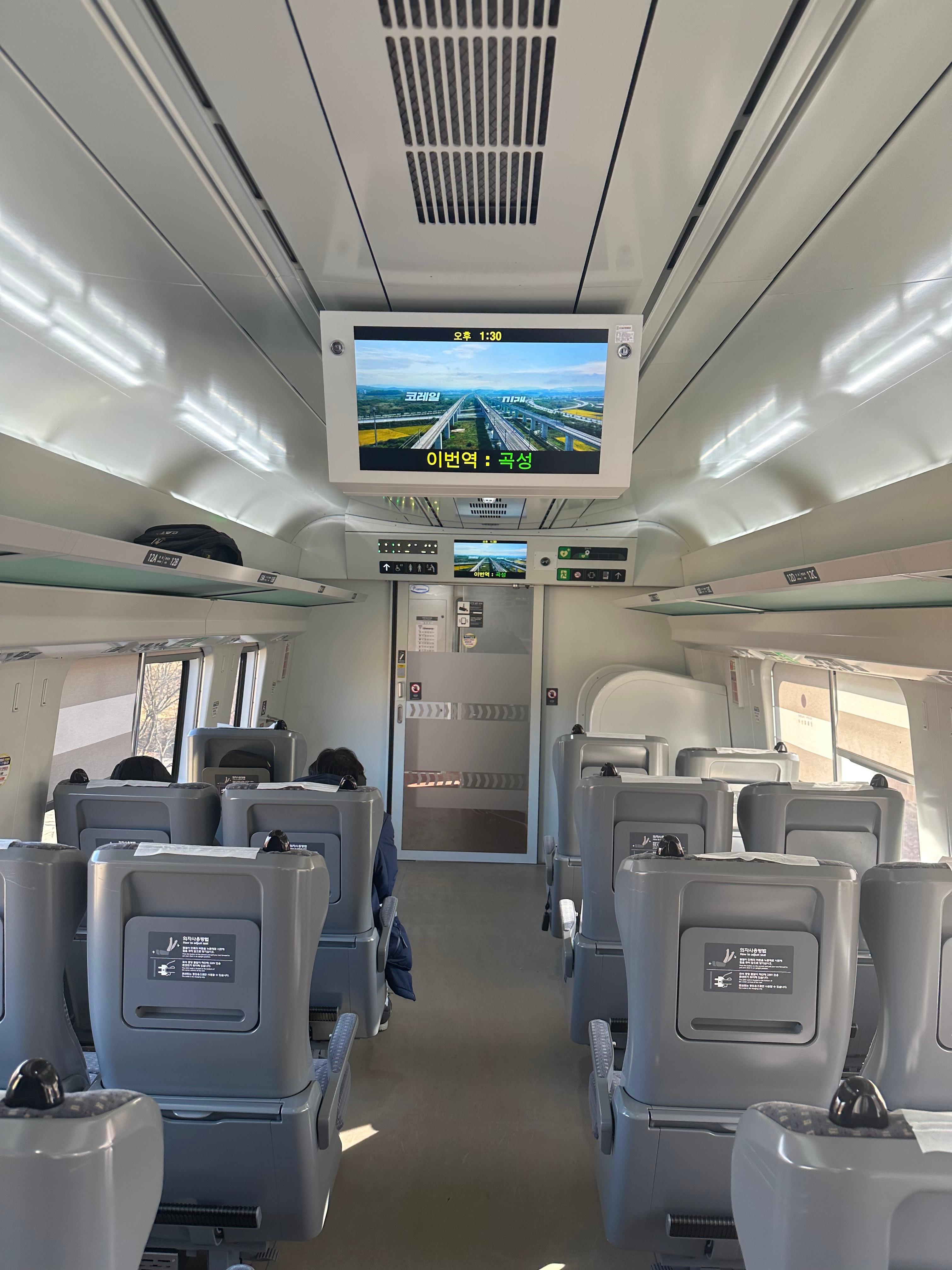 3시간 15분이라는 길고 긴 시간 끝에 곡성역 도착이 이제 눈앞에 보이는 것 같습니다. 열차 내부에 모니터에도 곡성역의 안내를 알리며 도착을 안내고 하고 있었습니다. 비록 증기기관차를 타지못해서 한달만에 다시 찾은 곡성인데요. 당시 11월말에만 하더라도 그렇게 춥지 않았는데 한달만에 곡성역에 도착하니까 겨울이라는 실감나는 느낌이었습니다.