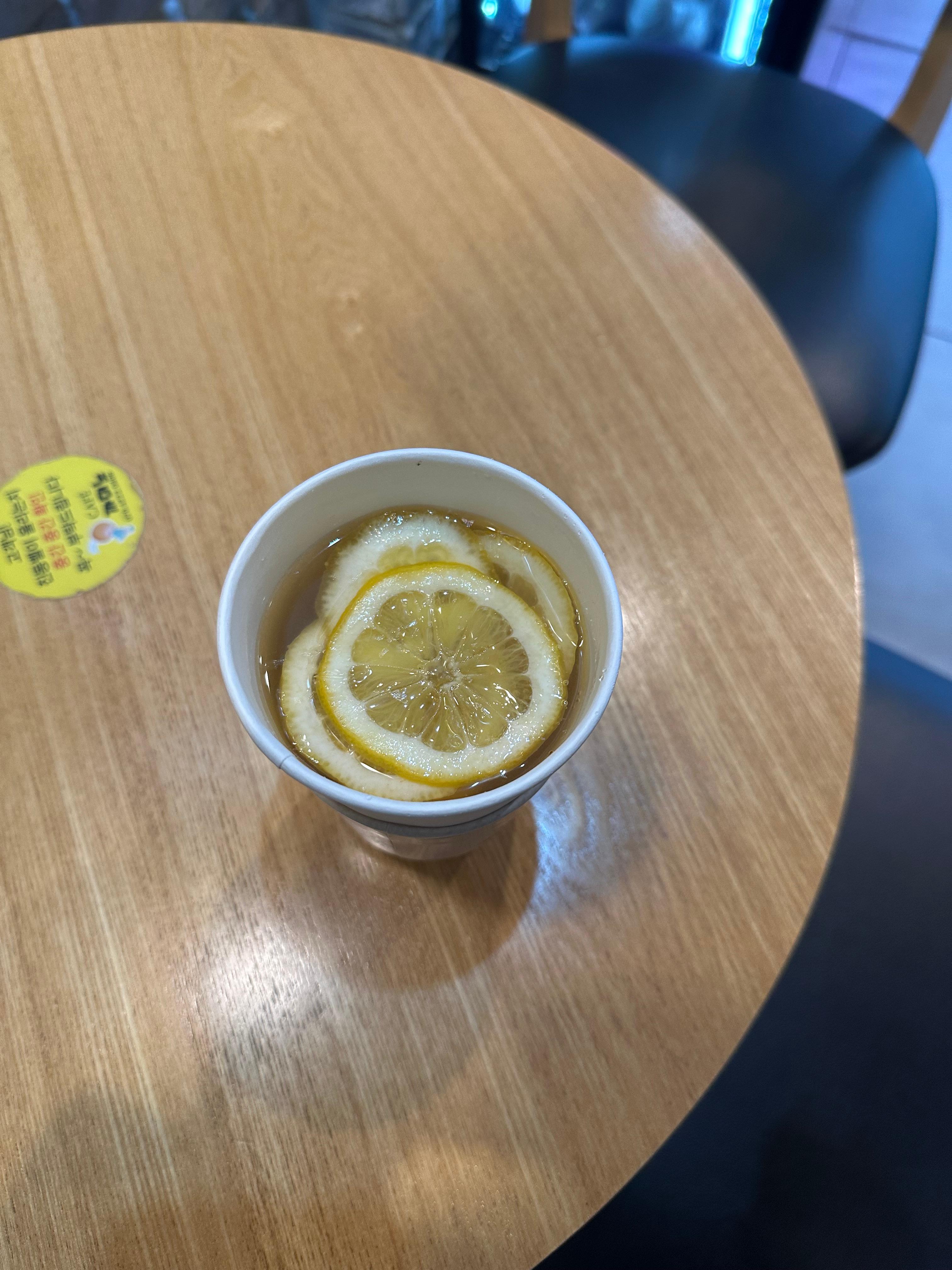 지난 곡성여행처럼 저는 안산역 뒤 스마트허브 유통상가 사이에 있는 카페 까미노에 들렀습니다. 그리고 커피보다는 건강음료인 레몬생강차를 사장님께 추천받아서 주문했습니다. 평소 아이스를 즐겨 마시는데요. 이때 추워서 따뜻한 차종류를 마시고 싶었습니다. 뚜껑을 열어보니 레몬 가득히 담겨져서 레몬과 생강의 냄새가 진했습니다.