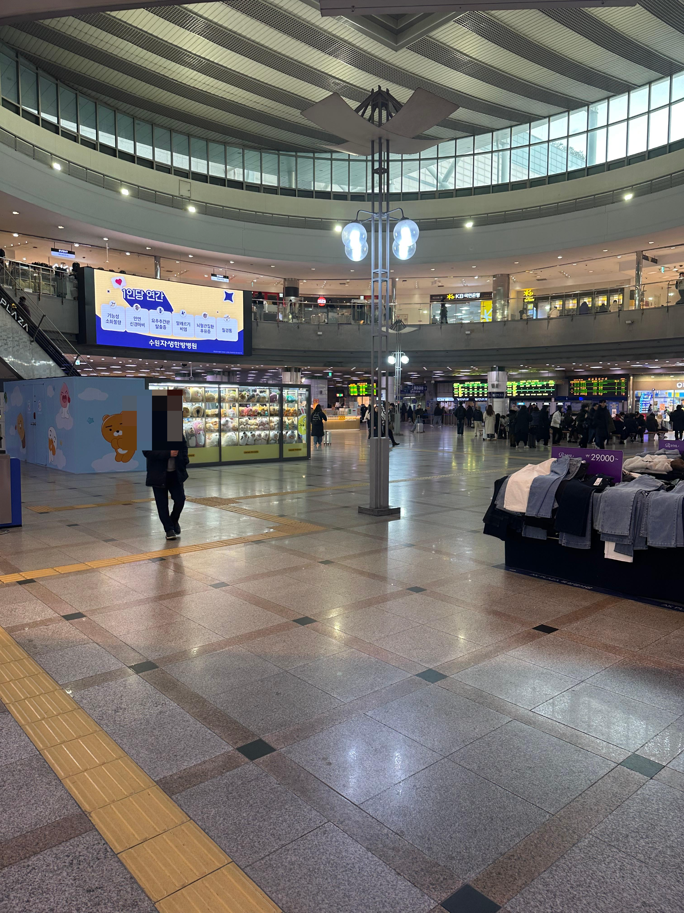 수원역 로데오거리에서 옛 추억들을 생각하다가 기차 시간에 맞춰서 대합실로 올라왔는데요. 바로 전에 전해드렸던 동대구에서 수원역 올라왔을 때는 너무 늦어서 카카오프렌즈가 불 꺼진채로 있었는데요. 오전이라 그런지 카카오 프렌즈도 그렇구 주변 상가들이 모두 영업을 하고 있었습니다. 원래 수원역 카카오프렌즈는 애경백화점을 들어가야 볼 수 있었는데 오히려 열차 타고 내릴 때 바로 보여서 더 좋아졌습니다. 용산역과 서울역만 보더라도 대합실에 있어서 편했는데 이제 수원역도 참 편해진것 같습니다.