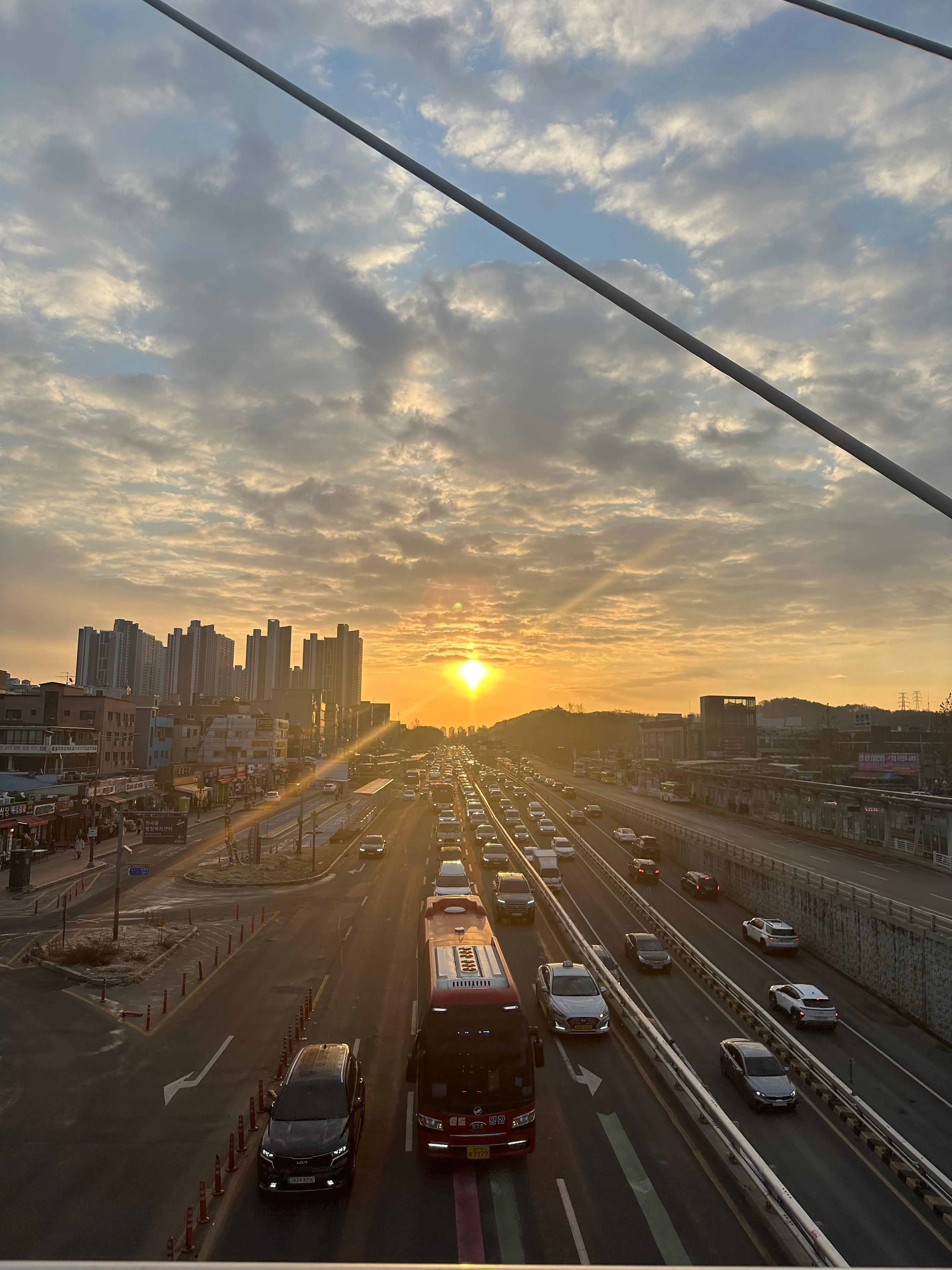 2024년 여행의 대부분은 반달섬에서 시작했는데요. 어쩌다 보니 곡성 여행만 두번 다녀오게 되었고 곡성 여행은 반달섬이 아닌 신길동 동네에서 시작했습니다. 신길동에서 안산역까지는 도보로 20분정도로 걸어서 특히 너무 더운 여름이 아니면 운동삼아서 걷기에 정말 좋았습니다. 해가 짧은 겨울이다보니 8시가 조금 넘었는데도 일출의 모습이 아직도 볼 수 있었습니다. 눈은 오지 않았지만 날씨가 너무 추워서 길위에 마치 눈이 온것처럼 길 위에 하얗게 쌓인 것을 볼 수 있습니다.