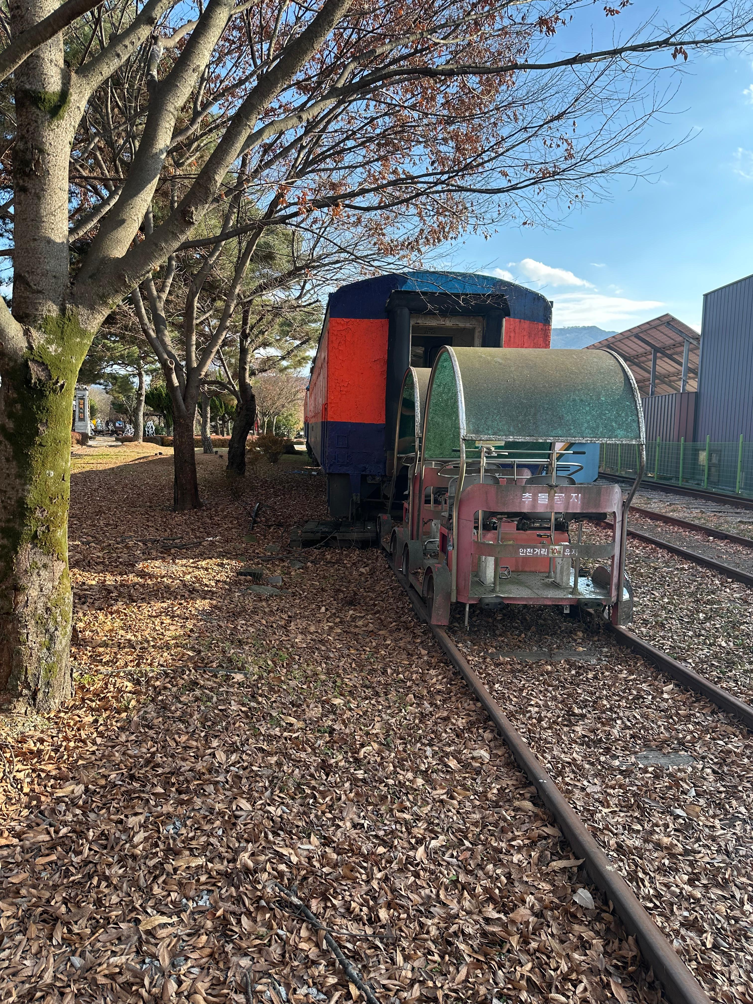 장이공원을 지나서 구 곡성역 증기기관차를 타러 걷고 있었습니다. 원래는 10월초중반 지나면 단풍들이 모두 떨어지게 되는데요. 작년에는 11월말인데도 곡성 기차마을에도 단풍 낙엽이 그대로 였습니다. 하지만 날씨가 추워지고 12월이 되니까 단풍 낙엽들이 모두 떨어진 모습을 볼 수 있습니다. 처음 내일로 기차여행을 왔을때 그리고 2022년만 하더라도 섬진강기차마을은 사진과 같이 차가 다니는 도로쪽으로 입장을 했었는데요. 올해 기차마을 왔을 때는 기차마을 매표소 건물이 지어진 것을 볼 수 있었습니다. 구 기차마을 입구 옆에는 지금은 볼 수 없는 새마을호 열차도 전시되어있습니다.