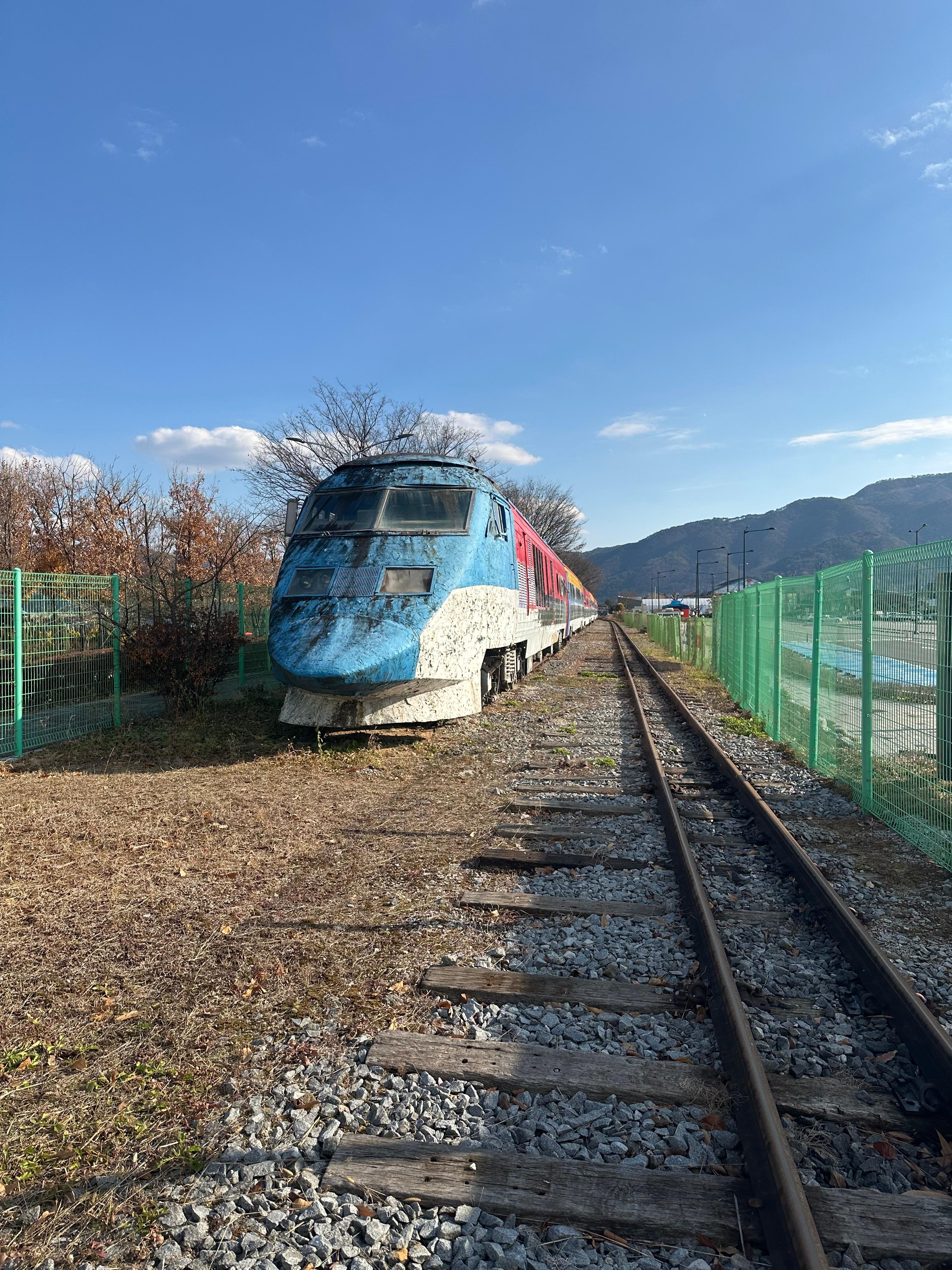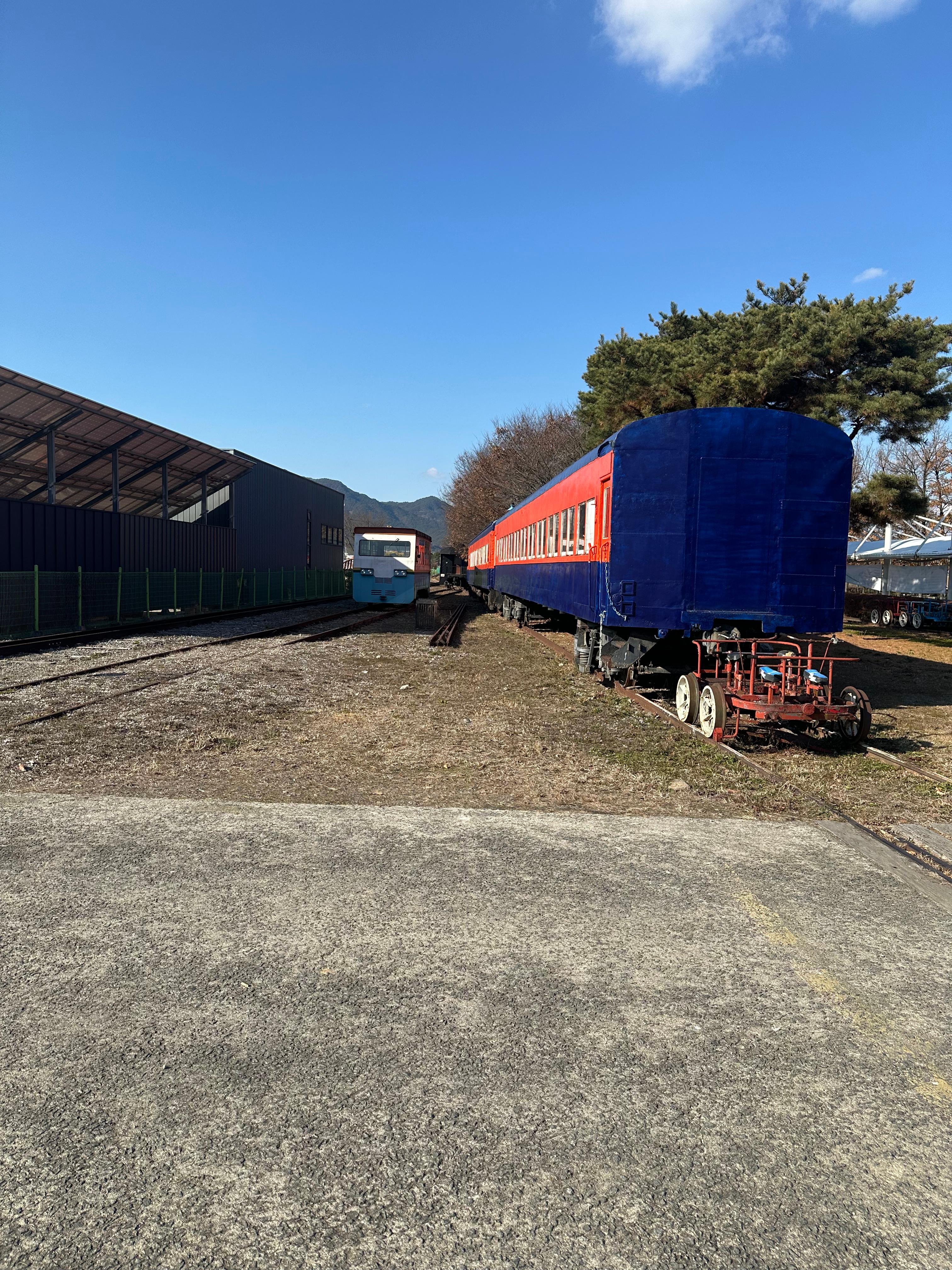 푸른 겨울 전라도 곡성 하늘 아래에서 구 새마을호 열차와 증기기관차 보며 섬진강 기차마을 조용한 시골마을 걷기 여행 후기 정리해드려요.