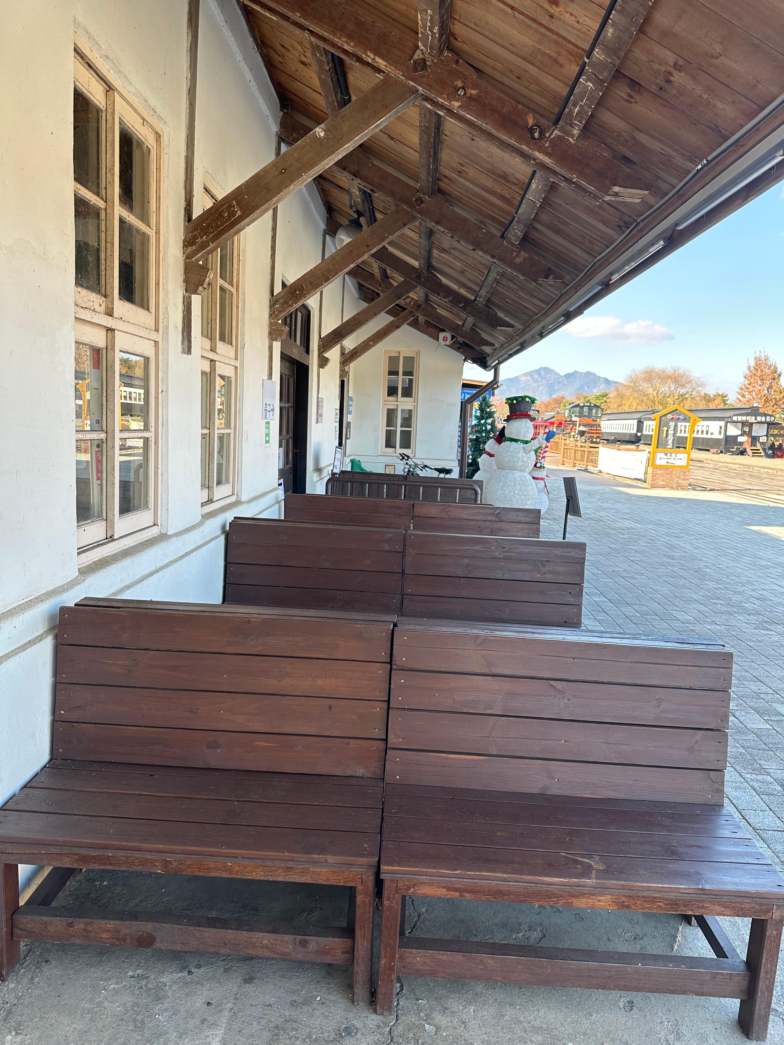특히 심심했는데 고양이 한마리가 만져도 도망가지 않아 심심하지 않았는데요. 이번에는 보이지 않았습니다. 구 곡성역은 과거 부산의 송정역과도 비슷한 크기로 작았는데요. 일제시대에 지어진 역사라 그런지 티비에서 보던 그 분위기 그대로였습니다. 구 곡성역 뒤에는 티비에서 보던 대합실 의자들을 볼 수 있었습니다.