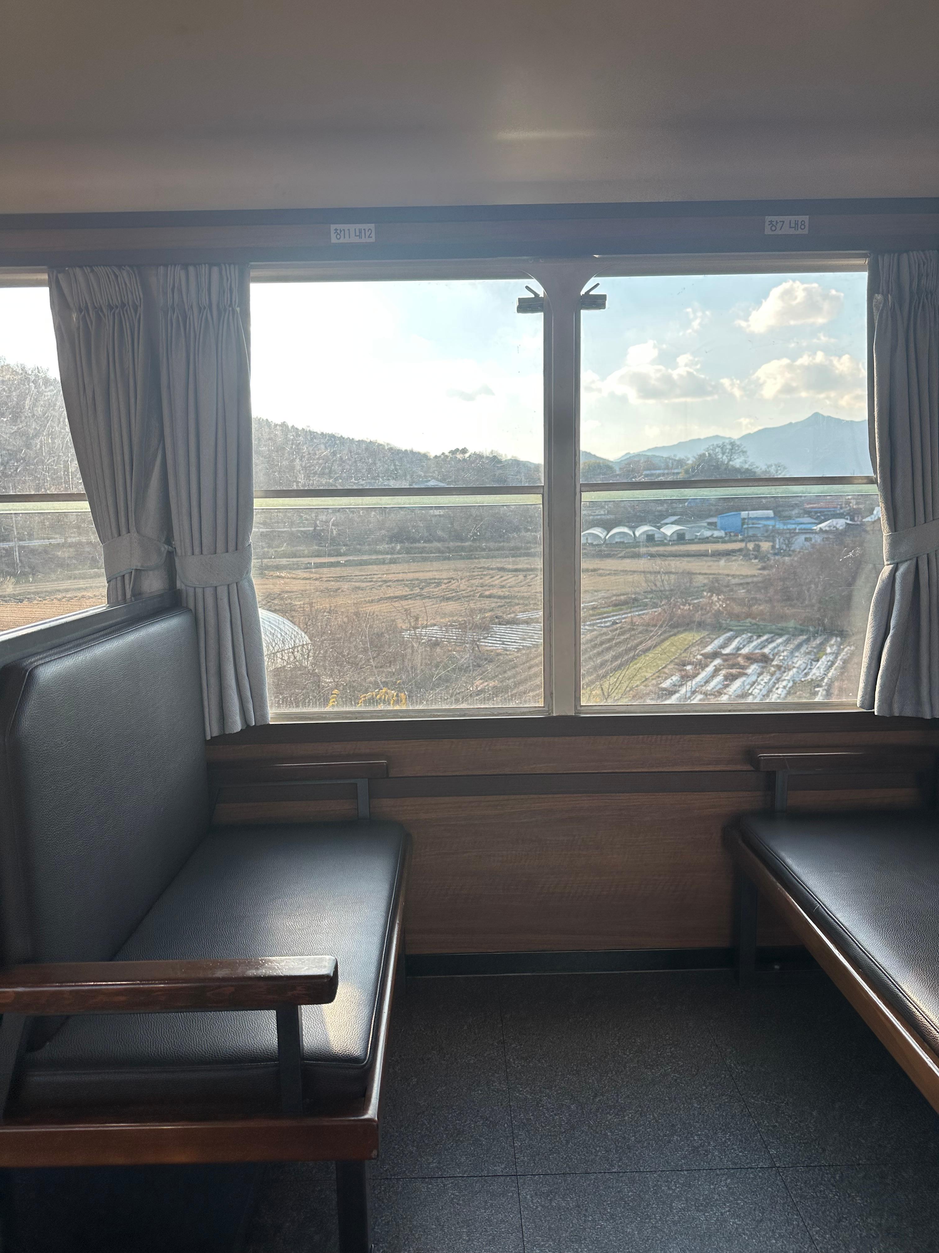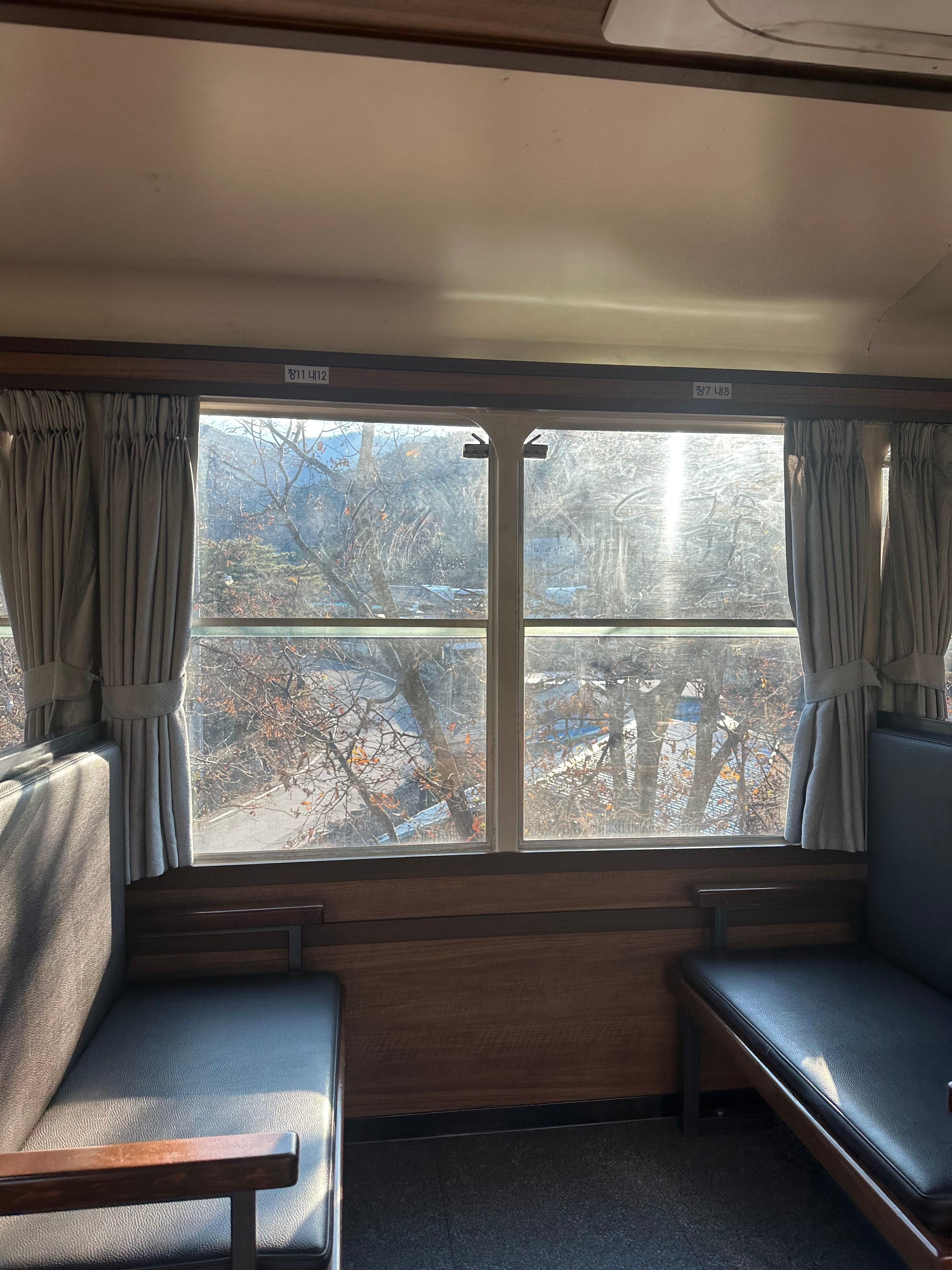 기차 객실마다 이름이 있었습니다. 1호차는 섬진강호, 2호차는 기차마을호, 3호차는 섬진강호라고 불립니다. 객실마다 좌석 배열도 다른데요. 1호차와 3호차는 기본적으로 4개 좌석으로 마주보는 타입이였습니다. 4명 가족이나 친구들끼리 타면 좋은 좌석이었습니다. 2호차는 지하철처럼 마주보는 좌석인데요. 1호차와 3호차는 가족단위나 친구들끼리 타면 좋을 것 같습니다. 2호차는 혼자오거나 1-2명의 연인끼리 타면 좋을 것같습니다. 하지만 평일이라 1호차만 전부 발매하고 있었고 그렇게 많지 않아서 편했습니다. 네이버 다른 블로그 찾아보니가 주말에는 정말 사람이 많았습니다. 섬진강 기차마을 좌석은 인터넷 예매 시 선택 할 수 있지만 현장에서도 직원분에게 말하신다면 섬진강과 산중에 선택하시면 됩니다. 아무말 없으시면 그냥 발권하게 됩니다. 하지만 평일에는 사람이 그렇게 많지 않아서 탑승객 봐서 자유롭게 이동하시면서 보시면 좋을 것 같습니다.