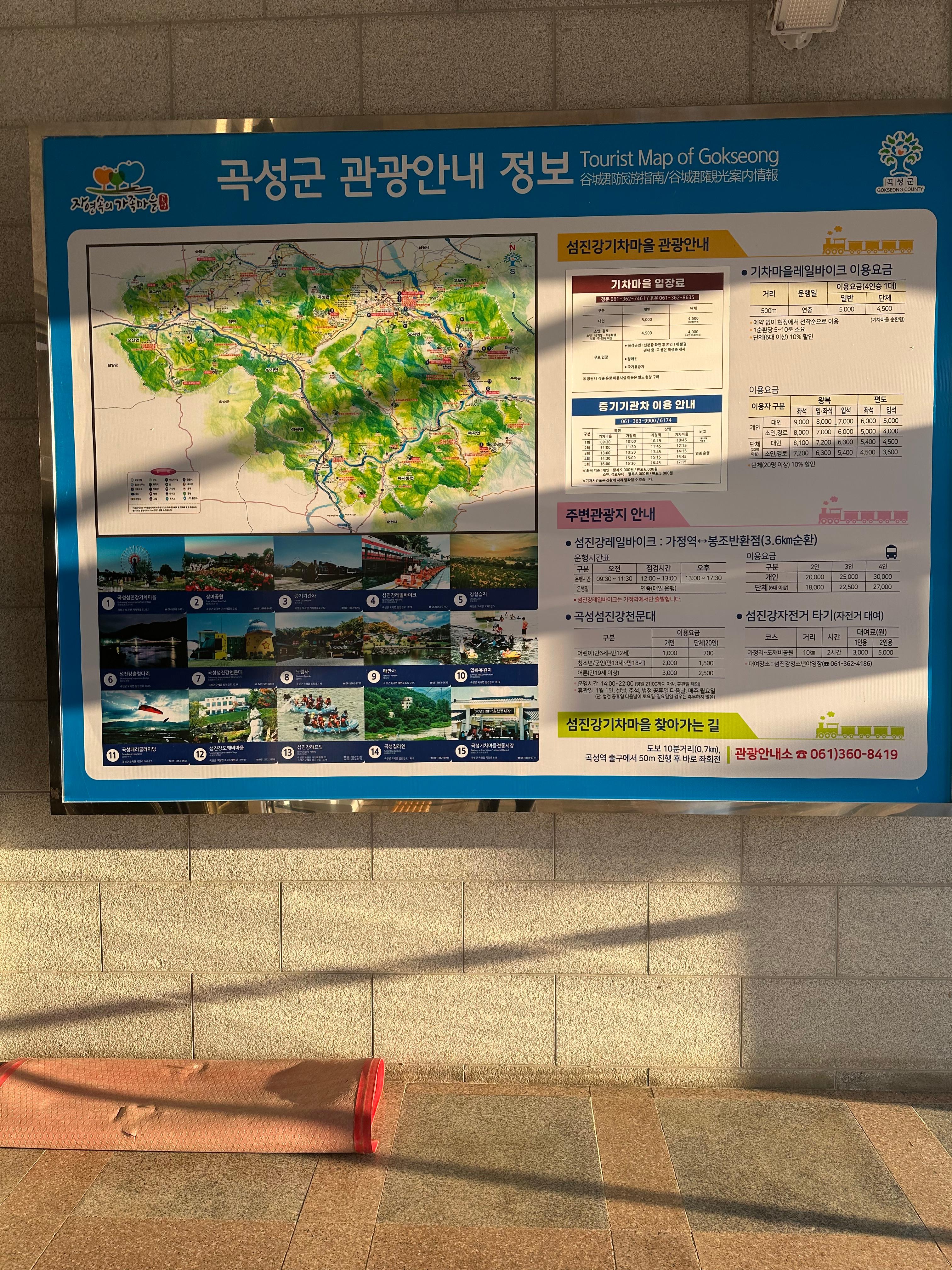 곡성역은 섬진강기차마을과 증기기관차를 제외하면 사실 승객이 많이 없을 것 같습니다. 곡성에 사는 시민들만 이용할 것 같은데요. 그래도 섬진강 기차마을이 있어서 저처럼 대중교통으로 곡성을 오는 것 같습니다. 곡성역은 대부분 내일로 기차여행이나 혼자 여행, 지인과 함께 오는 대부분이 기차마을이기 때문에 대합실에는 기차마을에대한 시간과 요금, 증기기관차 이용관련 안내문을 붙어놓았습니다. 그 외에 곡성에서 볼거리들도 정리했는데요. 그래도 아직까지 곡성에서 못본 것들도 많았습니다.
