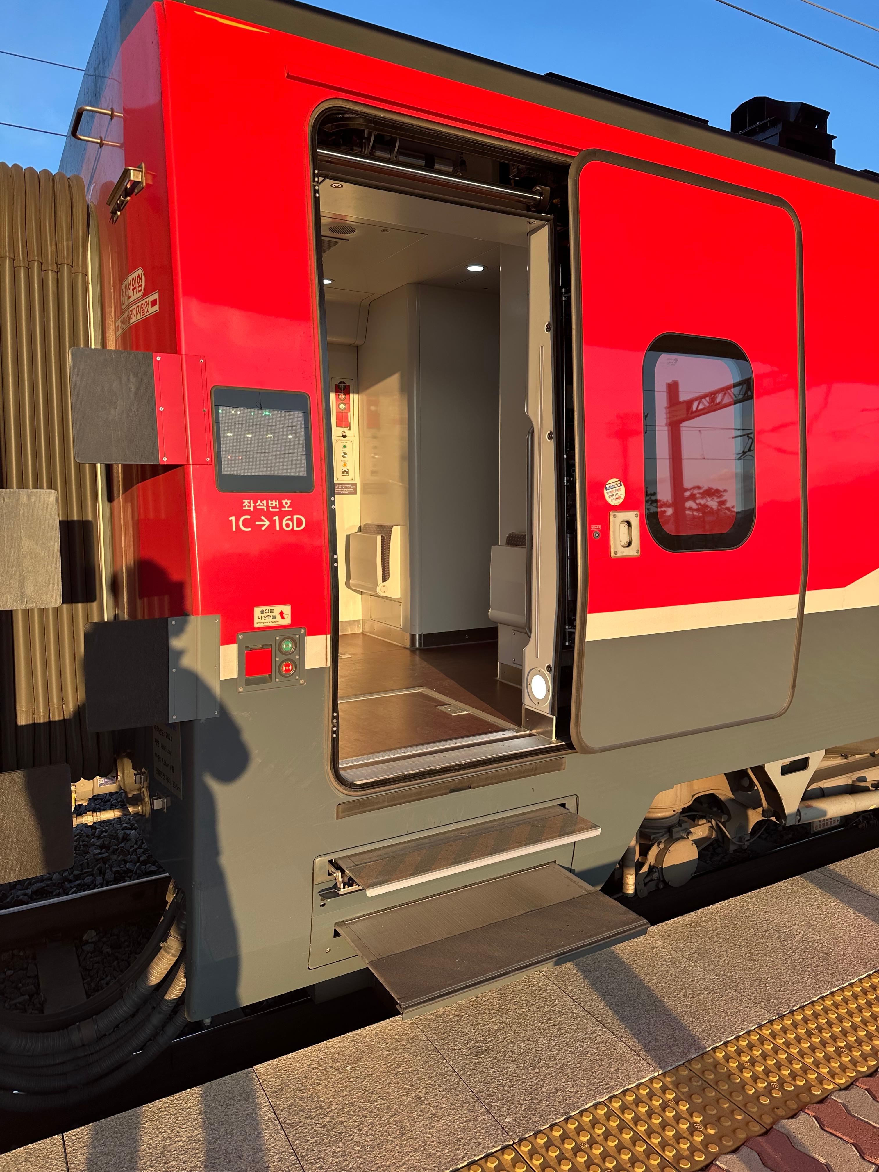 아름답고 조용한 곡성의 시골 풍경에 젖어들며 힐링하는 사이에 ITX 마음 열차가 곡성역 승강장에 도착했습니다. 그리고 저상홈과 고상홈에서도 유연하게 대응이 되는 ITX 마음이였는데요. 탑승할 수 있도록 계단이 툭 튀어나왔습니다. 저는 발판을 한걸음씩 밟으며 곡성에서의 추억을 간직한채 기차에 몸을 실었습니다.