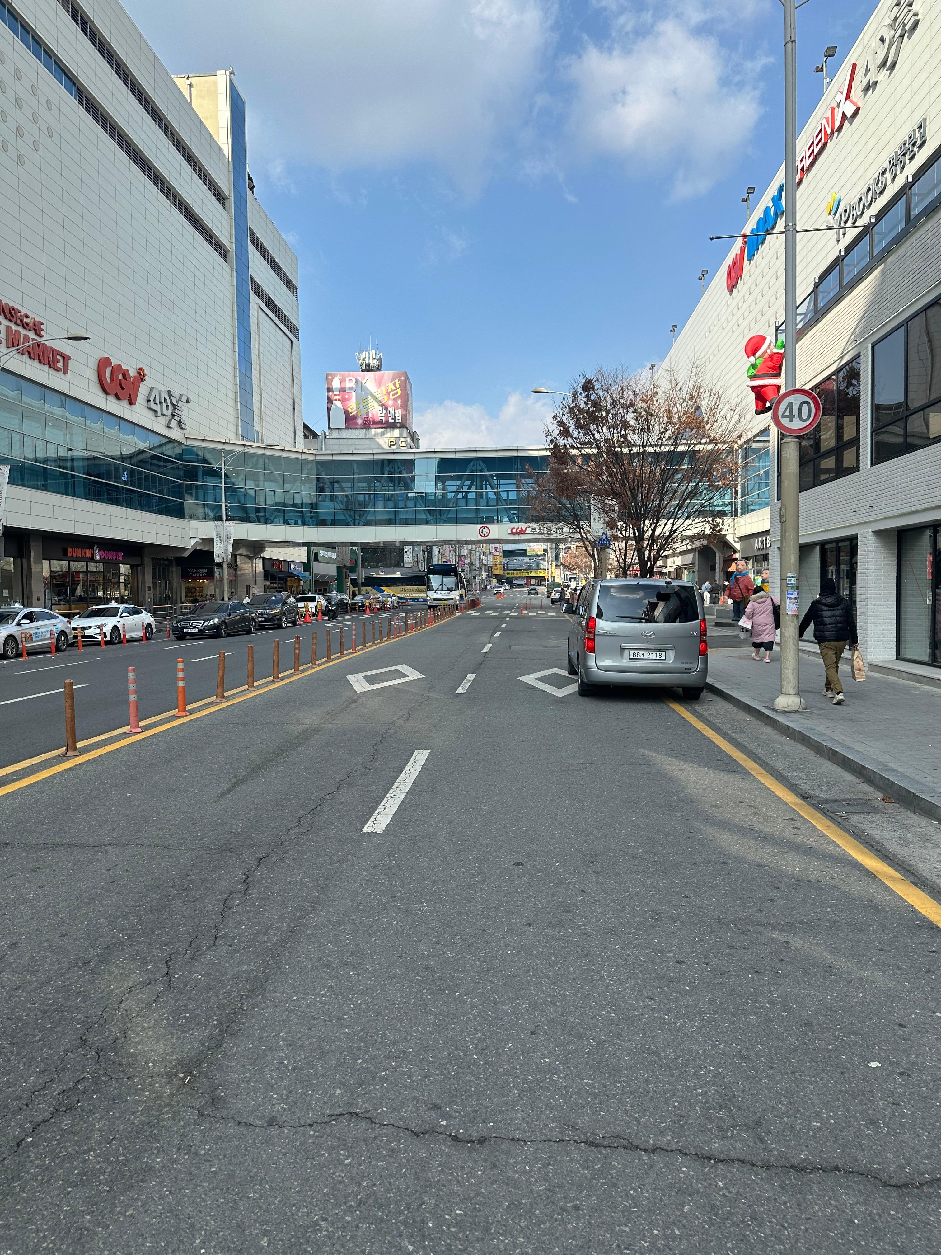 위에서 말씀드린것처럼 두개 건물이 분리가 되어있습니다. 그리고 하차 건물에서 건물밖으로 나와서 신호를 건너서 반대편 승차하는 건물로 이동할 수 도 있지만 에스컬레이터를 2층에서 쇼핑을 하고 구름 다리 통해서 1층으로 내려갈 수 있습니다.