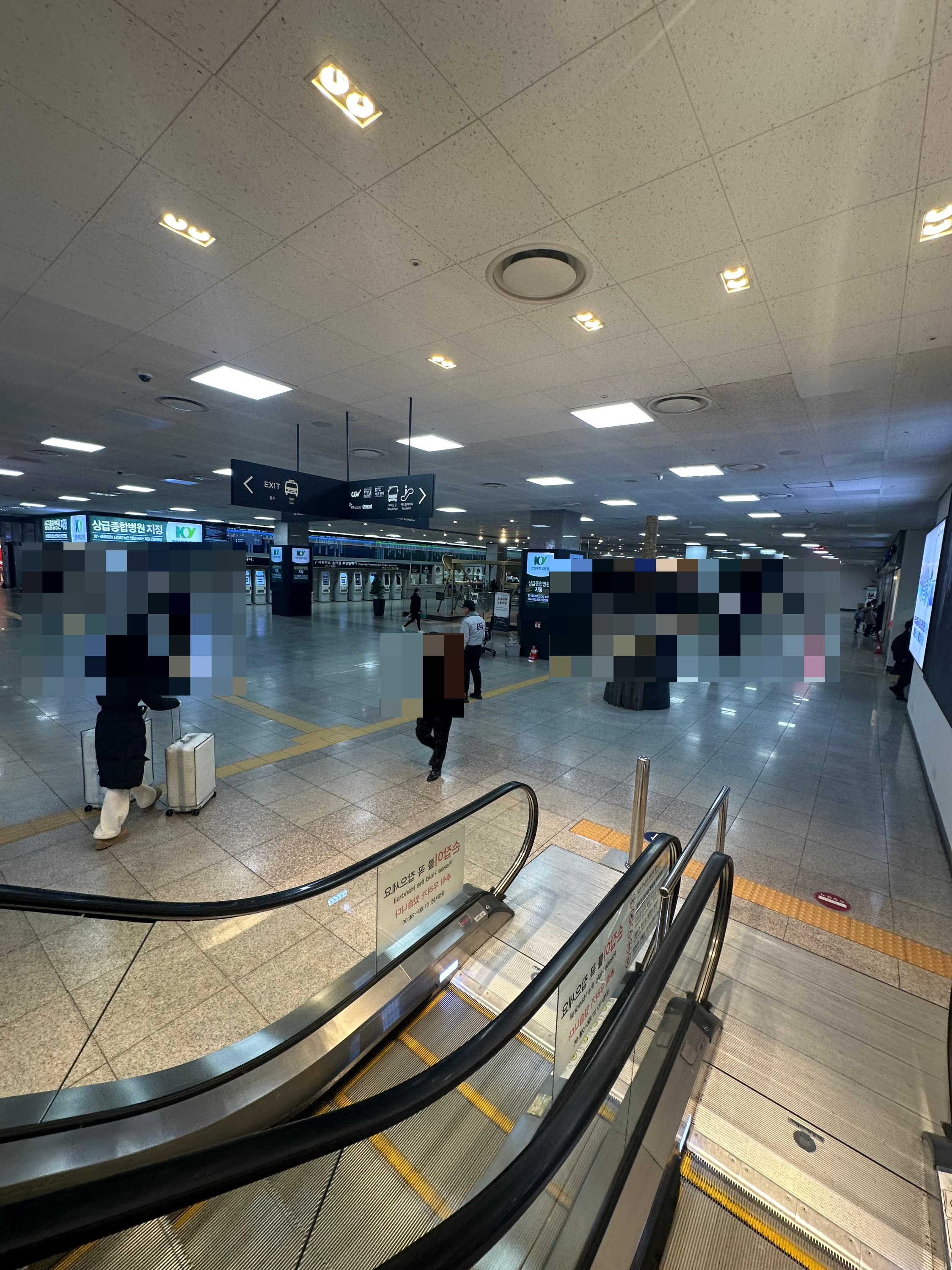 대전 복합 터미널은 두개의 건물로 분리가 되어있는데요. 분리된 건물 사이로 버스와 일반 차량들이 다니고 있습니다. 각각의 건물은 시외고속버스를 타는 승차 건물과 대전복합터미널에 도착해서 하차 건물로 분리가 됩니다. 저는 하차 건물에 내려서 승하차 건물을 이어주는 흔히 구름다리를 건너서 에스컬레이터를 타고 1층 대합실로 내려오게 되었습니다.