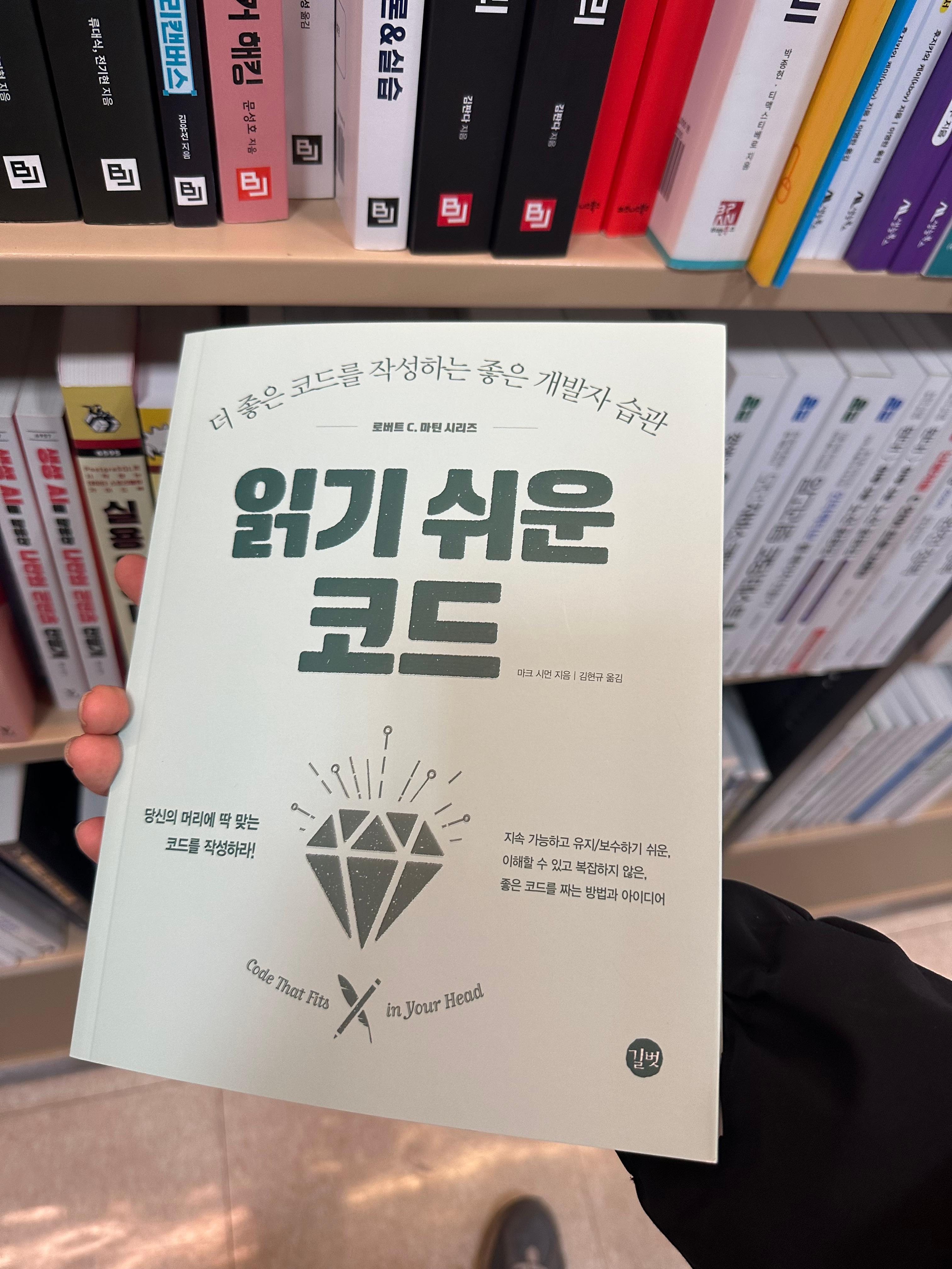 책은 마음의 양식이라고 한다고 해요. 책을 읽는다고 부자가 되지는 않지만 그만큼 많은 지식을 알게되요. 지식이 쌓인다는것은 그만큼 현명해진다는 것인데요. 그게 당장 돈으로 이어지지 않지만 책을 읽고 성장을 통해서 그게 부자가 될 수 있다고 해요. 물질적으로 부자가 될수도 있지만 물질적으로는 부자가 아니더라도 내면이 부자가 된다고 해요. 저는 개발자라서 당시 읽기 쉬운 코드가 대전 복합터미널 영풍문고에서 눈에 왔습니다. 특히 서점와서 눈에 띄는 책을 보면 사진찍어놓는데요. 이렇게 사진찍어놓고 거의 6개월정도 넘어서 구매했던것 같습니다.